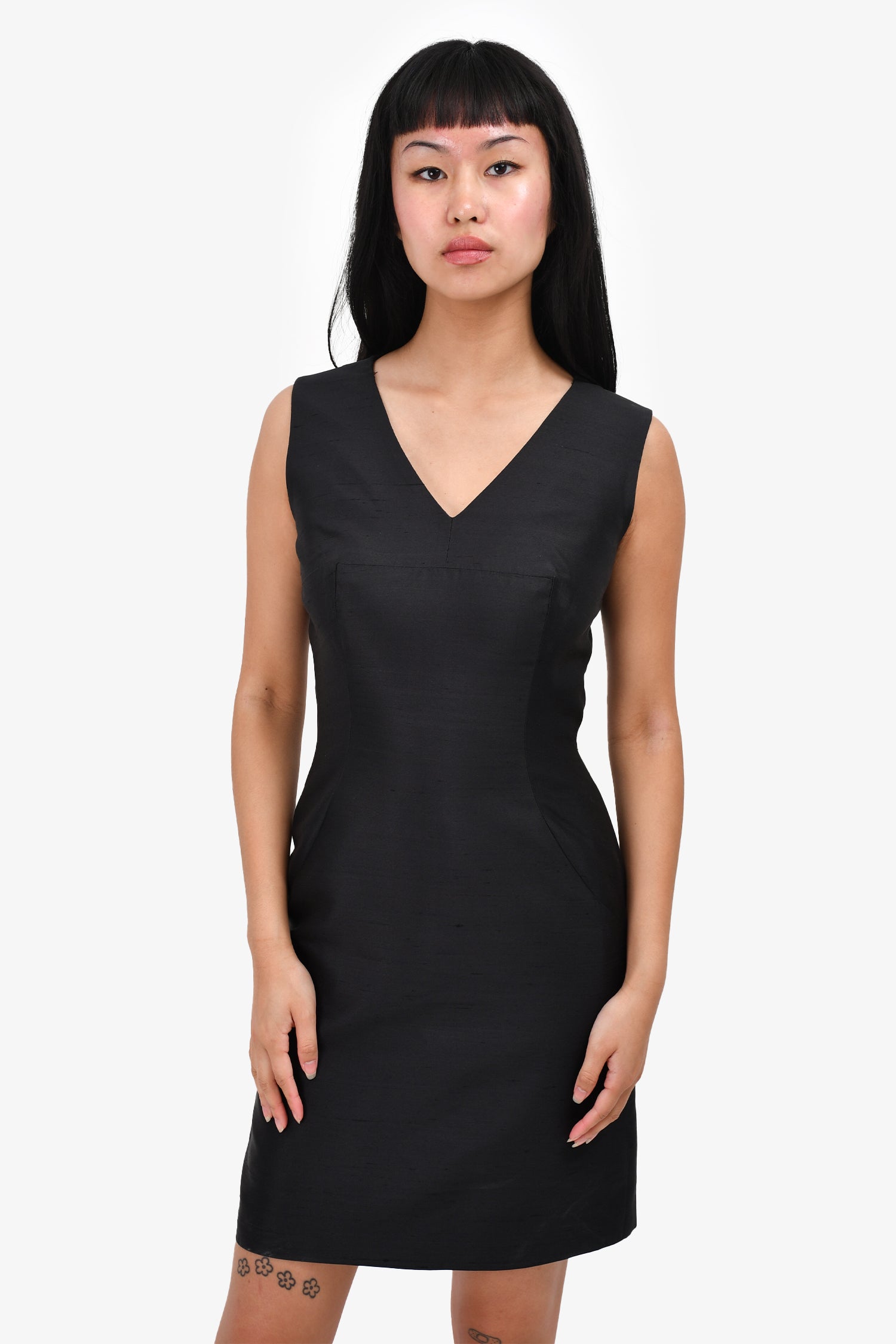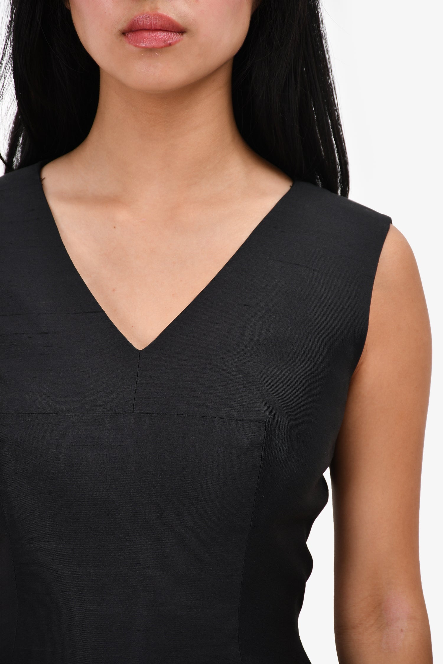 Refresh availabilityDolce & Gabbana Black Silk Sleeveless V-Neck Dress. Rear zip closure. Lined.