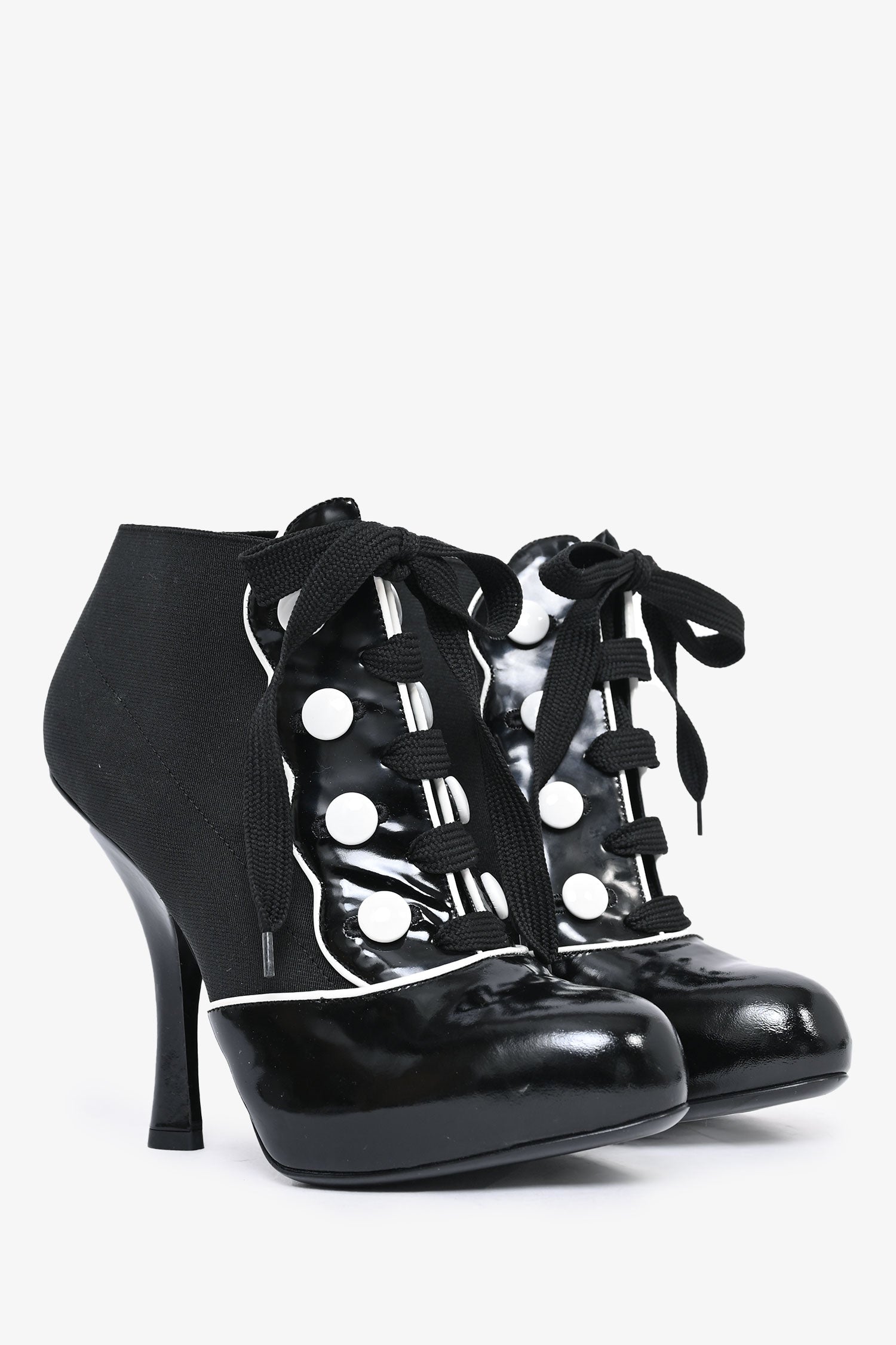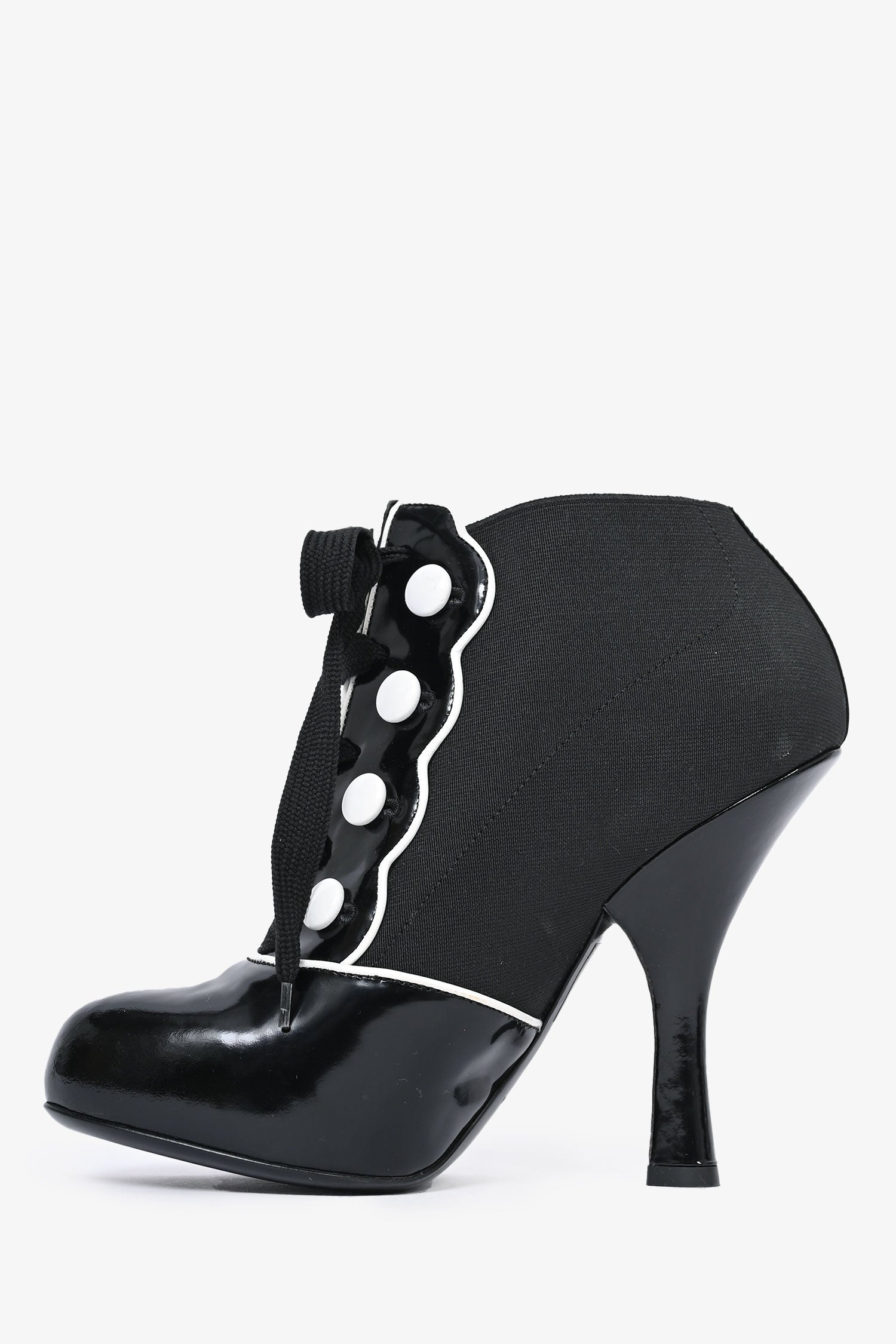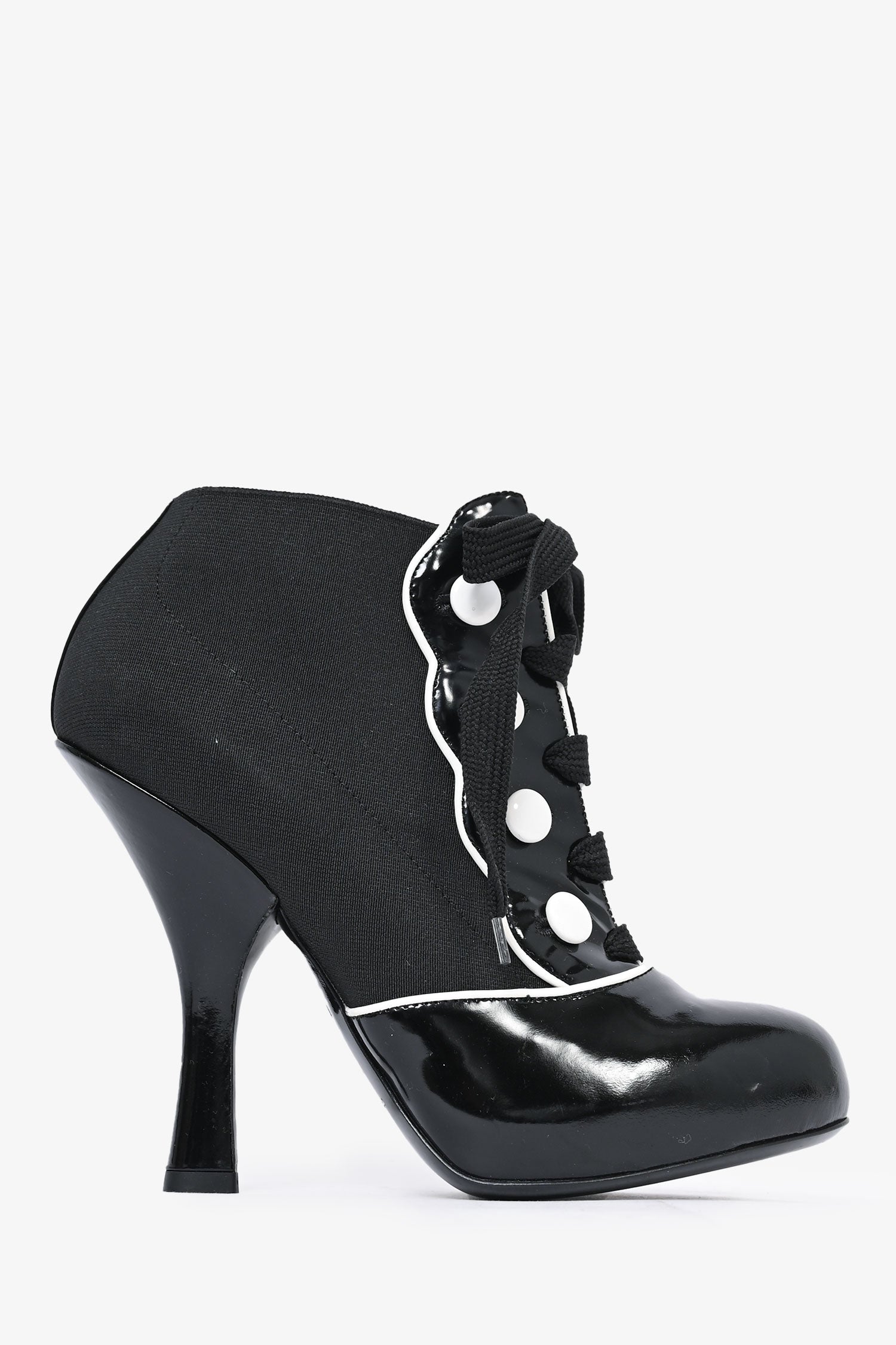 Refresh availabilityDolce & Gabbana Black/White Fabric/Leather Lace-Up Booties. Slip-on. Round toe. Platform sole.