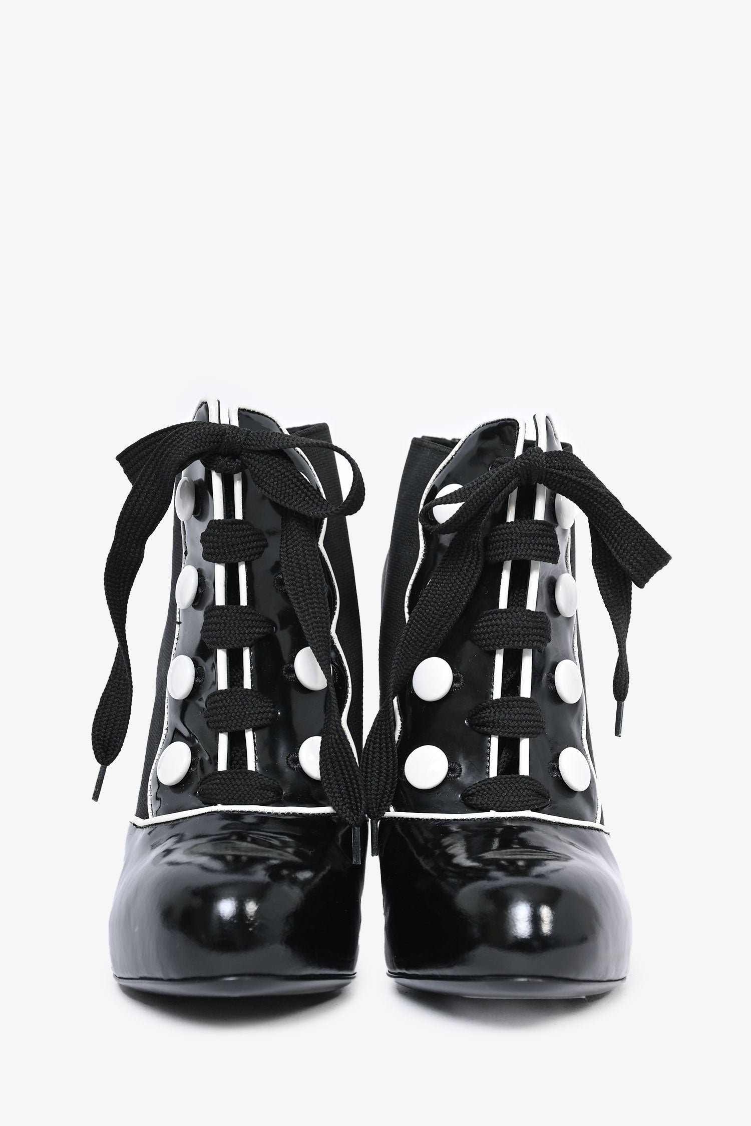 Dolce & Gabbana Black/White Fabric/Leather Lace-Up Booties Size 37