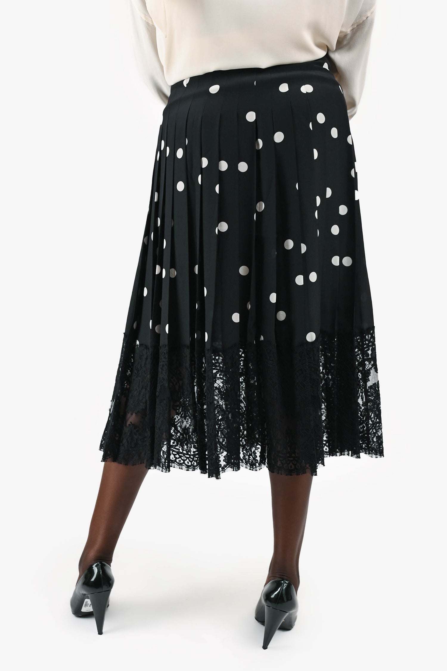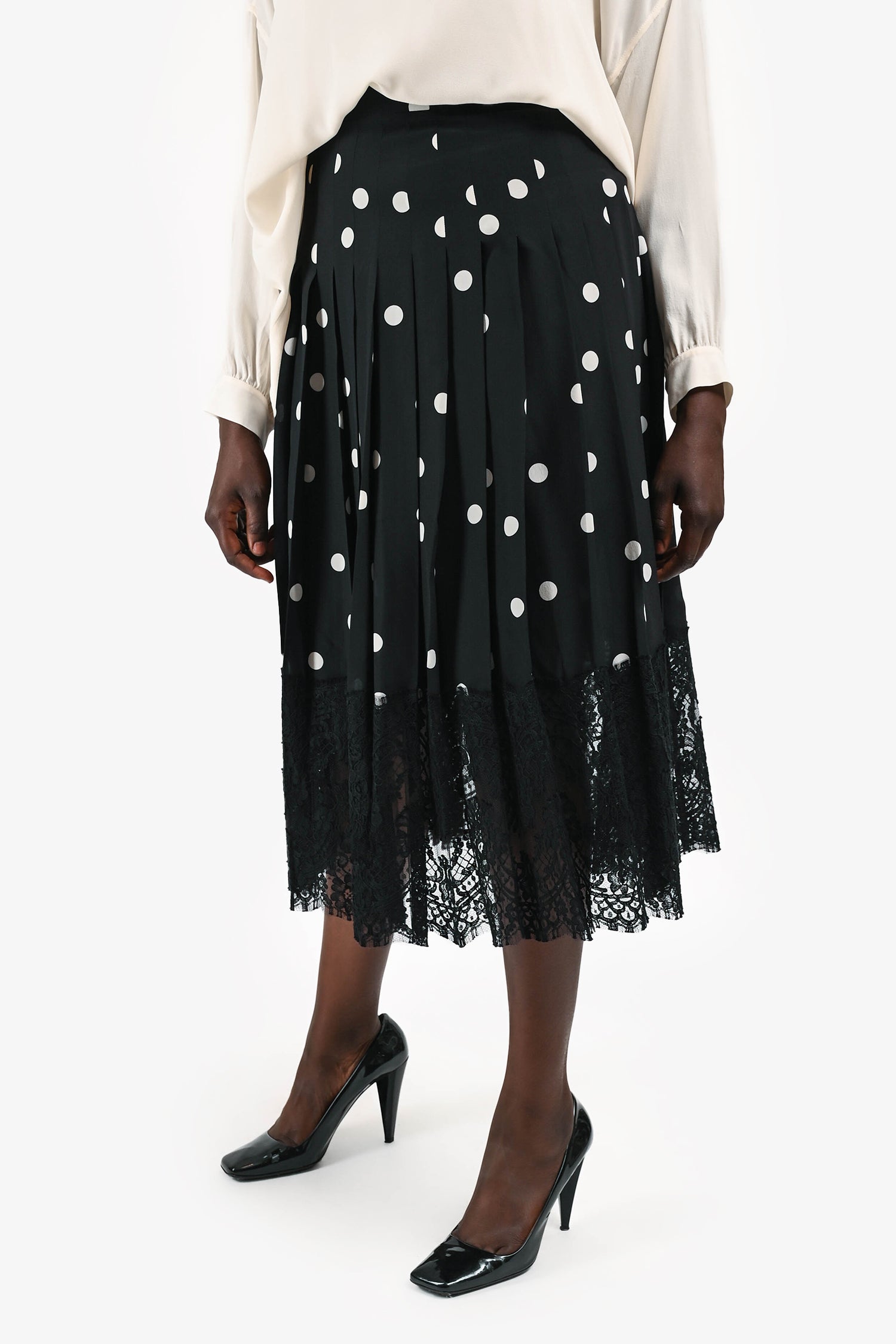 Refresh availabilityDolce & Gabbana Black/White Polkadot Lace Trimmed Midi Skirt. Back zip closure. Tonal stitching.