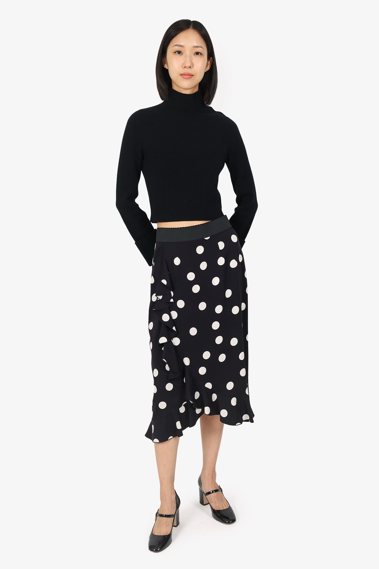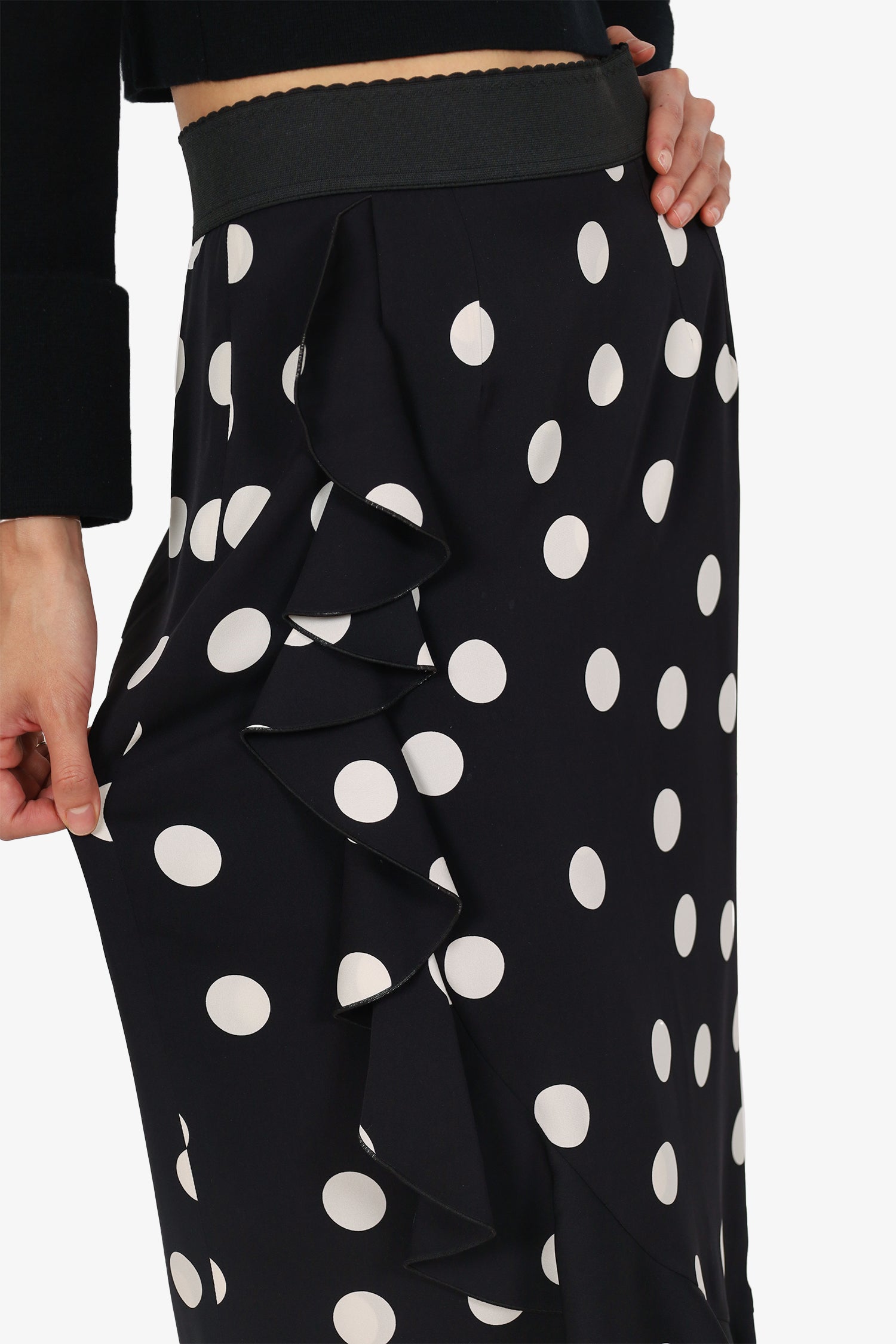 Refresh availabilityDolce & Gabbana Black/White Polka Dot Ruffle Detail Skirt. Slip-on. Rear zip and hook closure. Lined interior. Tonal stitching.