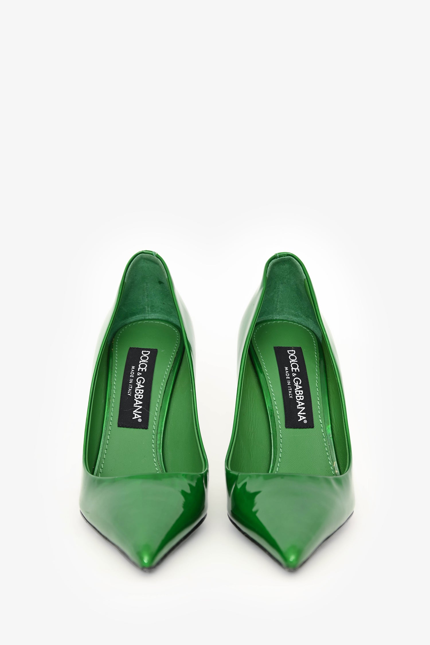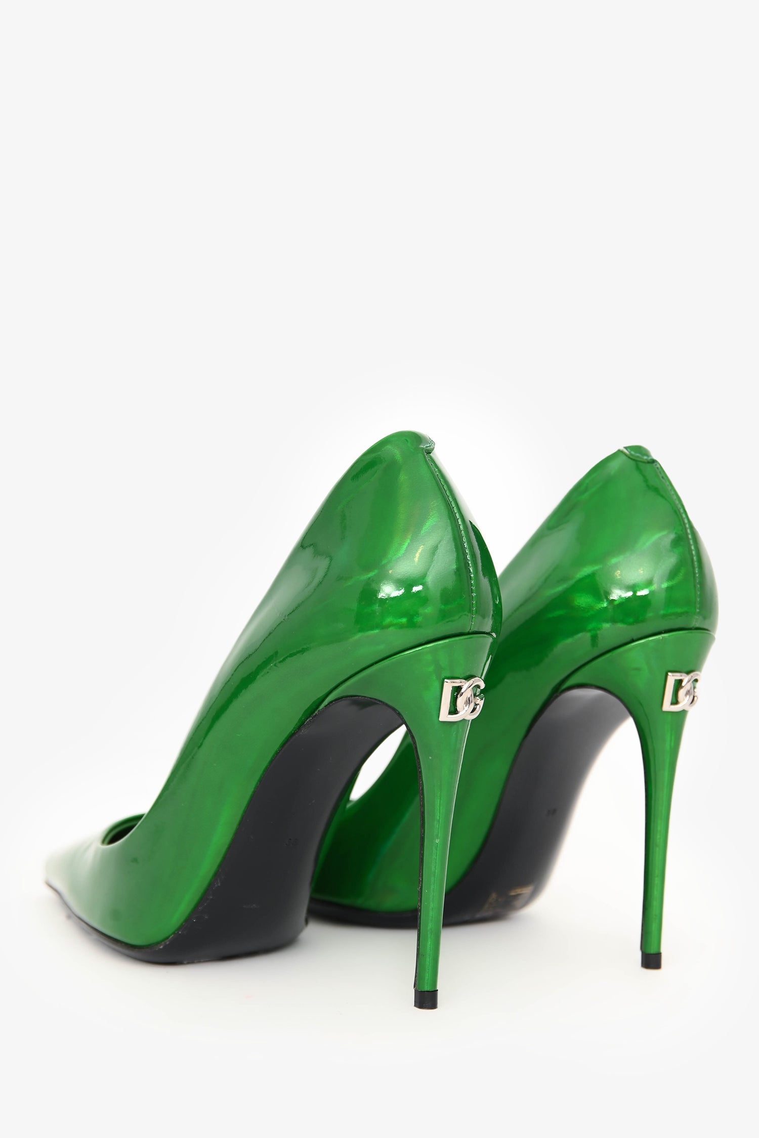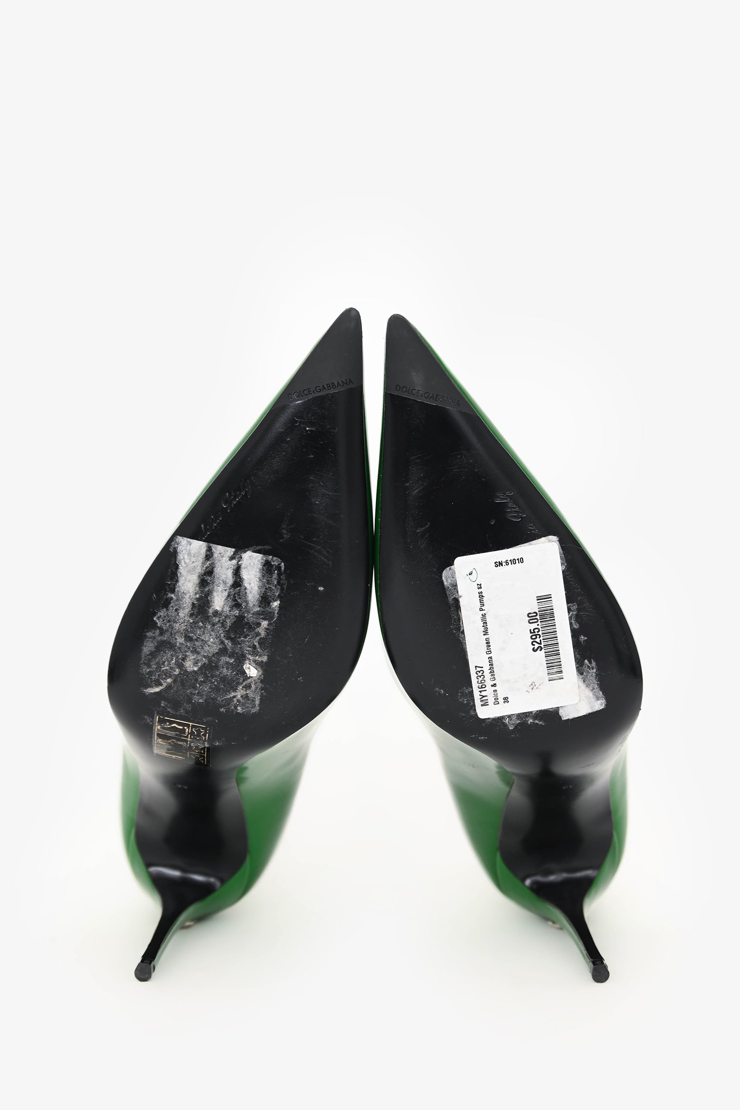 Refresh availabilityDolce & Gabbana Green Metallic Pumps. Slip-on. Pointed toe. Silver-tone hardware. Tonal stitching.