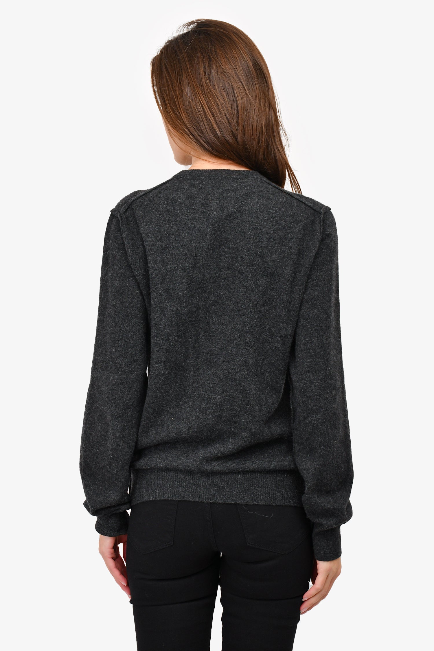 Refresh availabilityDolce & Gabbana Grey Cashmere Sweater. Ribbed collar, waistband, and sleeve hemming. Tonal stitching.