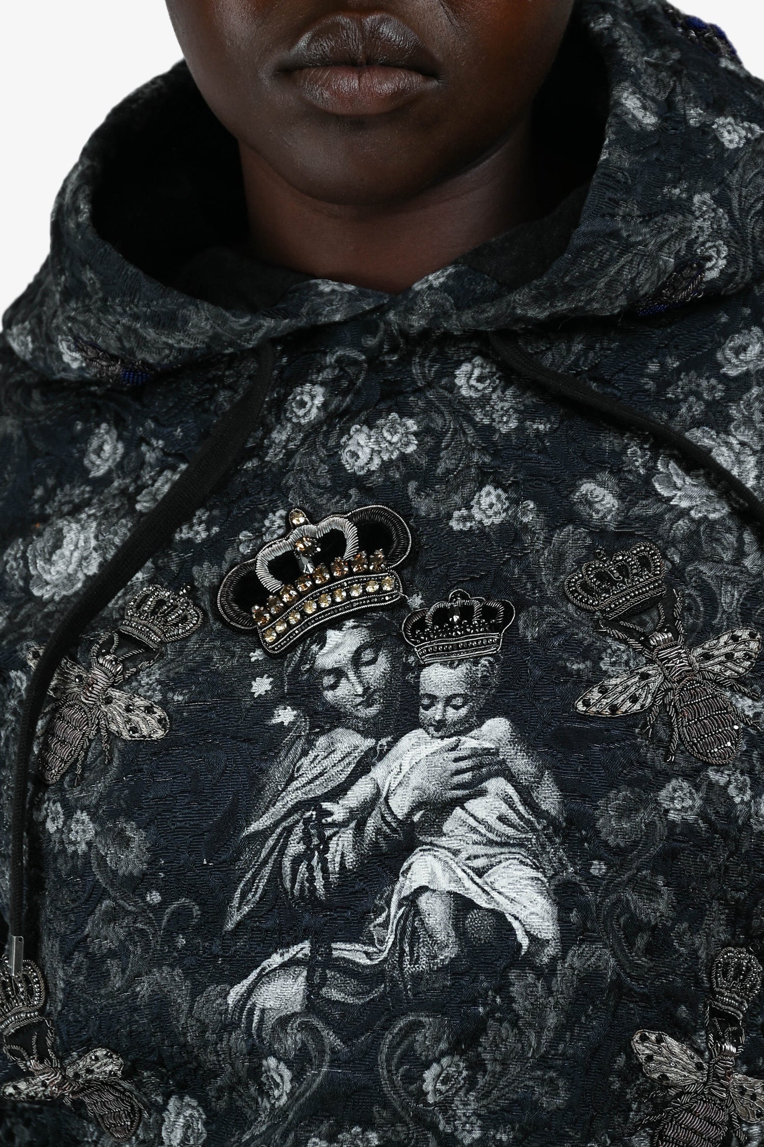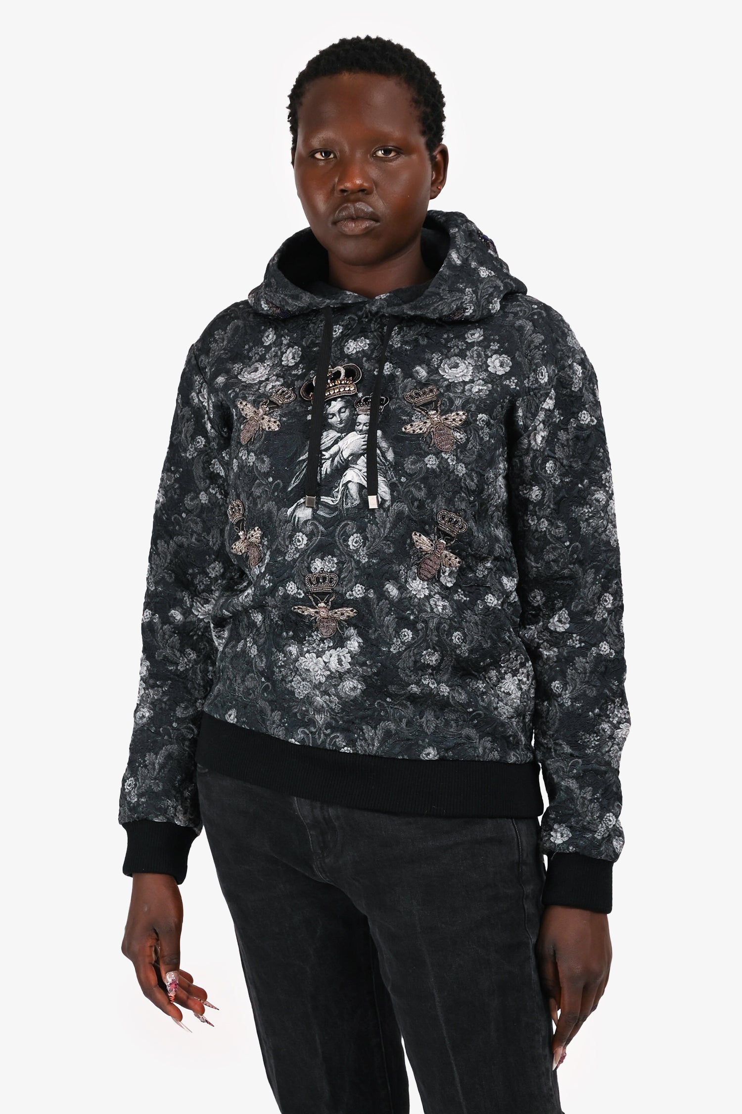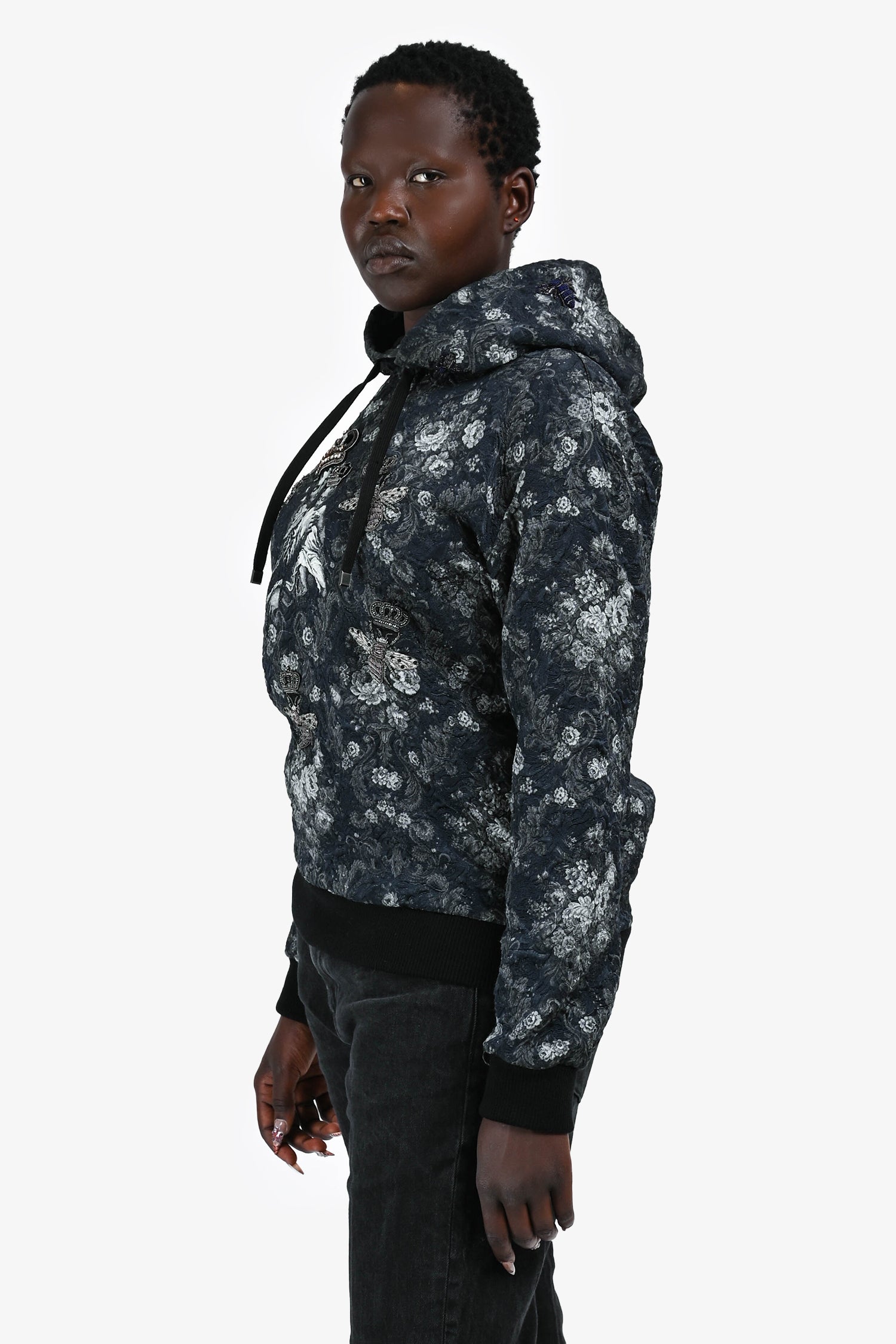 Dolce & Gabbana Grey Floral Royal Embroidered Hoodie Size 46