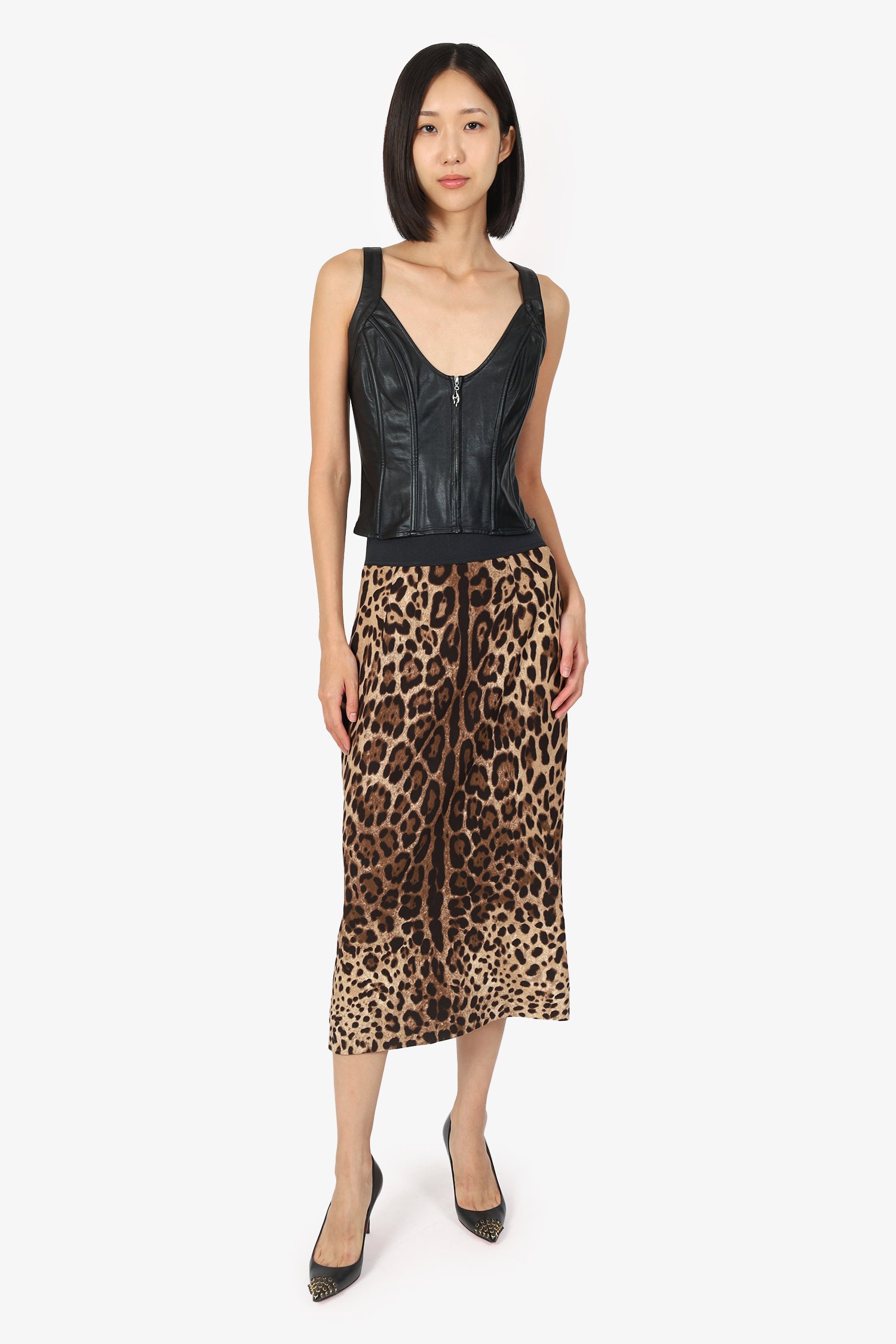 Dolce & Gabbana Leopard Print Midi Skirt Size 42