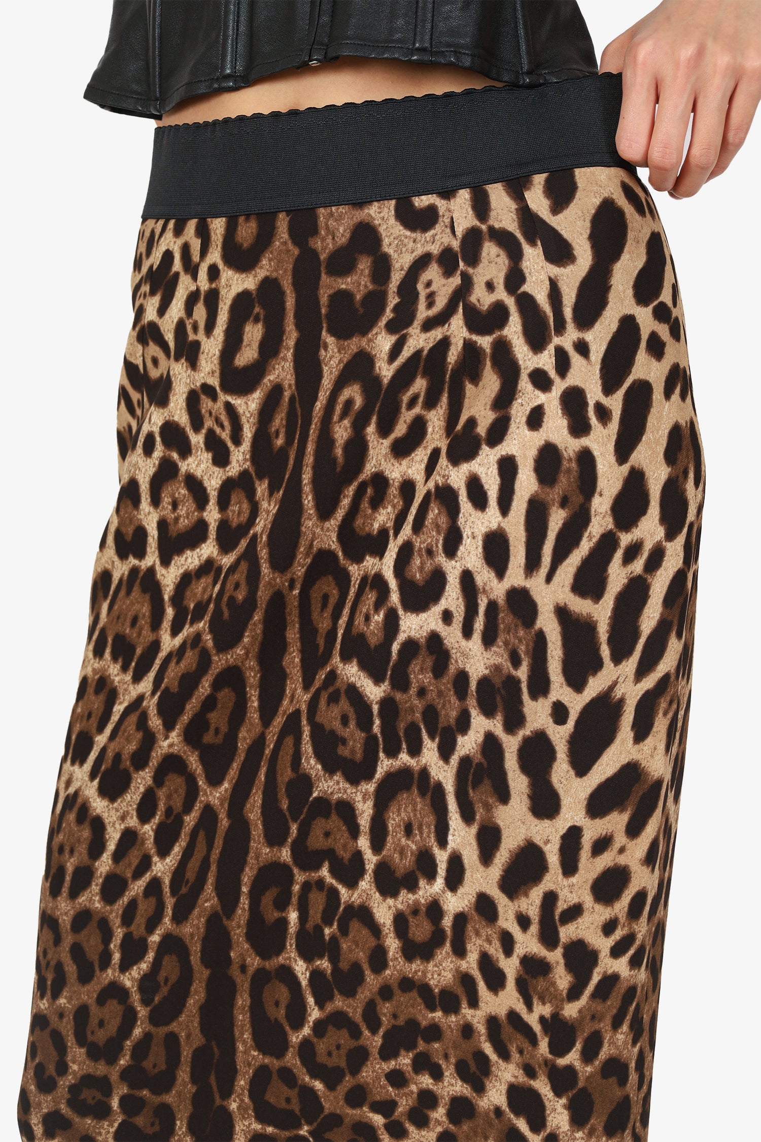 Refresh availabilityDolce & Gabbana Leopard Print Midi Skirt. Slip-on. Elasticated waistband. Rear zip with hook closure. Lined interior. Bottom rear vent. Tonal stitching.