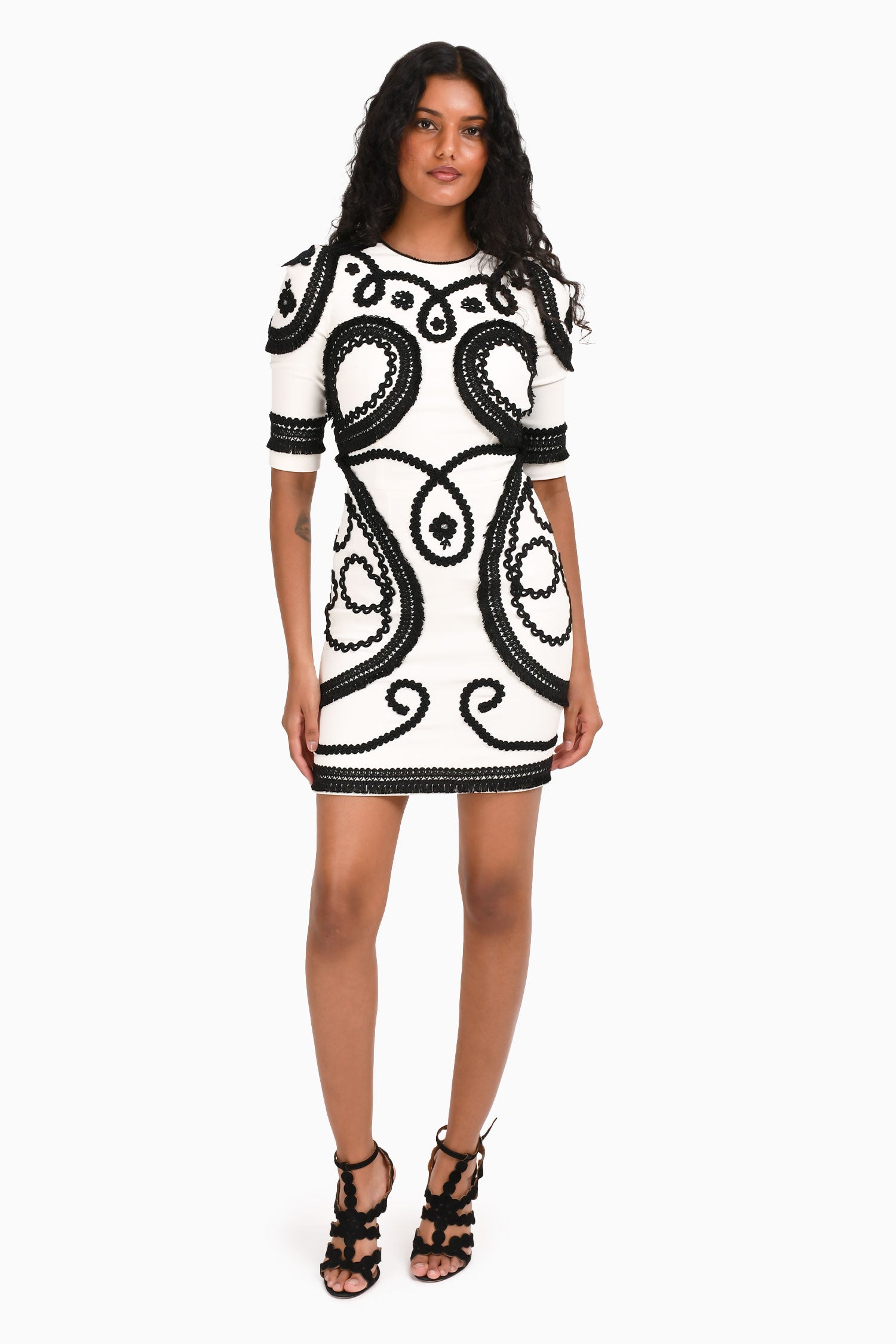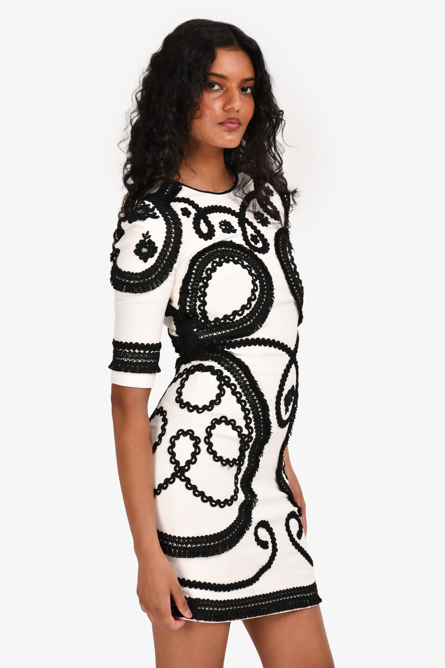 Dolce & Gabbana Runway Short Sleeve 2015 White/Black Embroidered 3/4 Sleeve Dress Size 36