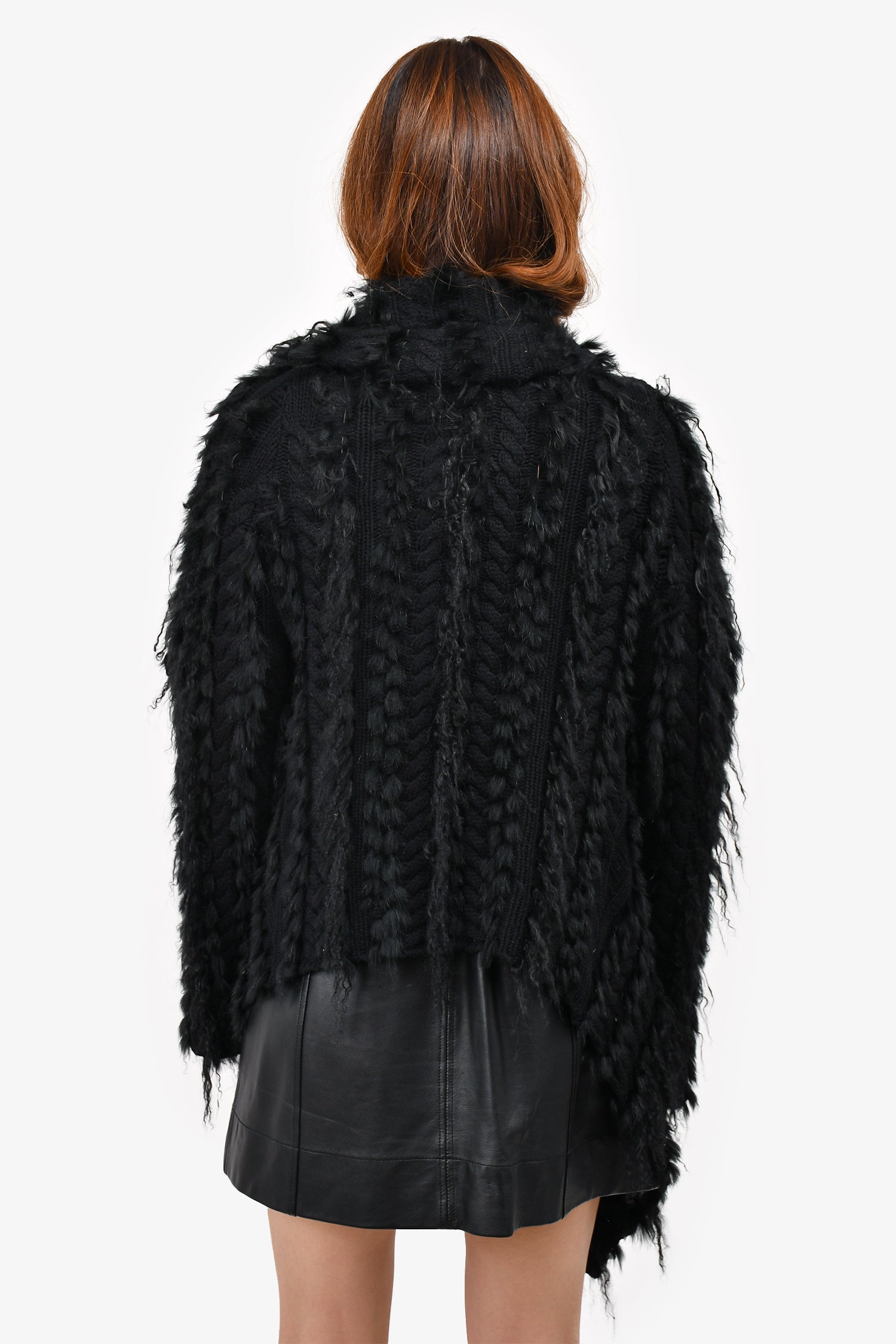 Donna Karen Black Cashmere/Rabbit Fur Open Cardigan Size L