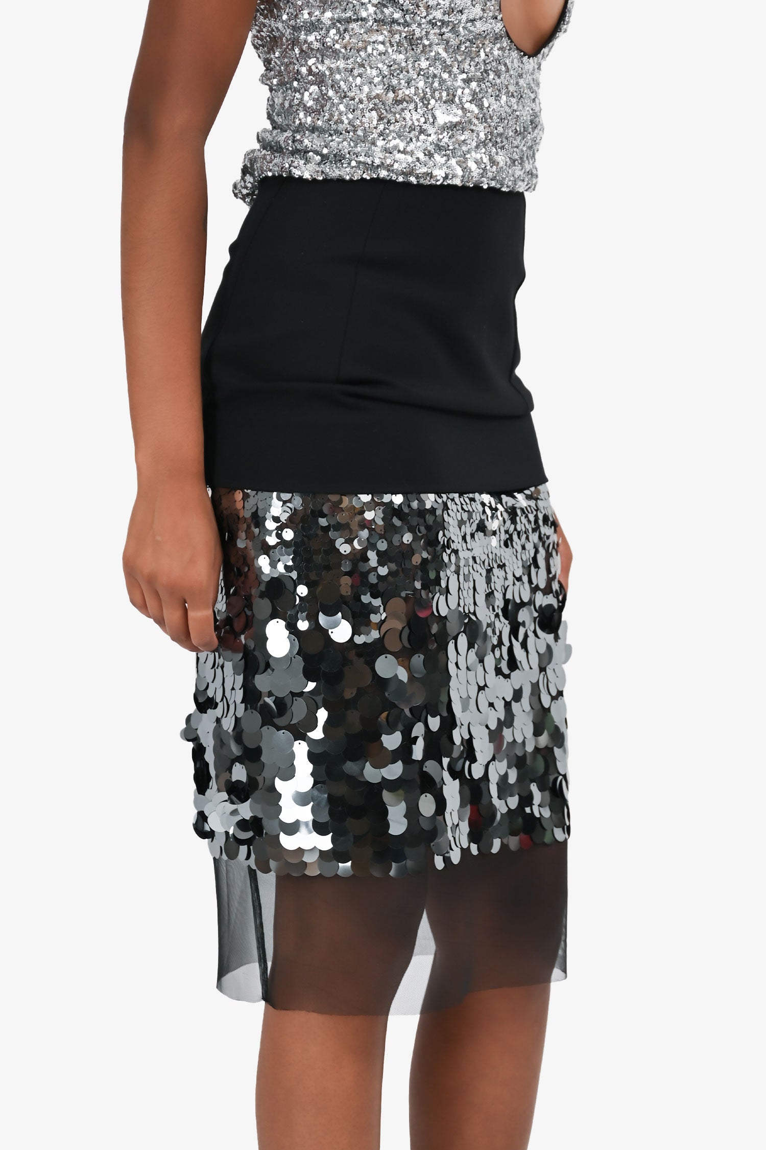 Refresh availabilityDorothee Schumacher Black Layered/ Green Sequin/Tulle Midi Skirt. High-rise. Back zip closure. Tonal stitching.