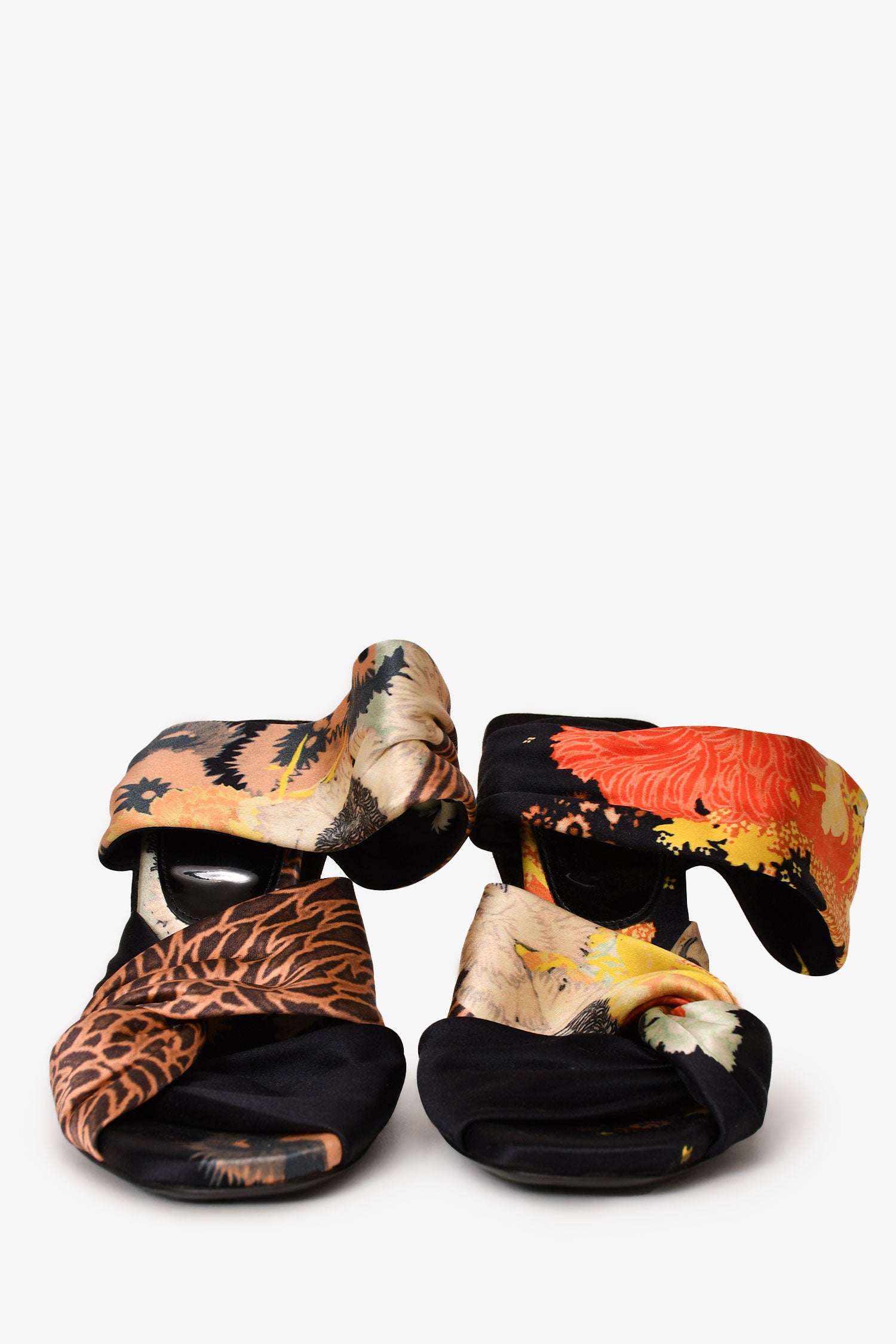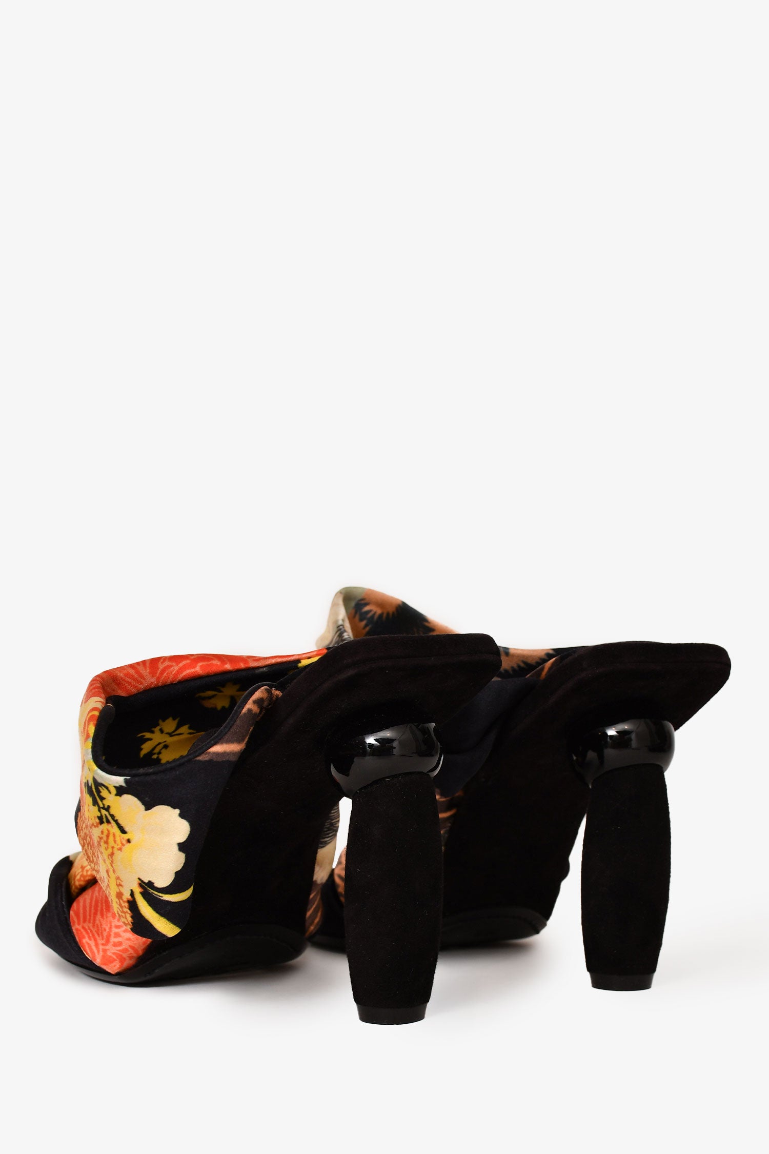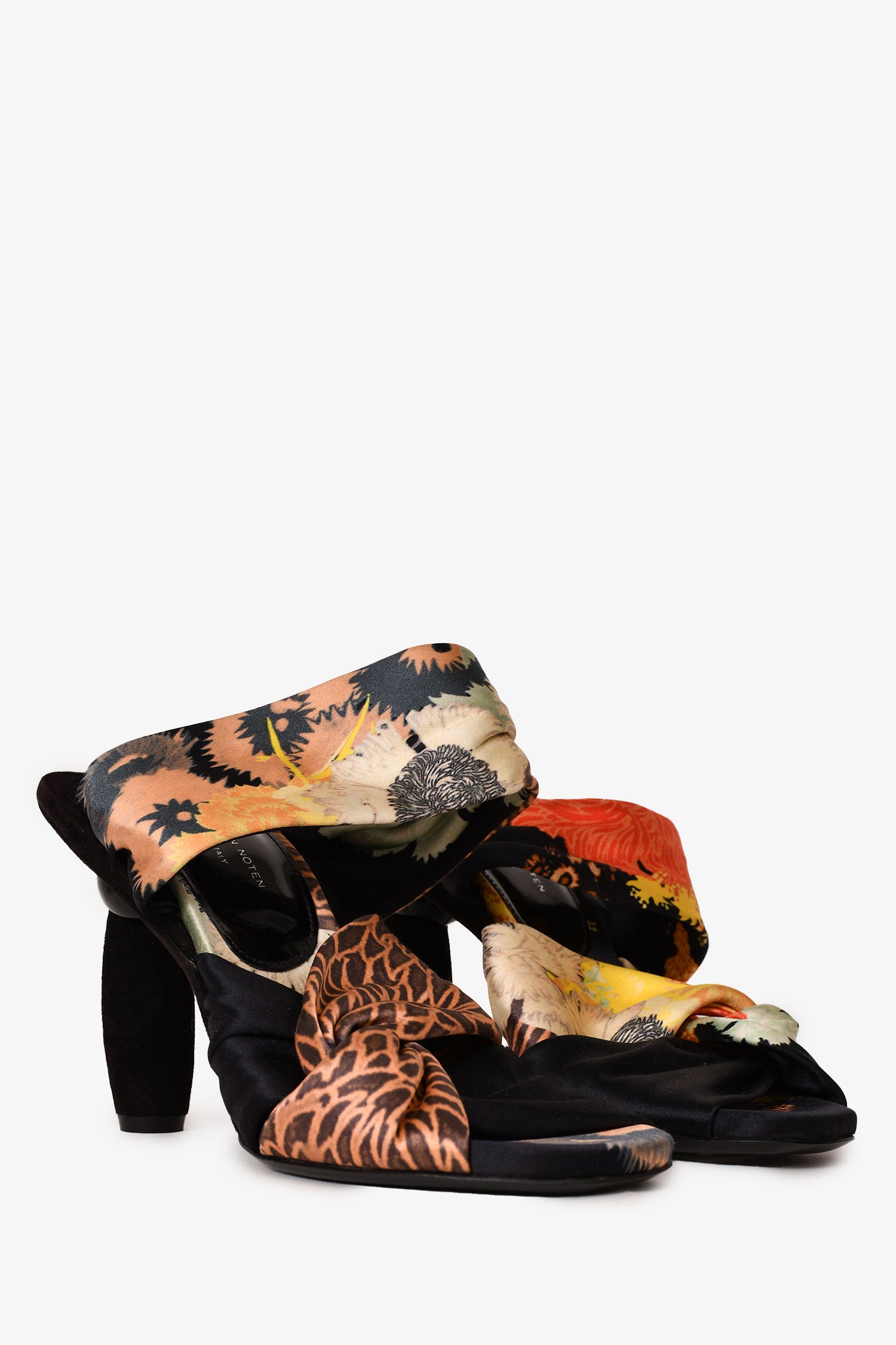 Refresh availabilityDries Van Noten Black Multicolour Printed Silk Cloth Heels. Slip-on. Silk straps. Suede heel. Tonal stitching.