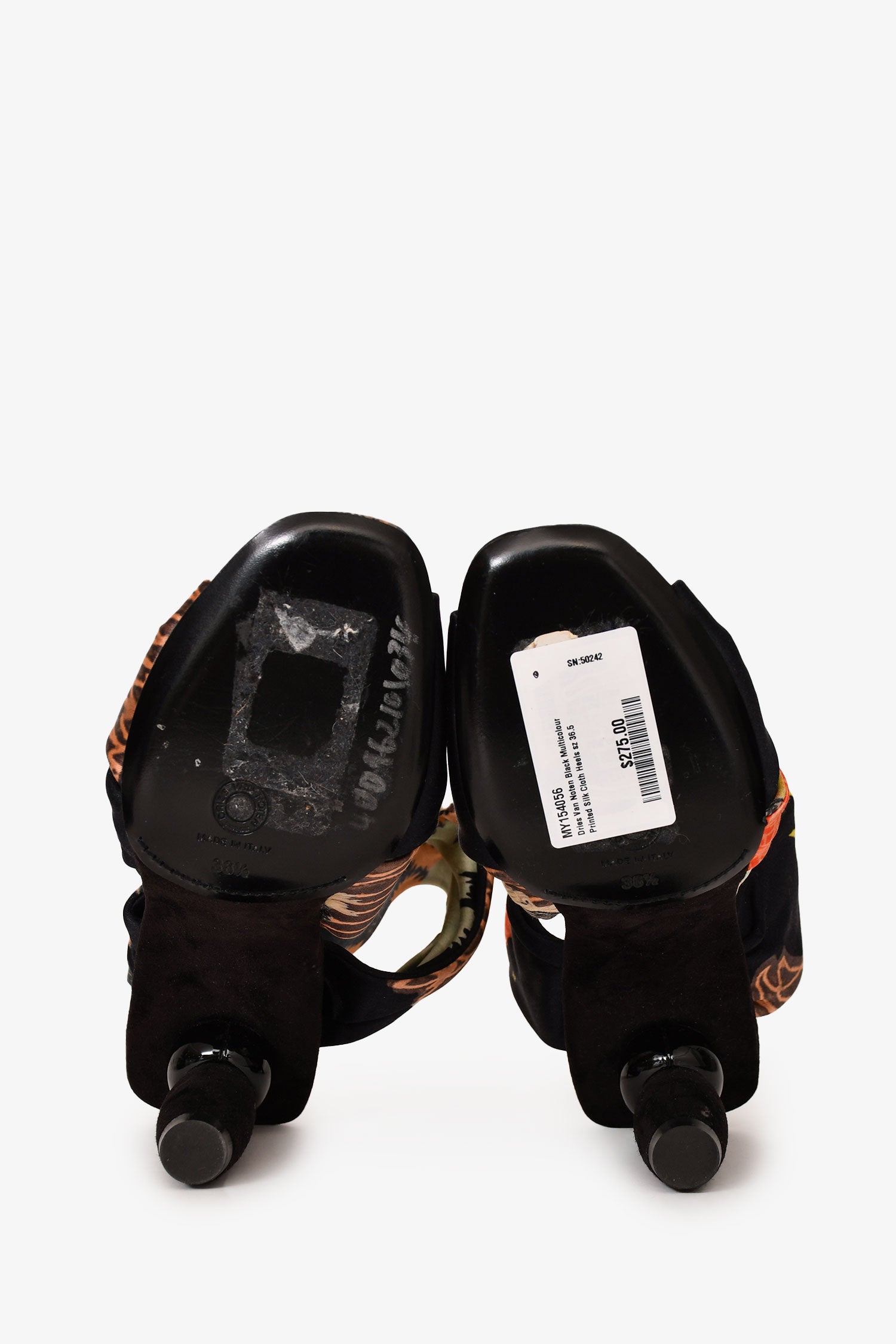 Dries Van Noten Black Multicolour Printed Silk Cloth Heels Size 36.5