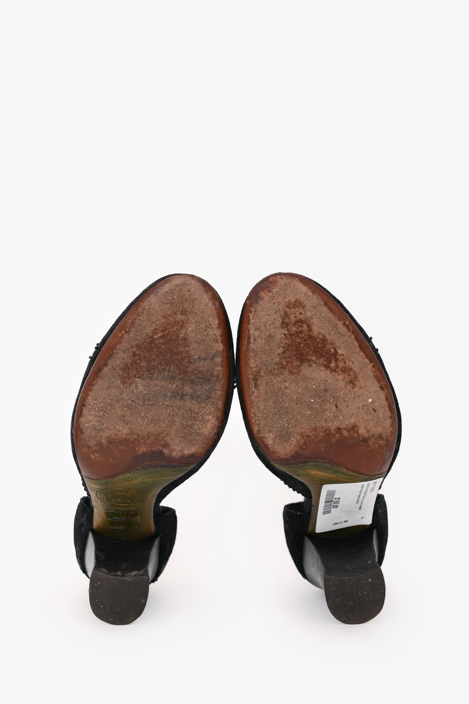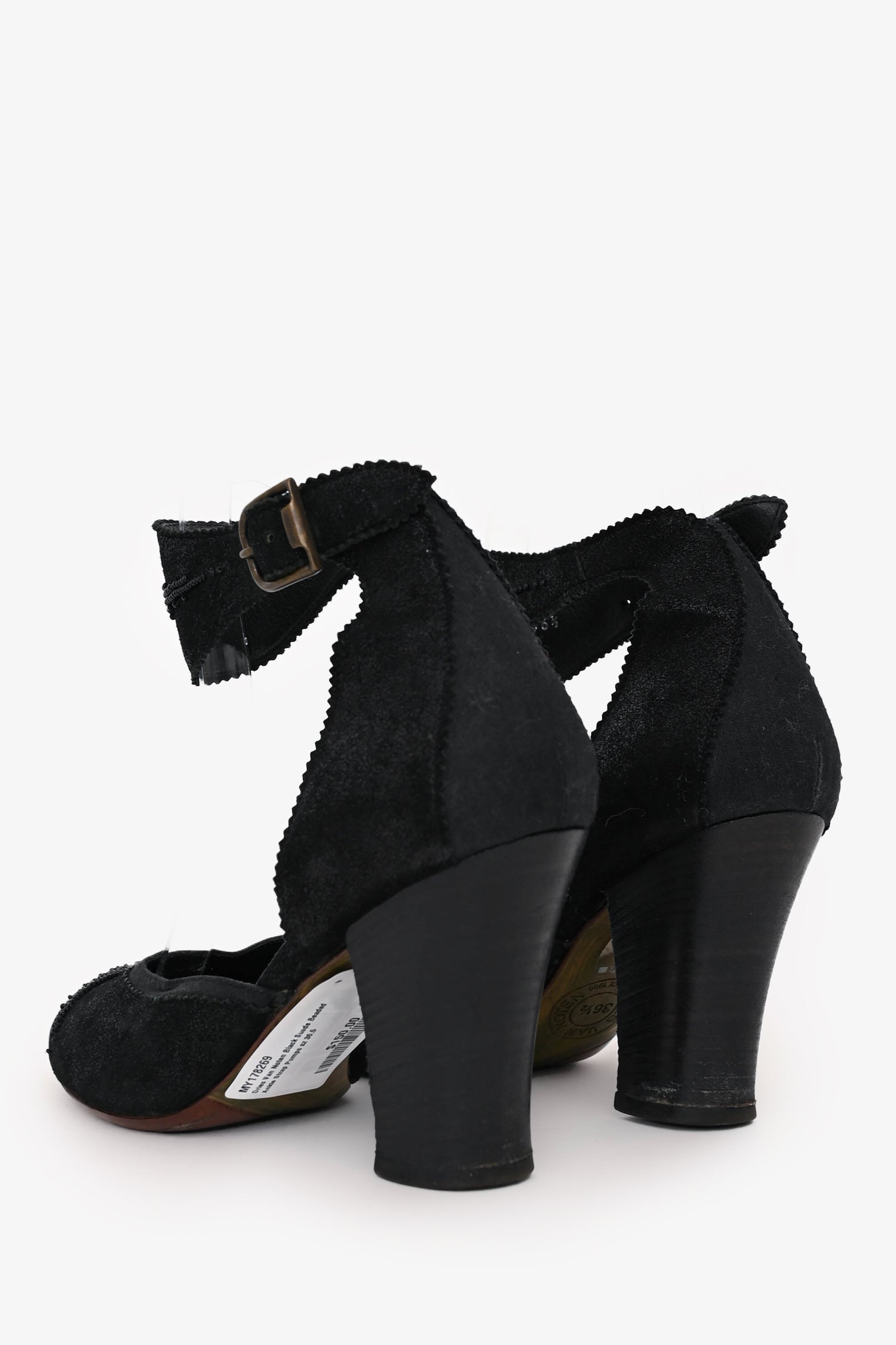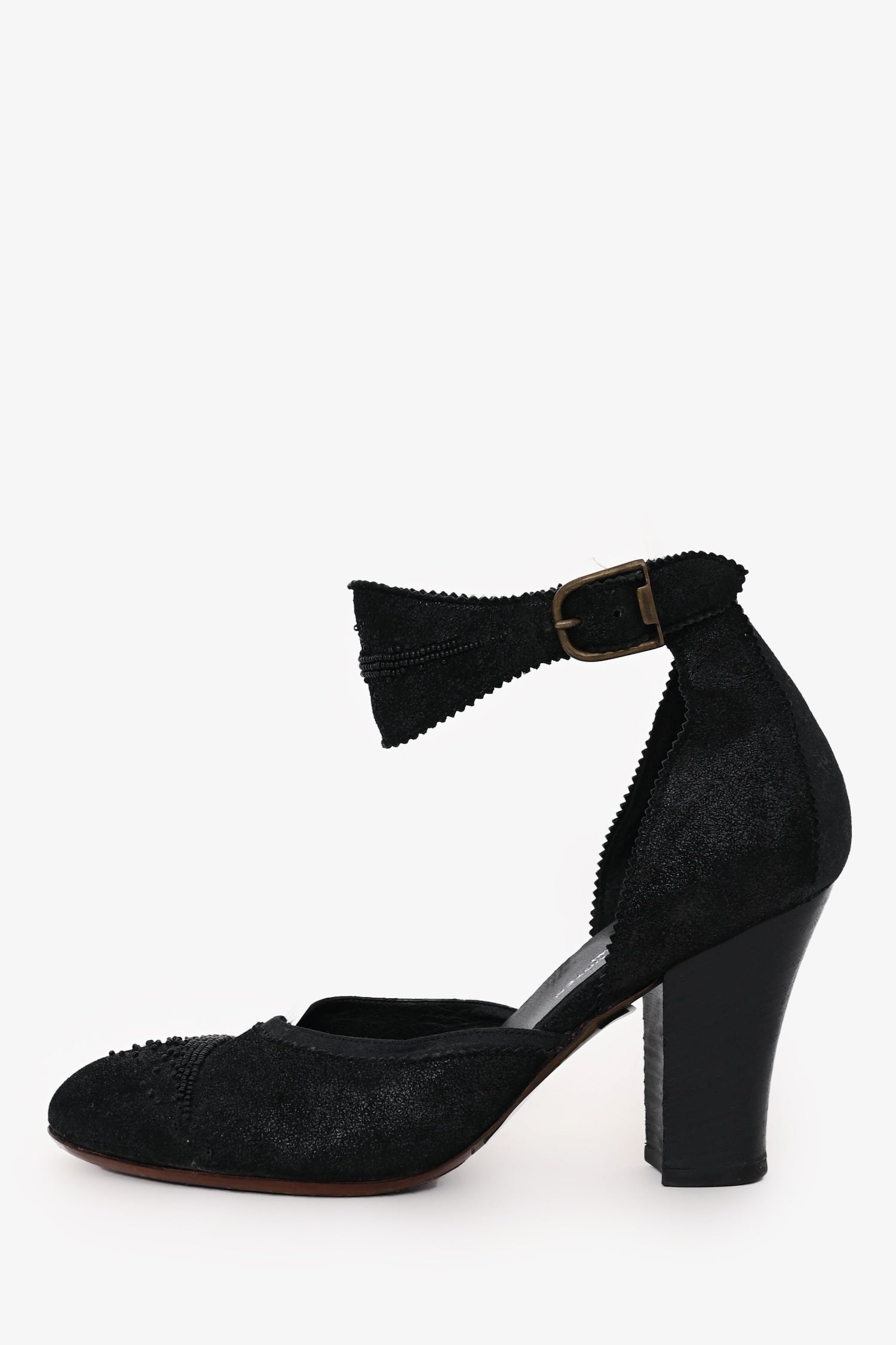 Dries Van Noten Black Suede Beaded Ankle Strap Pumps Size 36.5
