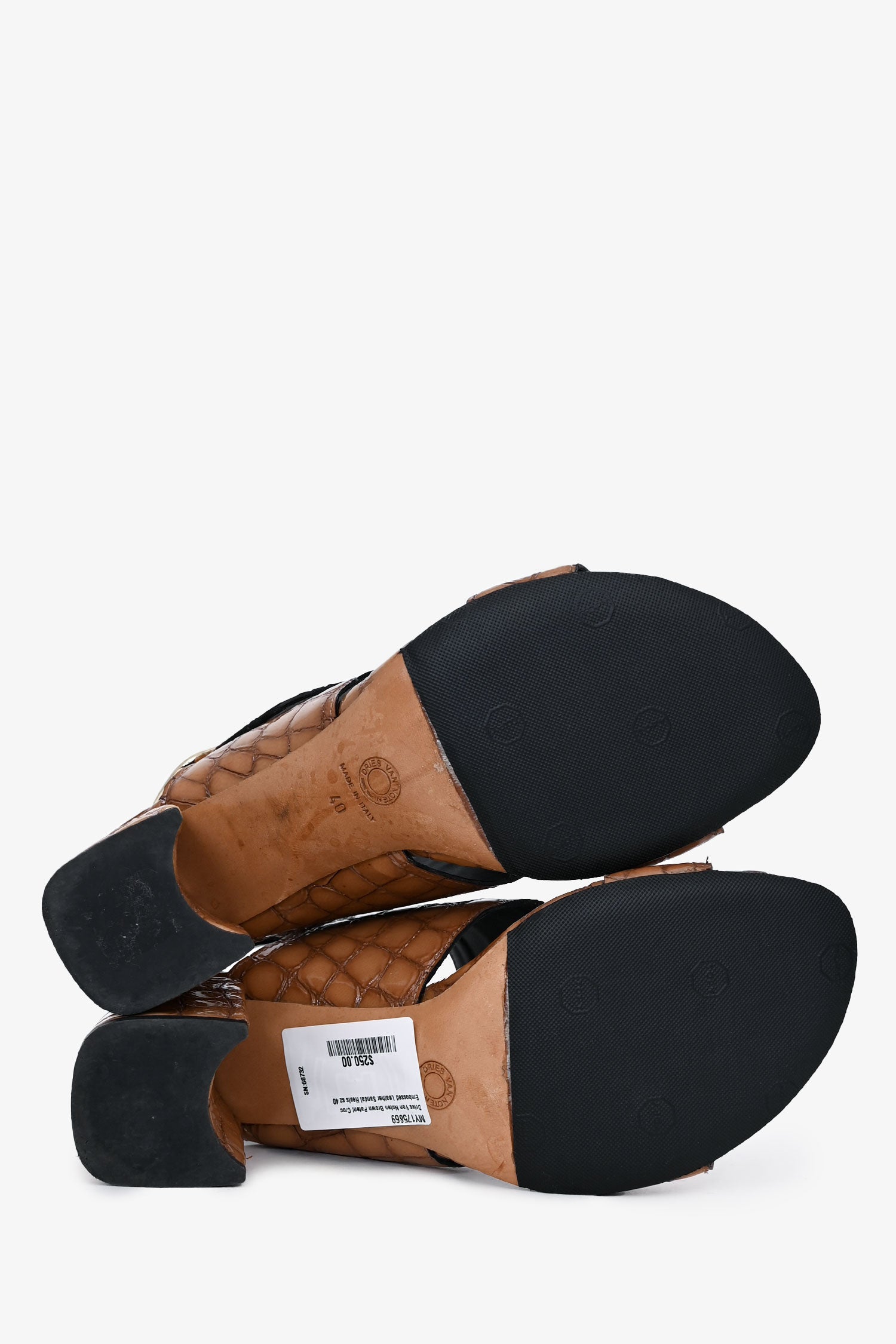 Dries Van Noten Brown Patent Croc Embossed Leather Sandal Heels Size 40