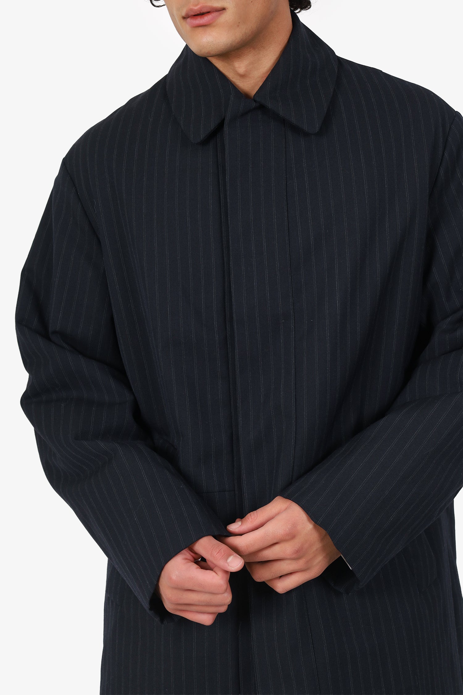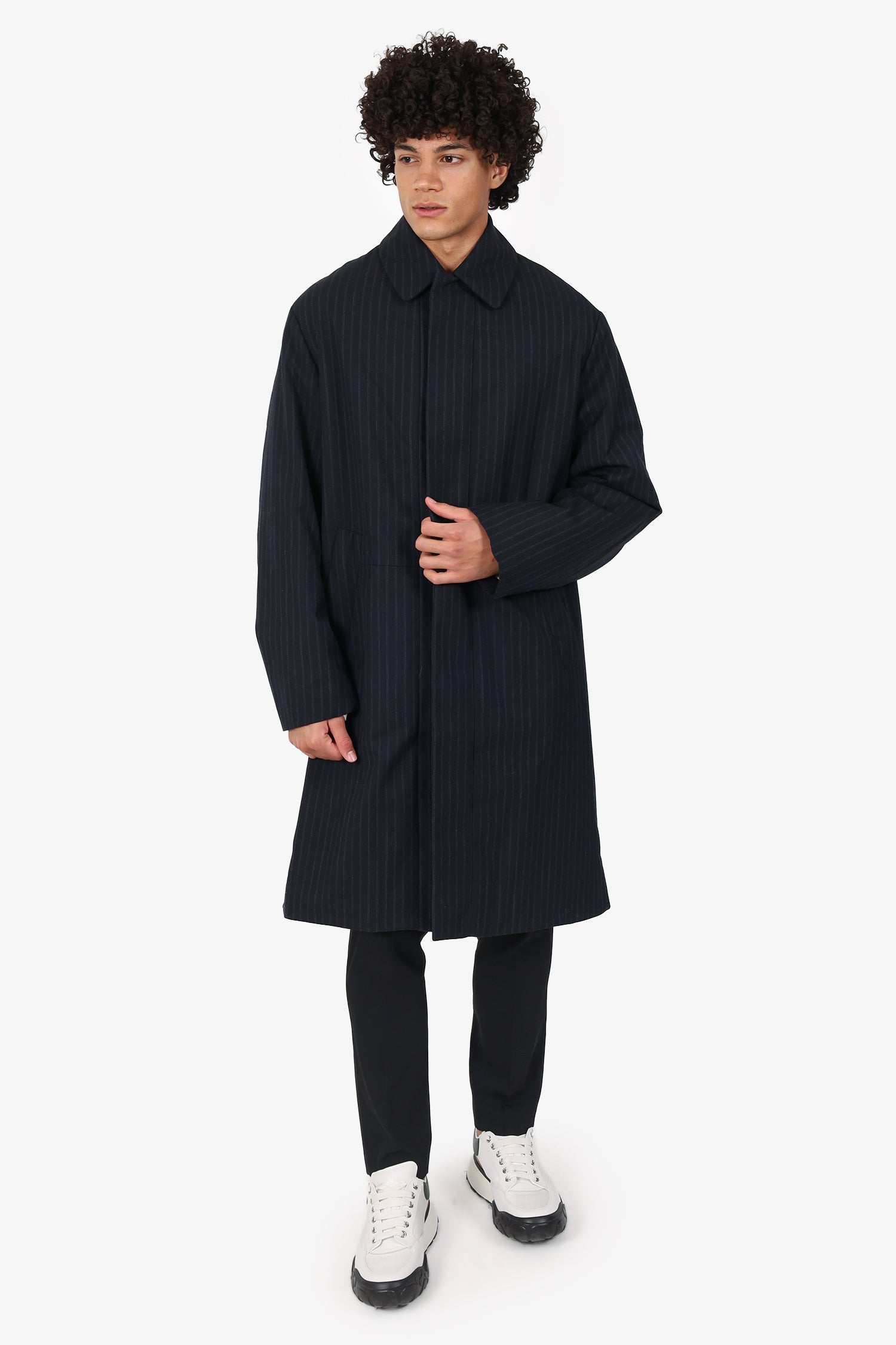 Refresh availabilityDries Van Noten Grey Striped Padded Overcoat. Pull-on. Collared neckline. Front snap button-up closure. 2 exterior front slip pockets. Lined interior. Gunmetal-tone hardware. Tonal stitching.