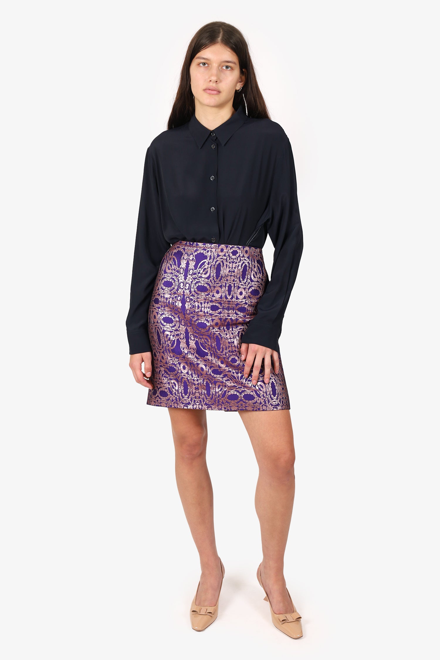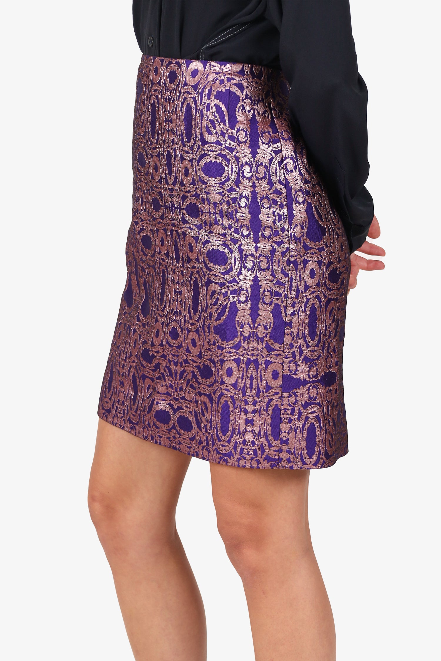 Dries Van Noten Purple Jacquard Mini Skirt Size 40
