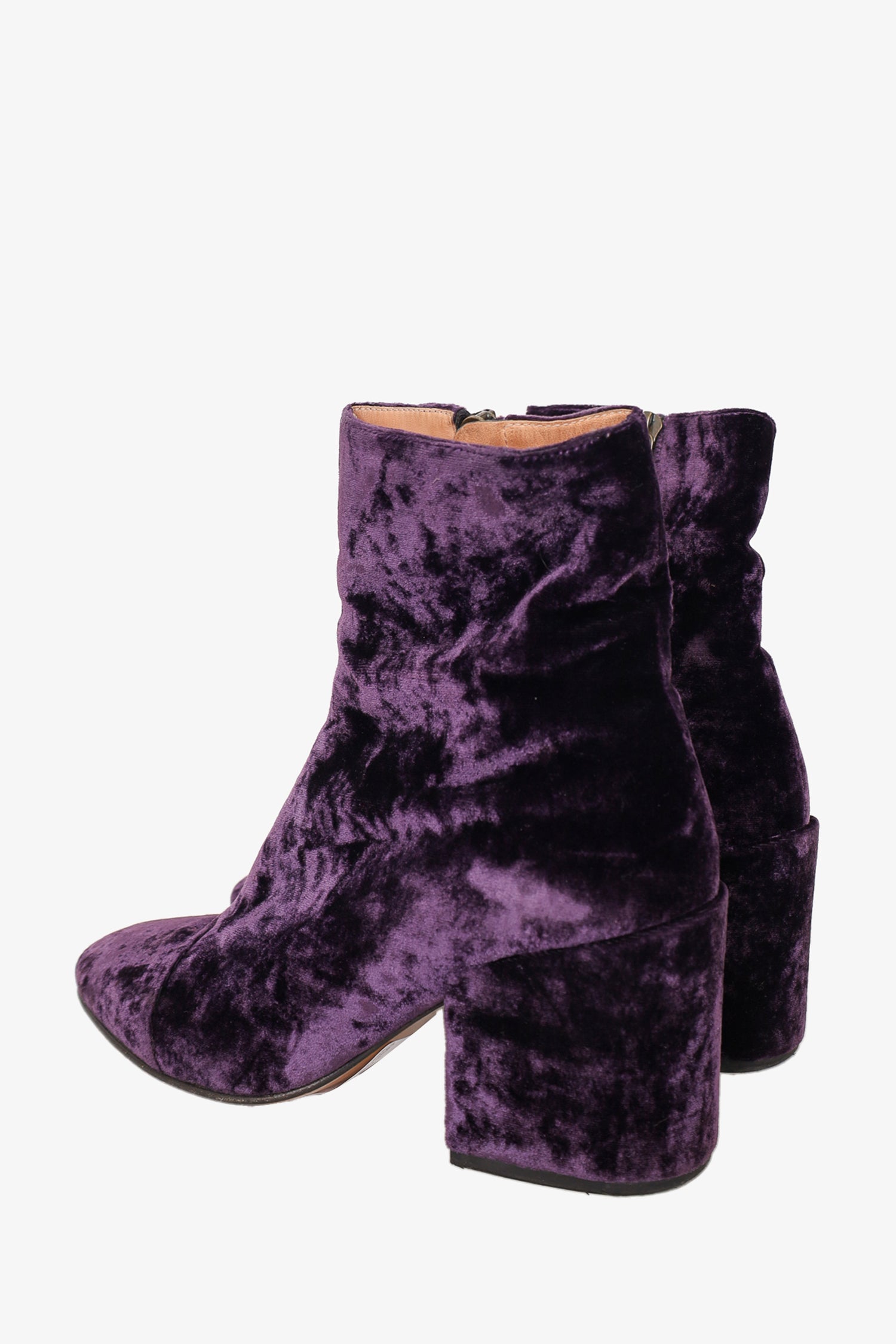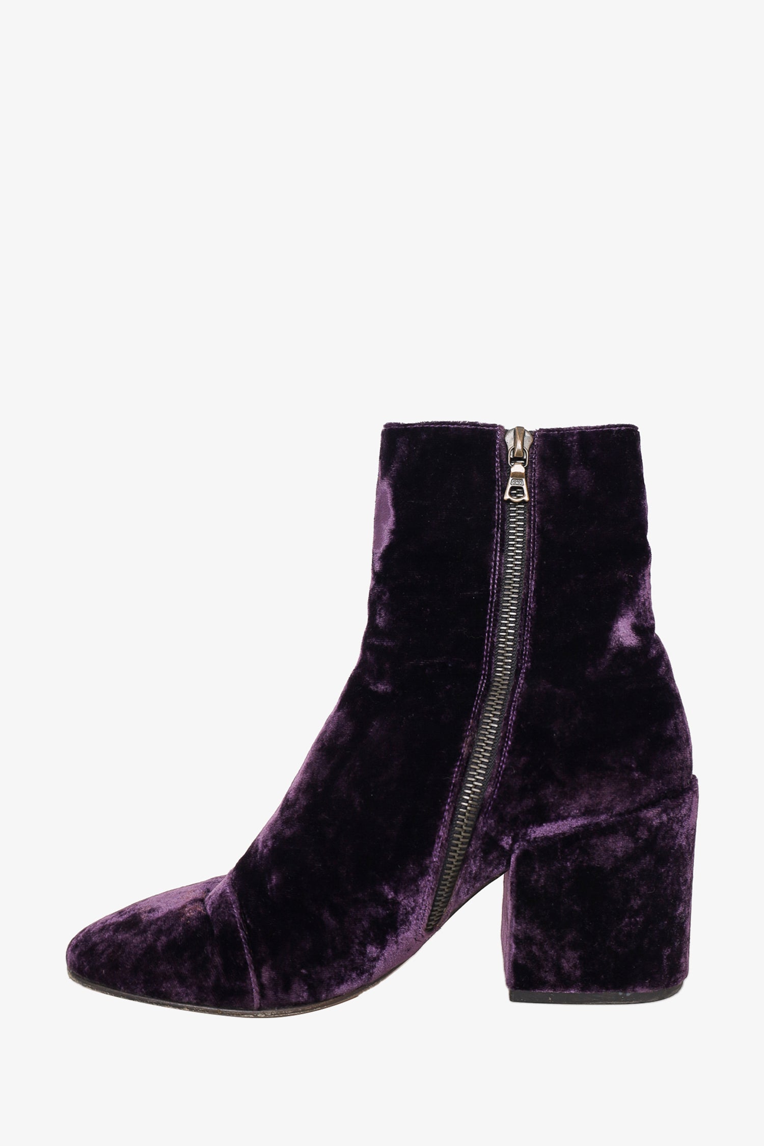 Refresh availabilityDries Van Noten Purple Velvet Donna Boots. Rounded toebox. Block heel. side-zipper closure. Tonal stitching.