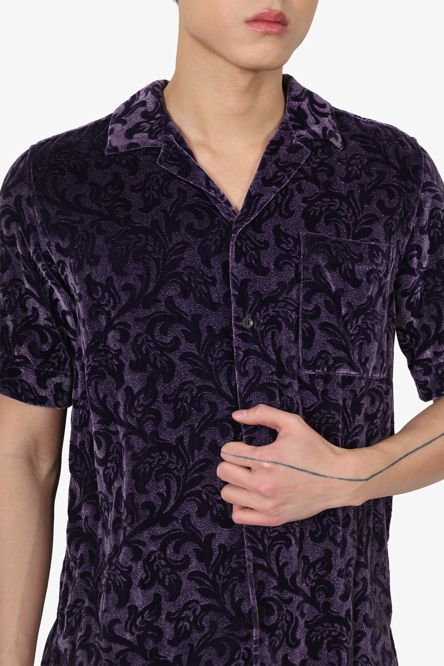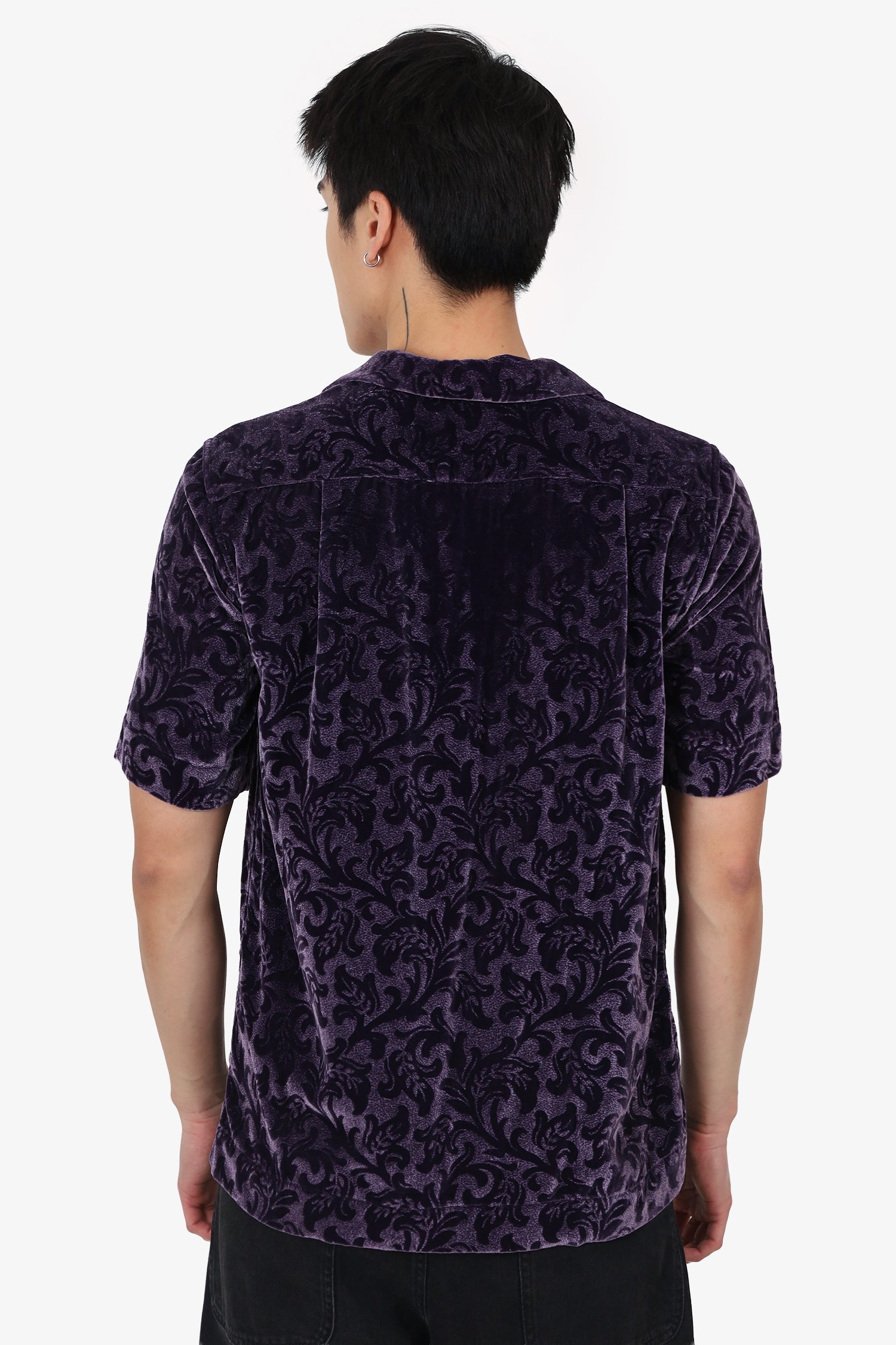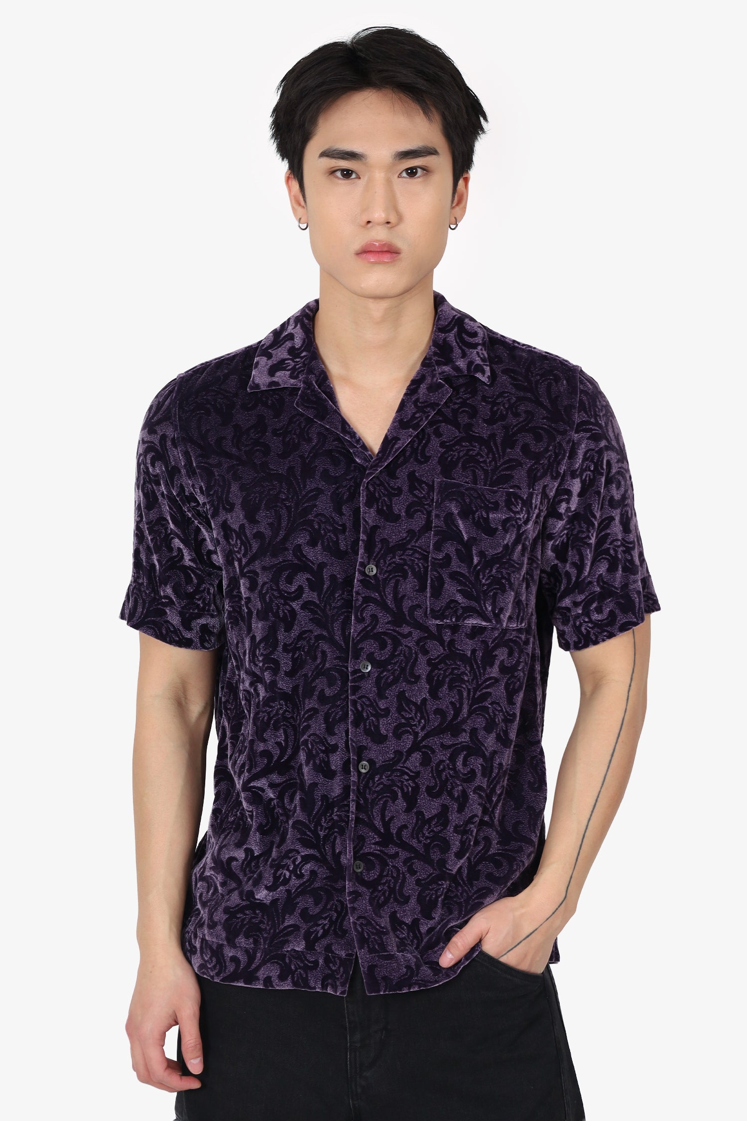 Refresh availabilityDries Van Noten Purple Velvet Paisley Print Short Sleeve Tops. Pull-on. Collared-neckline. Front button-up closure. Single front exterior slip pocket. Tonal stitching.
