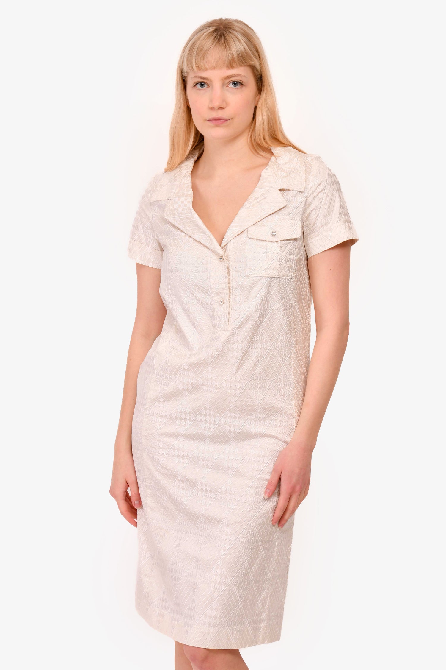 Refresh availabilityDries Van Noten White Metallic Short-Sleeved Midi Dress. Front button-up closure. Unlined. Tonal stitching.