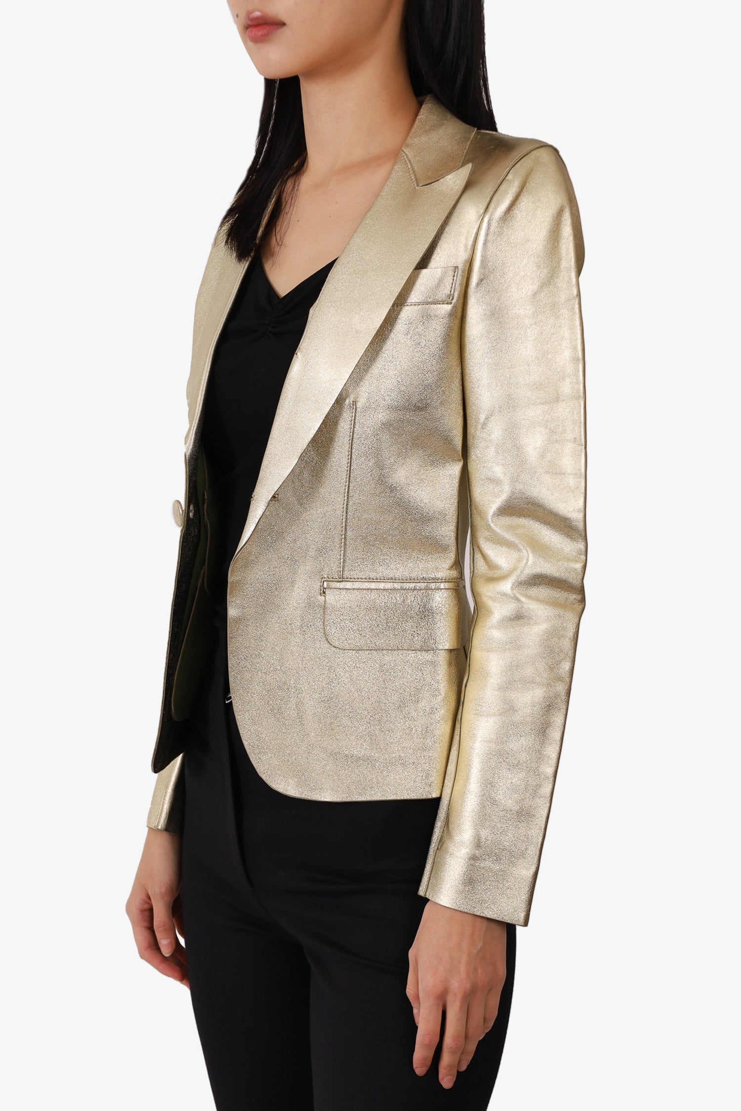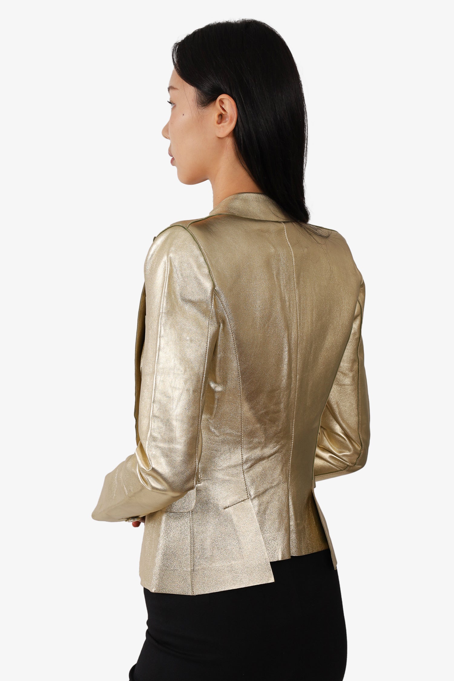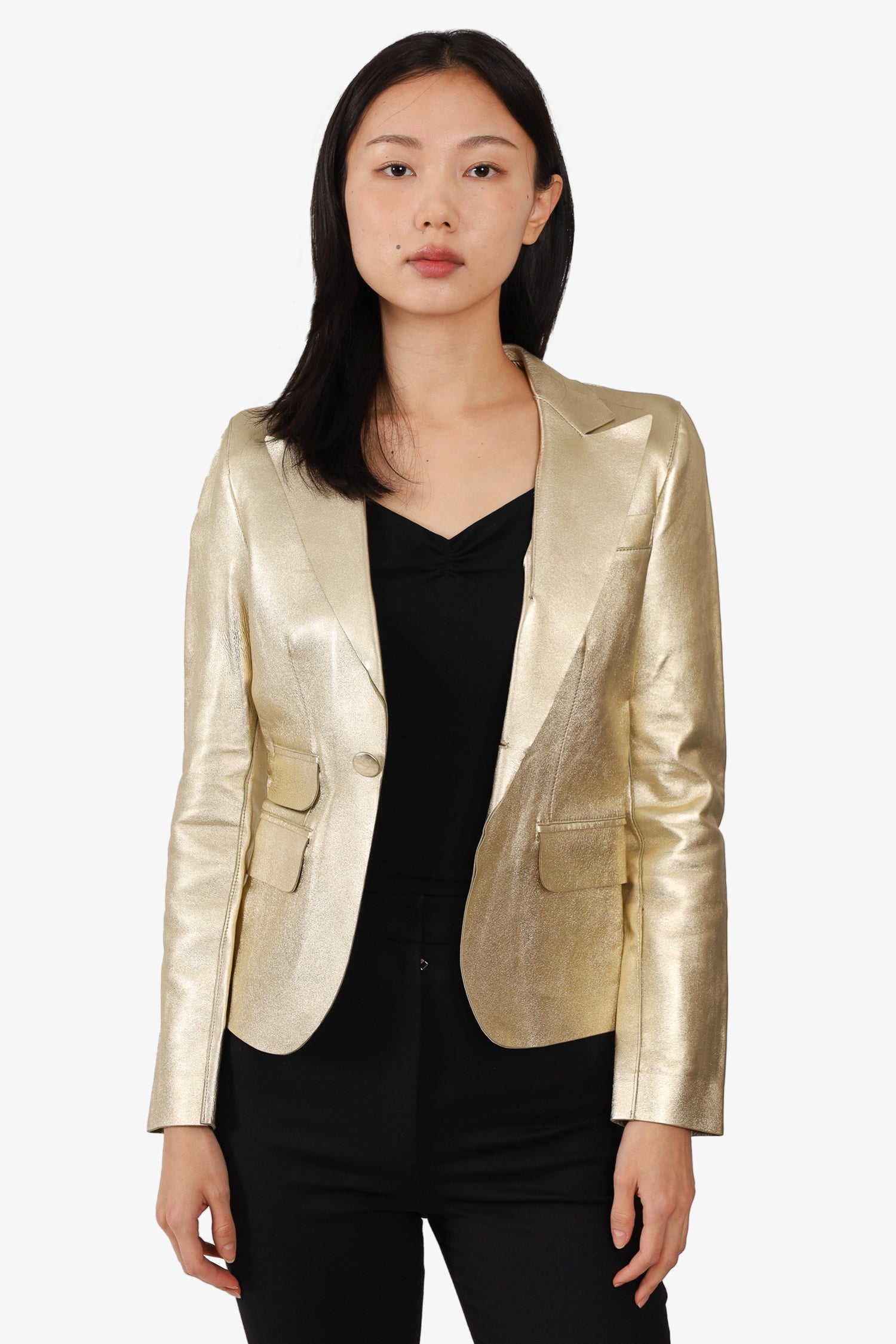 Refresh availabilityDsquared2 Gold Lambskin Jacket. Front button-up closure. Front open pockets. Lined. Tonal stitching