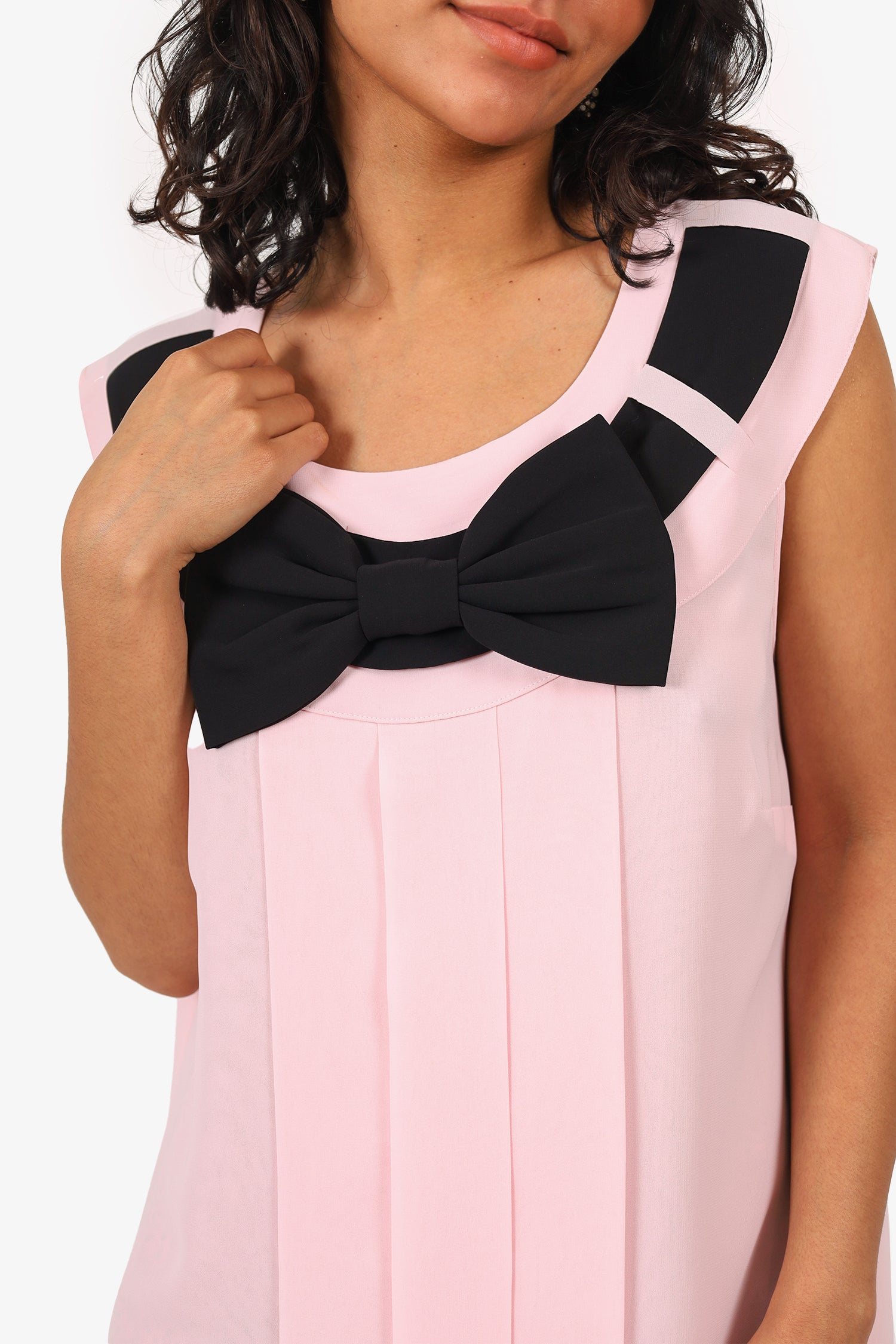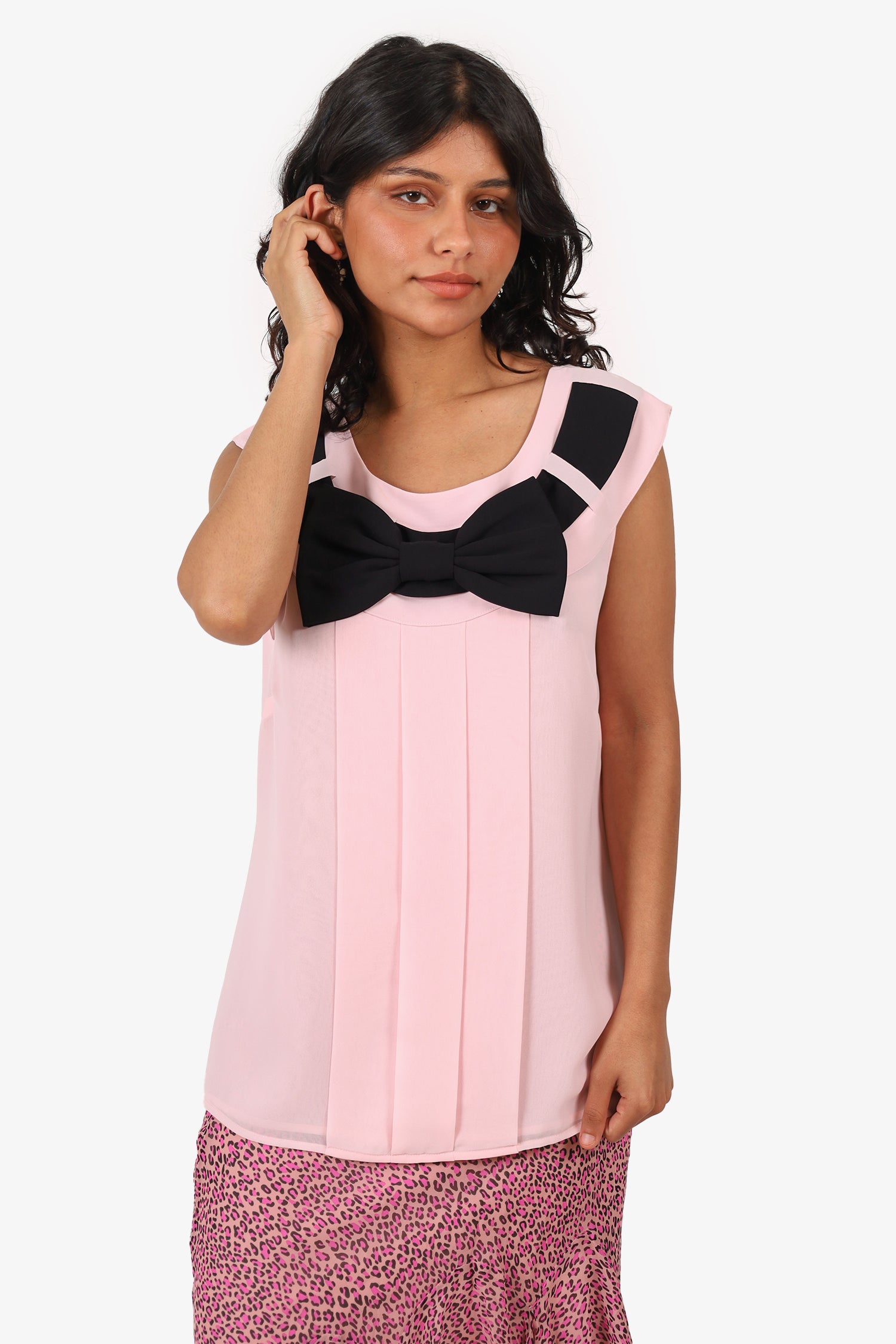 Refresh availabilityEdward Achour Pink/Black Pleated Bow Detail Sleeveless Top. Pull-on. Round neckline. Bottom side zip closure. Lined interior. Tonal stitching.