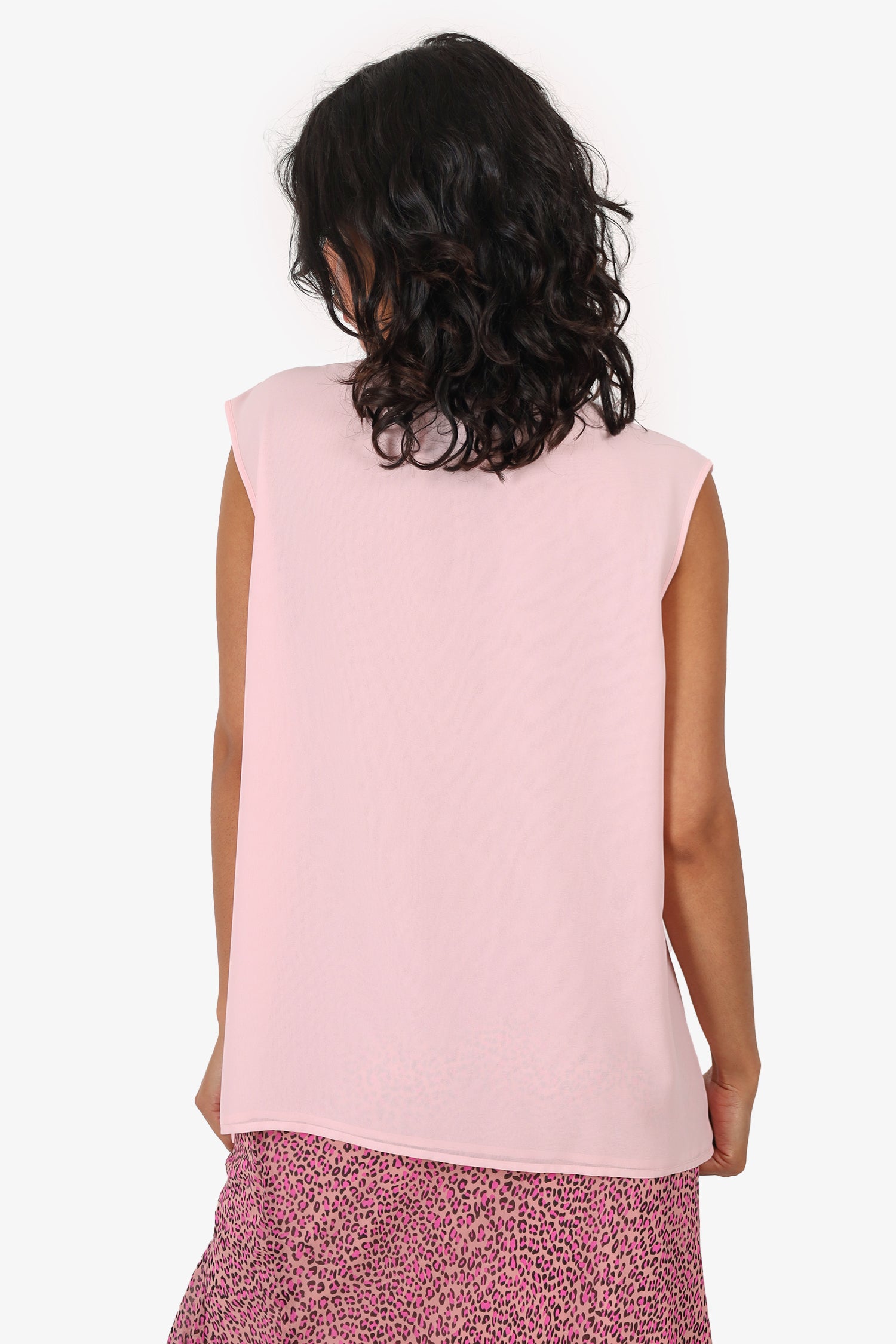 Edward Achour Pink/Black Pleated Bow Detail Sleeveless Top Size 42