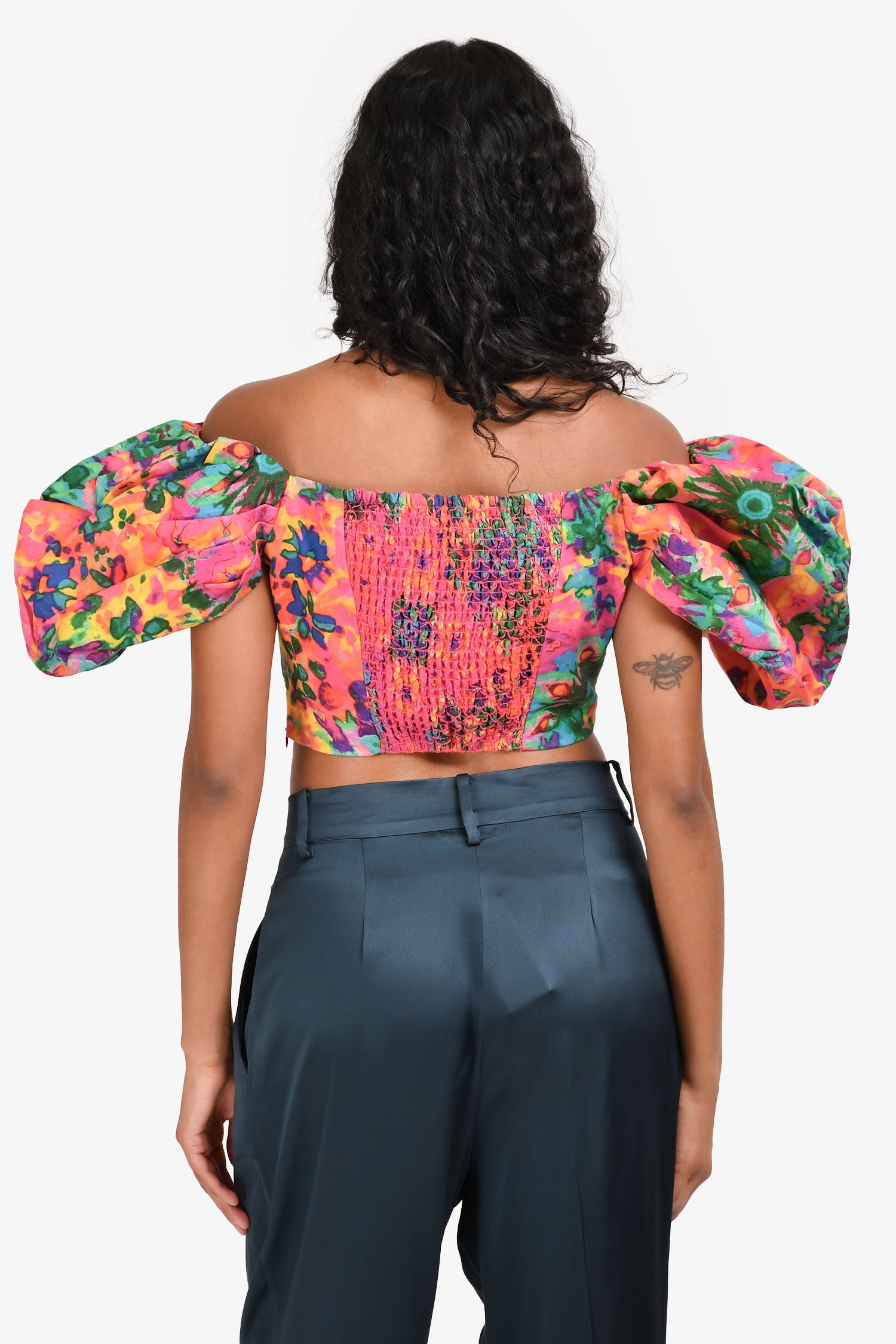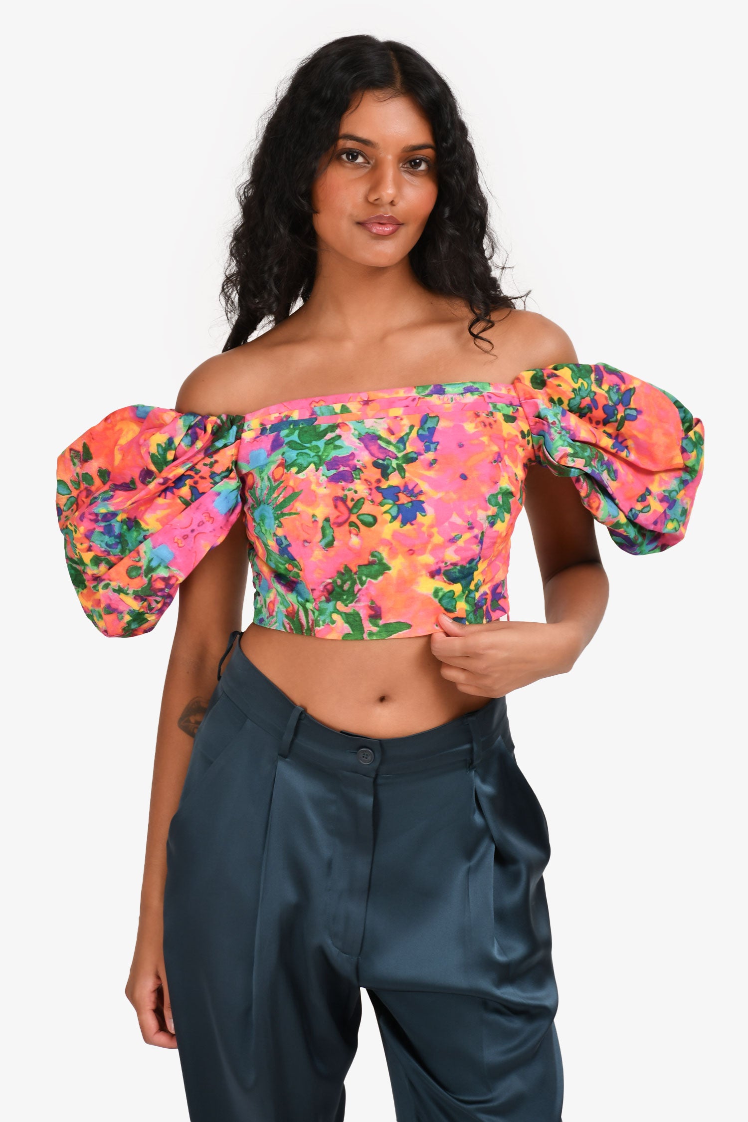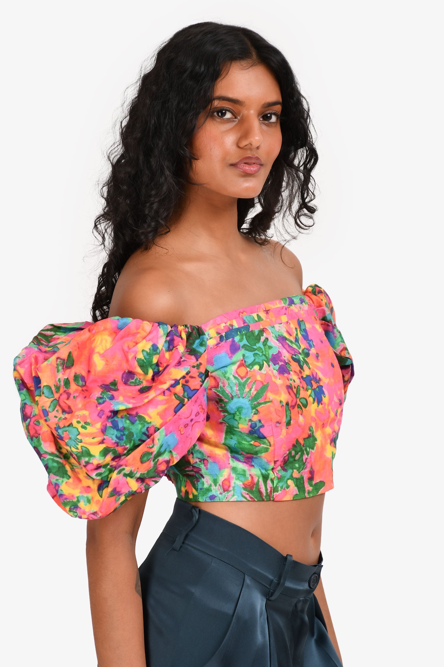 Elliatt Pink/Green Cotton Off the Shoulder Crop Top Size S
