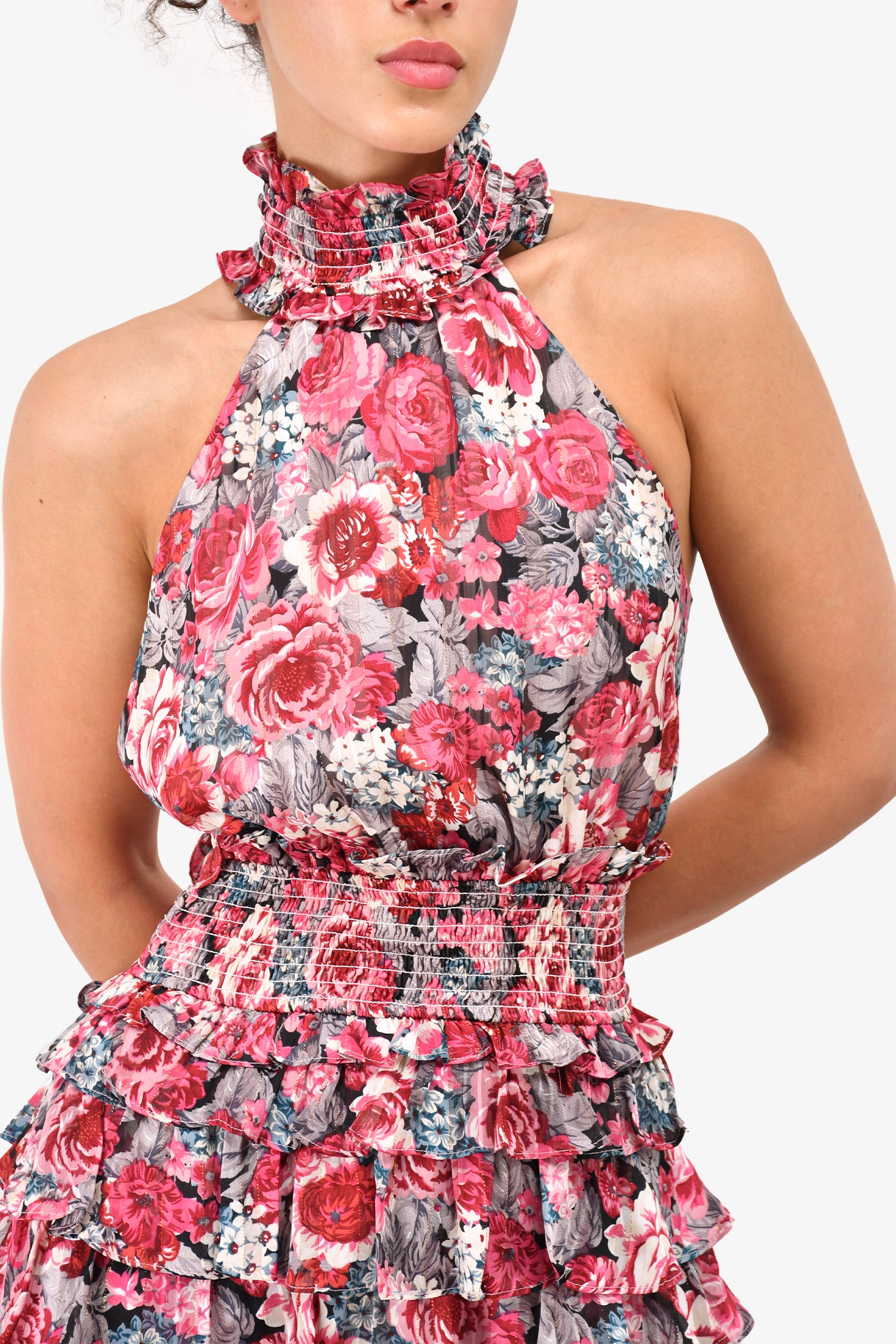 Elliatt Purple Floral High Neck Tiered Maxi Dress Size S
