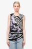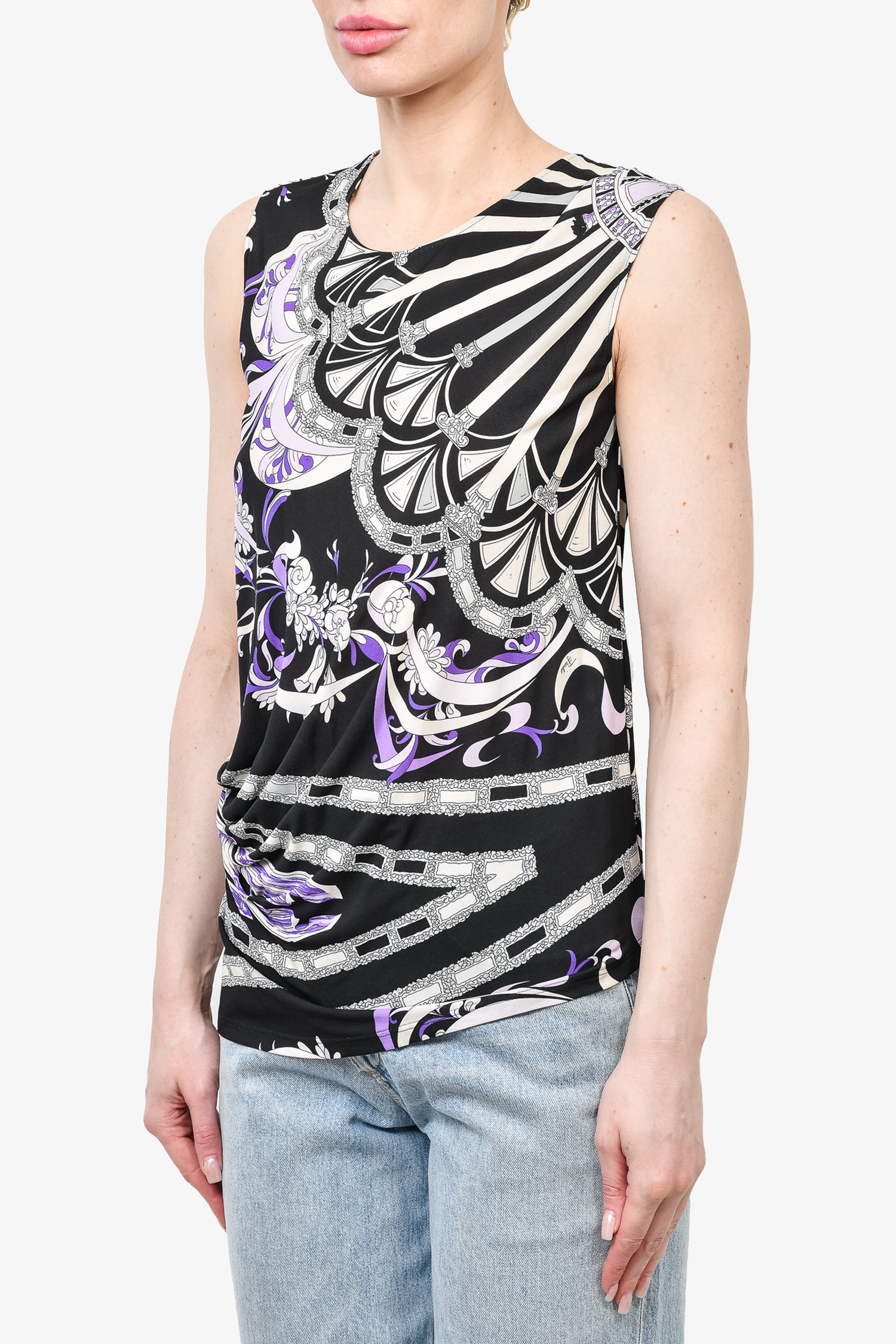 Emilio Pucci Black/Purple Floral Sleeveless Top with Side Pleats Size 6