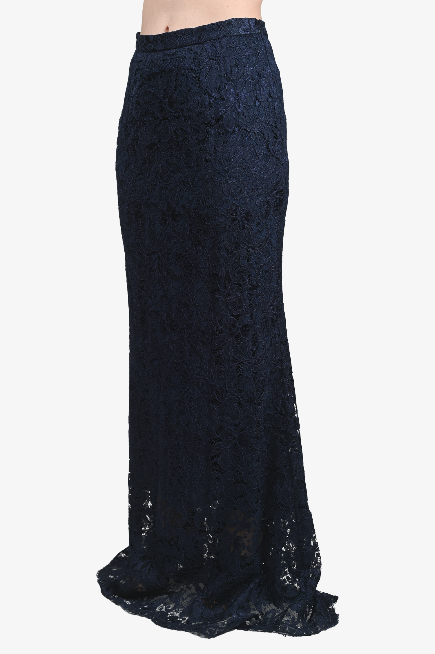 Refresh availabilityEmilio Pucci Blue Lace Maxi Skirt. Side zip and hook closure. Lined. Tonal stitching.