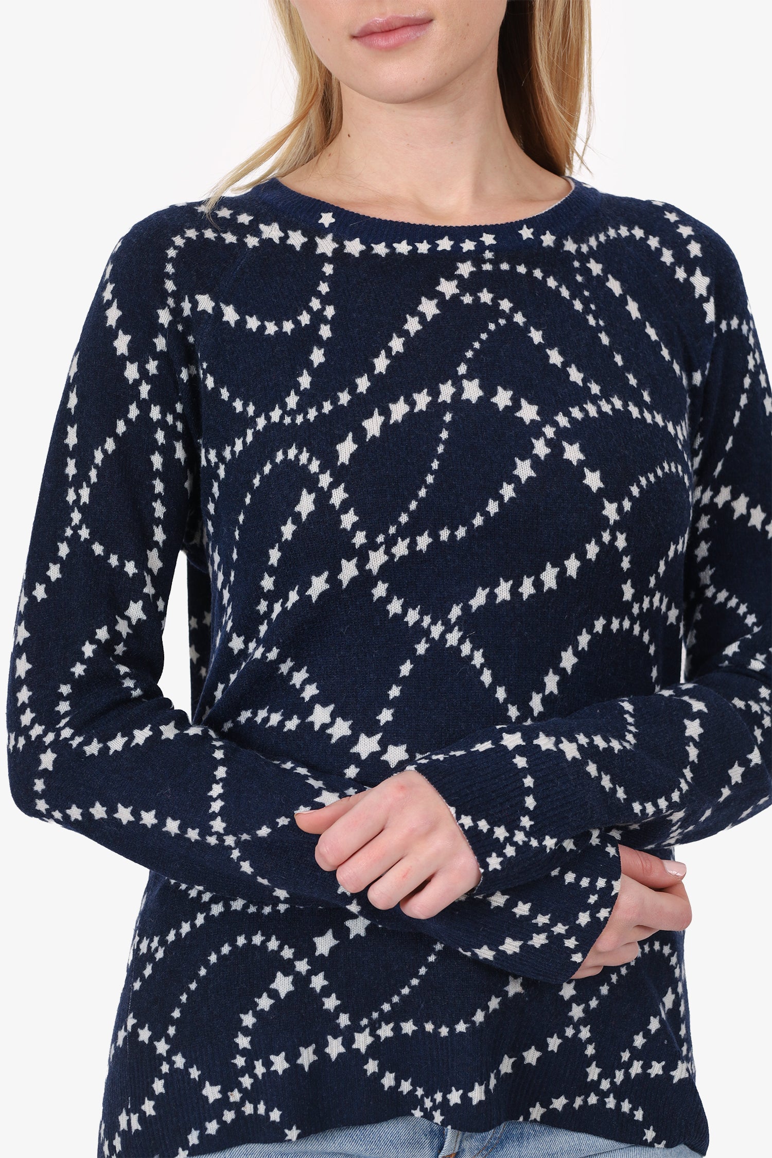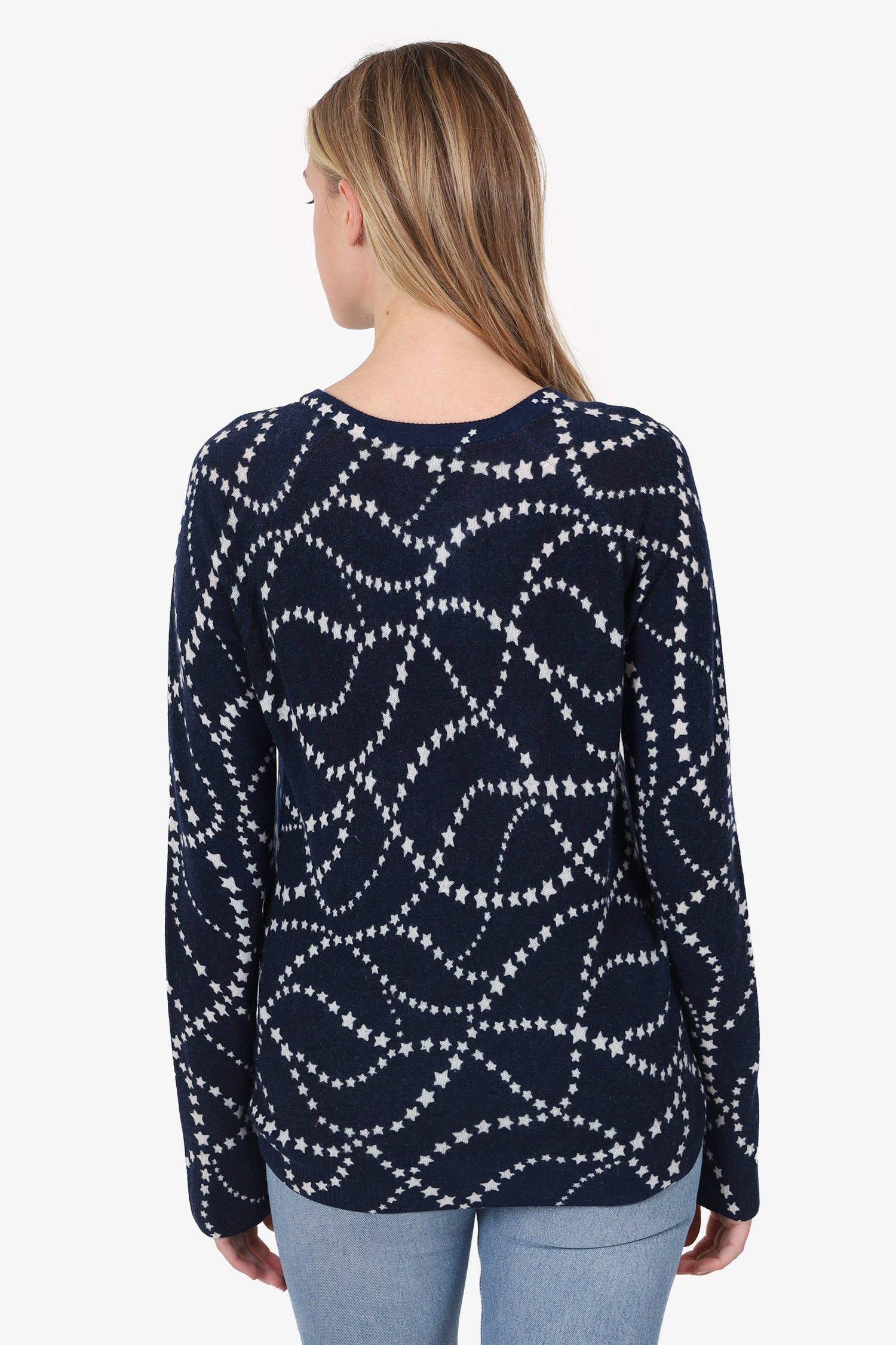 Refresh availabilityEquipment Navy Blue/White Star Cashmere Sweater. Pull-on. Round neckline. Tonal stitching.