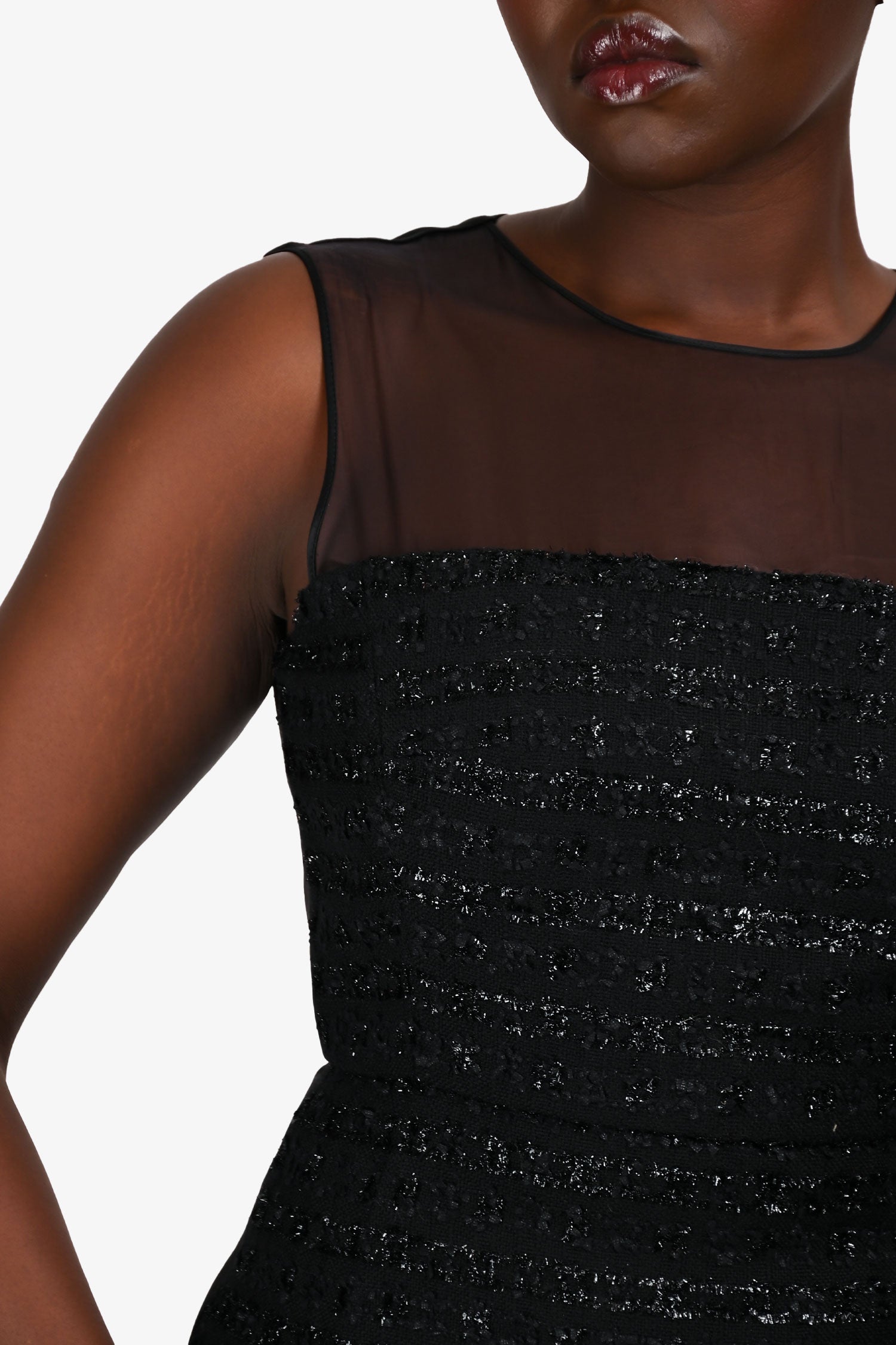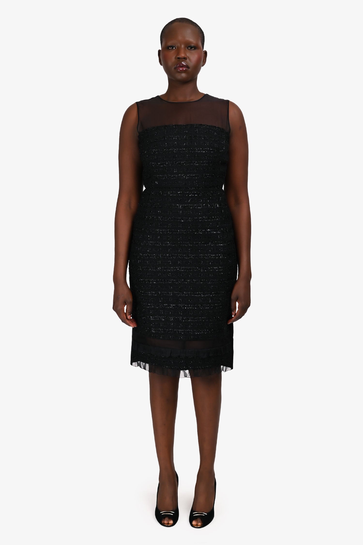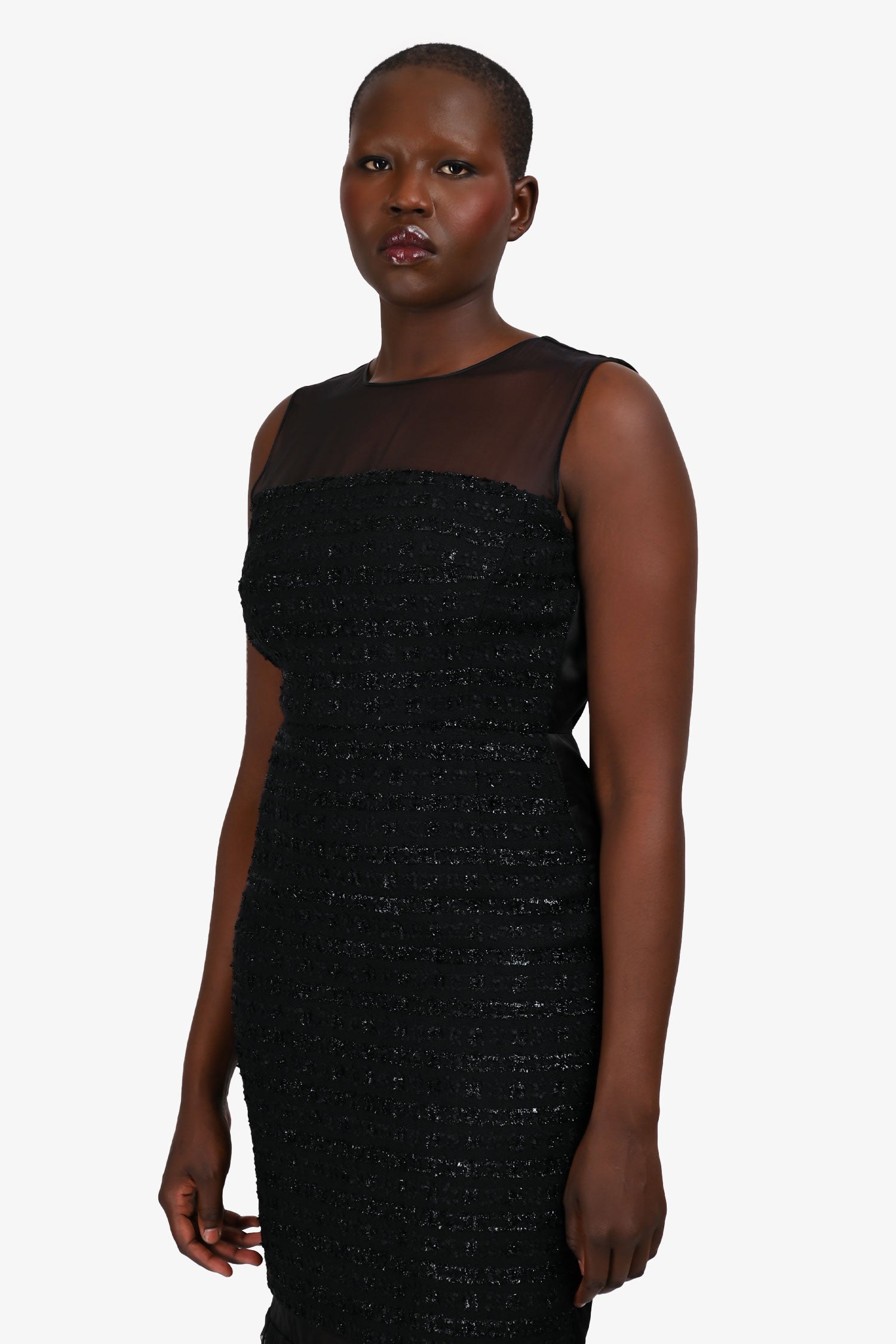 Erdem Black Tweed/Mesh Midi Dress Size 8 US