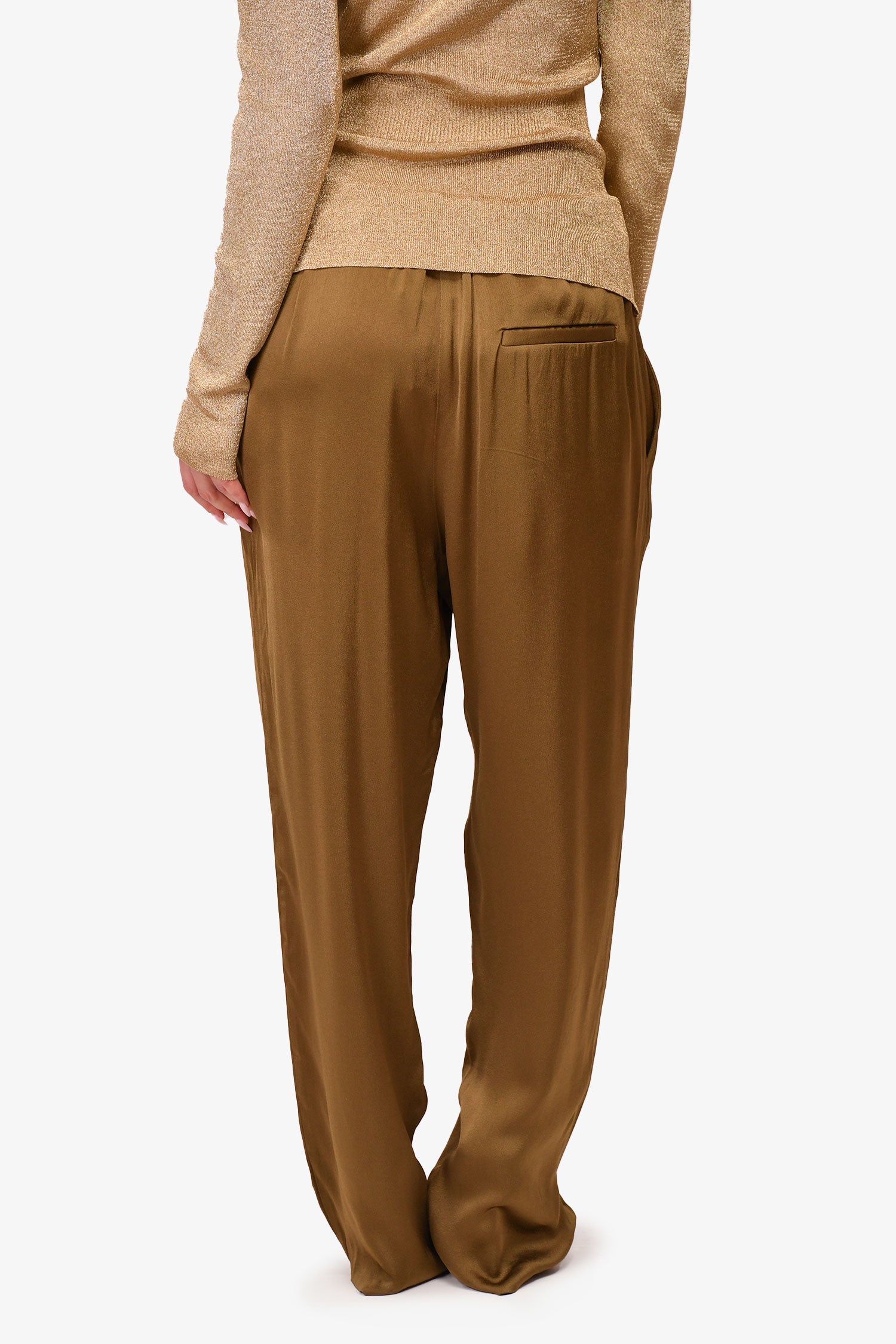 Refresh availabilityErika Cavallini Olive Green Satin Pants. Concealed zipper at the side. Back welt pocket. Elasticated waistband. Tonal stitching.