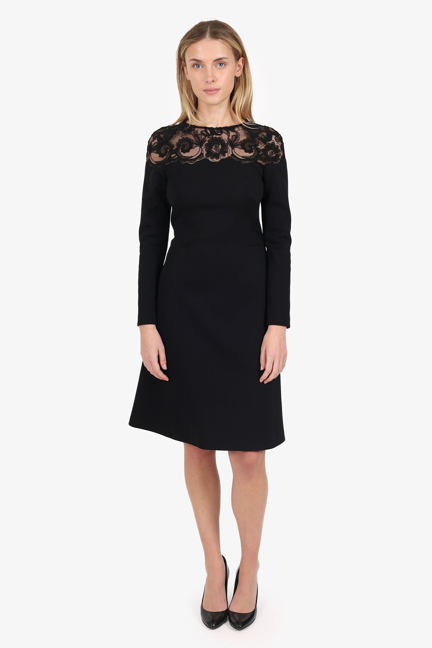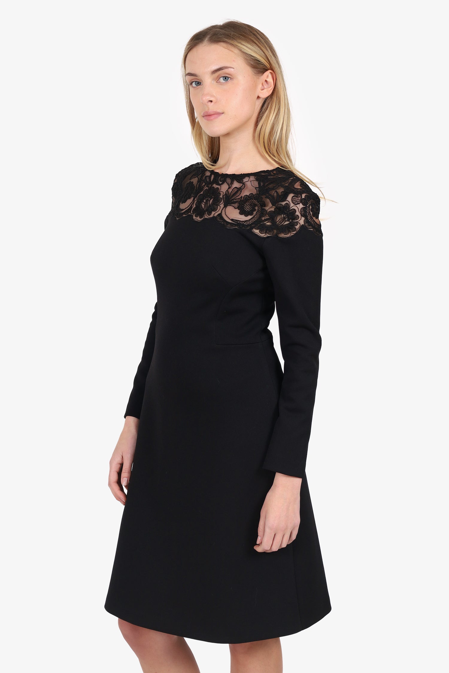 Ermanno Scervino Black Lace Detail Long Sleeve Dress Size 38