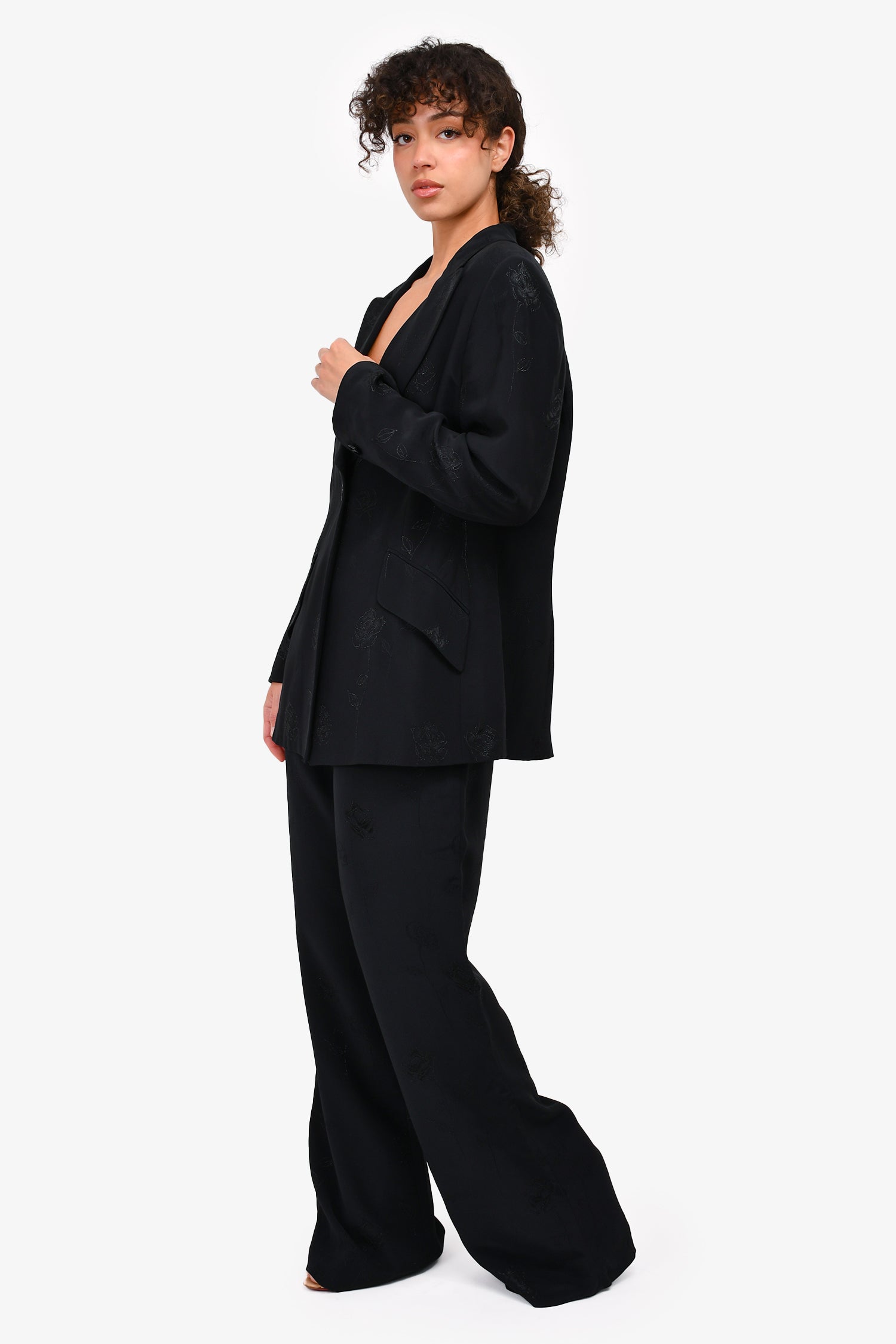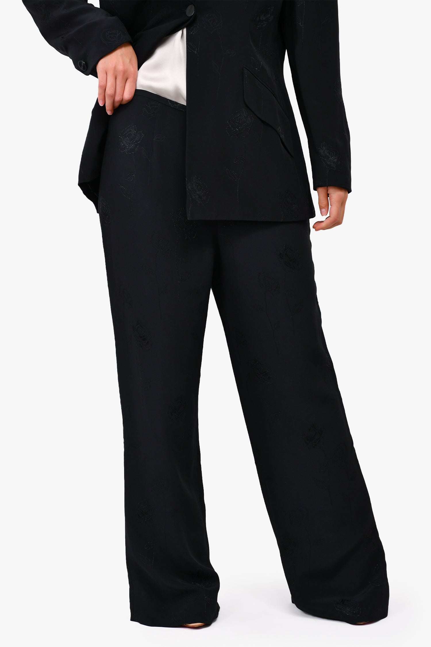 Refresh availabilityEscada Black Rose Patterned Pants. Rear zip and button on closure. Lined. Tonal stitching.