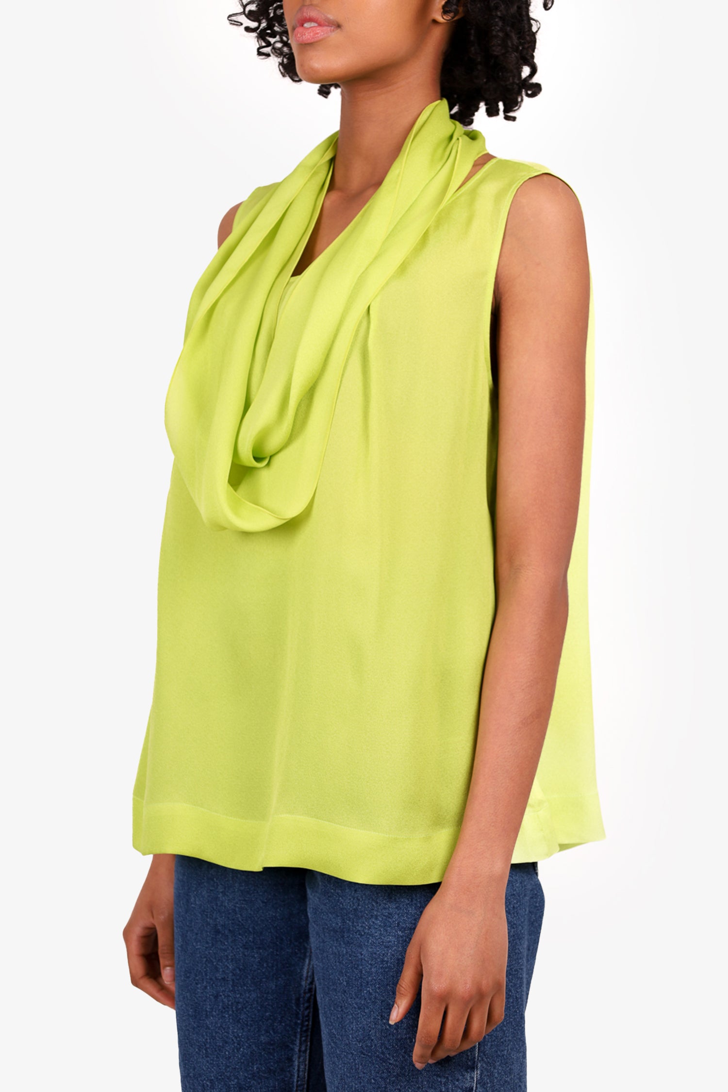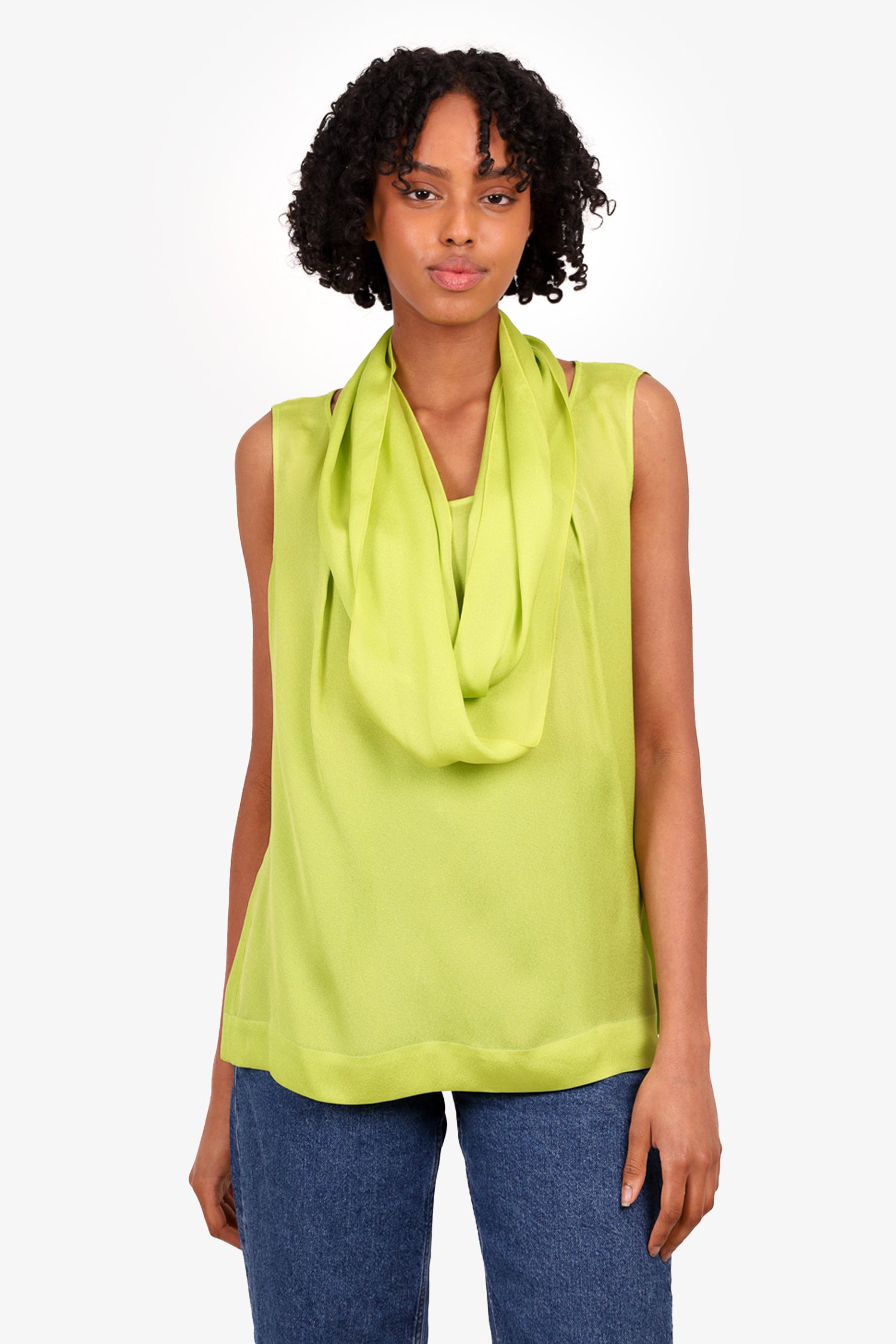 Refresh availabilityEscada Green Silk Neck-Tie Sleeveless Top. Pull-over. Unlined. Tonal stitching.