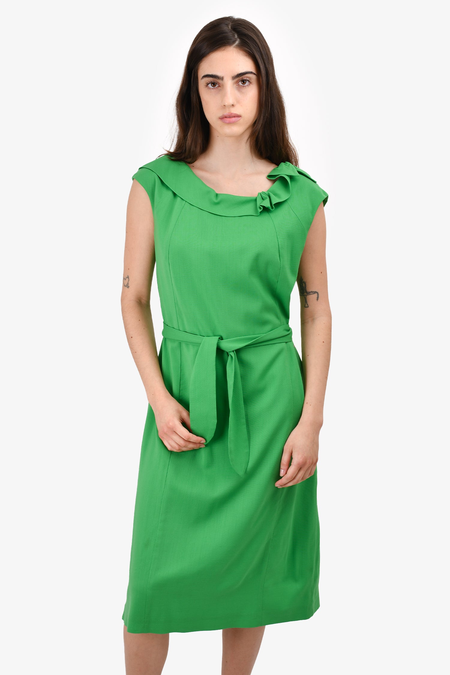 Refresh availabilityEscada Green Sleeveless Shift Dress. Rear zip closure. Lined. Waist belt.
