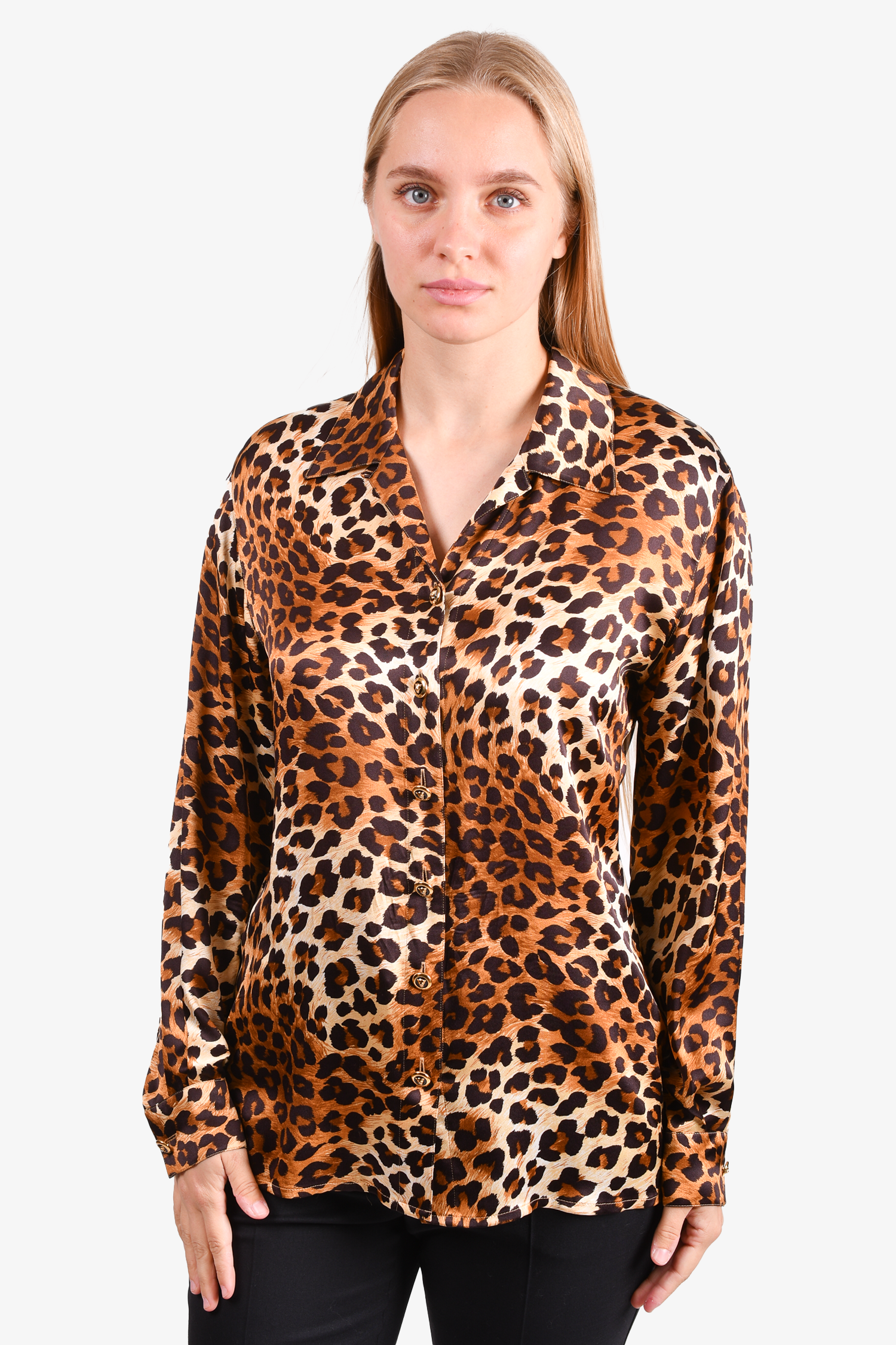 Refresh availabilityEscada Leopard Print Silk Button Down. Button closure on the cuffs. Tonal stitching.