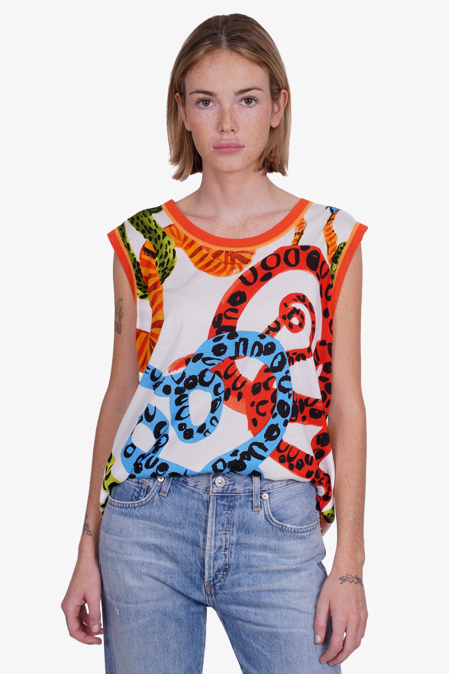 Refresh availabilityEscada Multicolour Snake Print Sleeveless Top. Pullover. Round-neck. Tonal stitching.