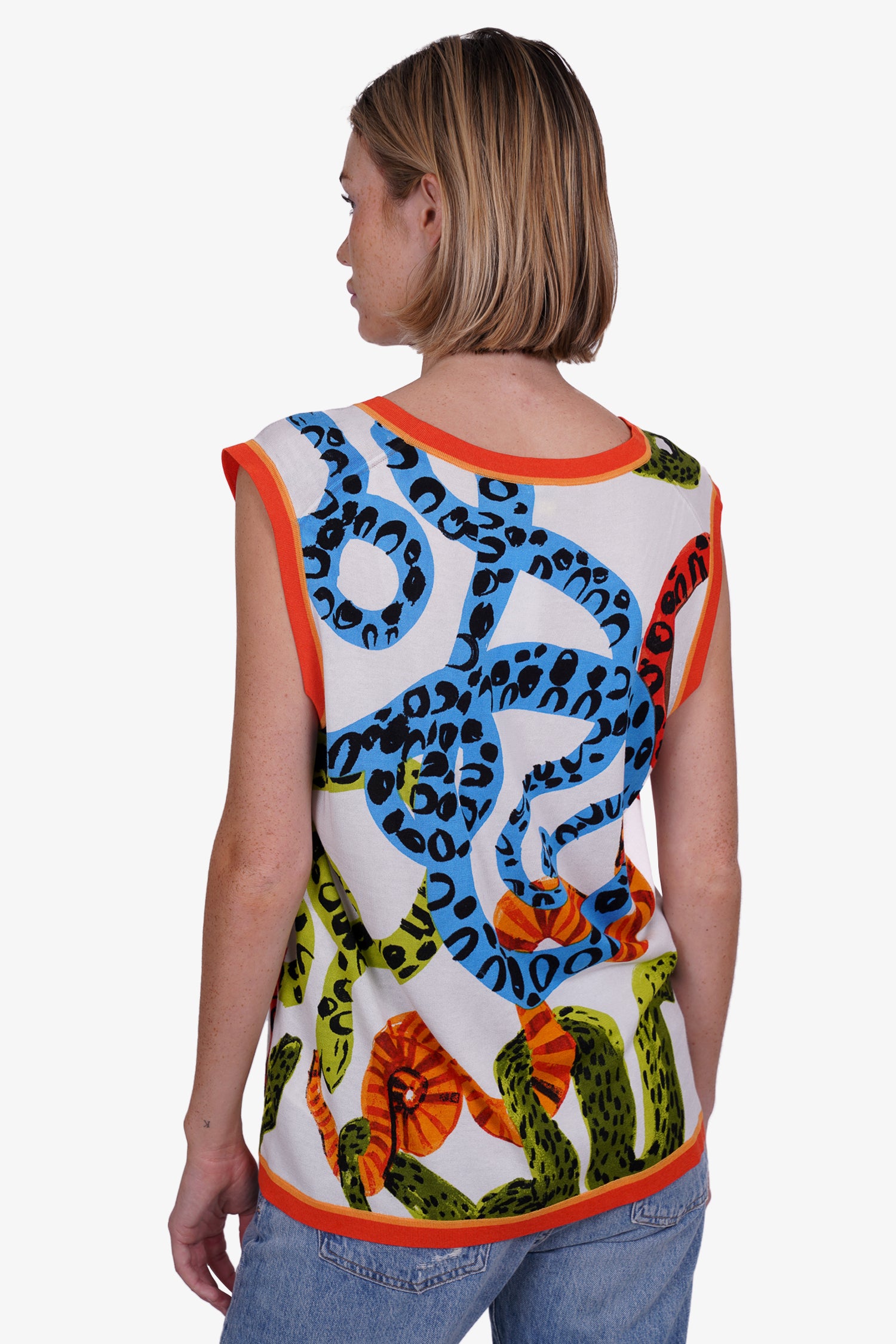 Escada Multicolour Snake Print Sleeveless Top Size XL