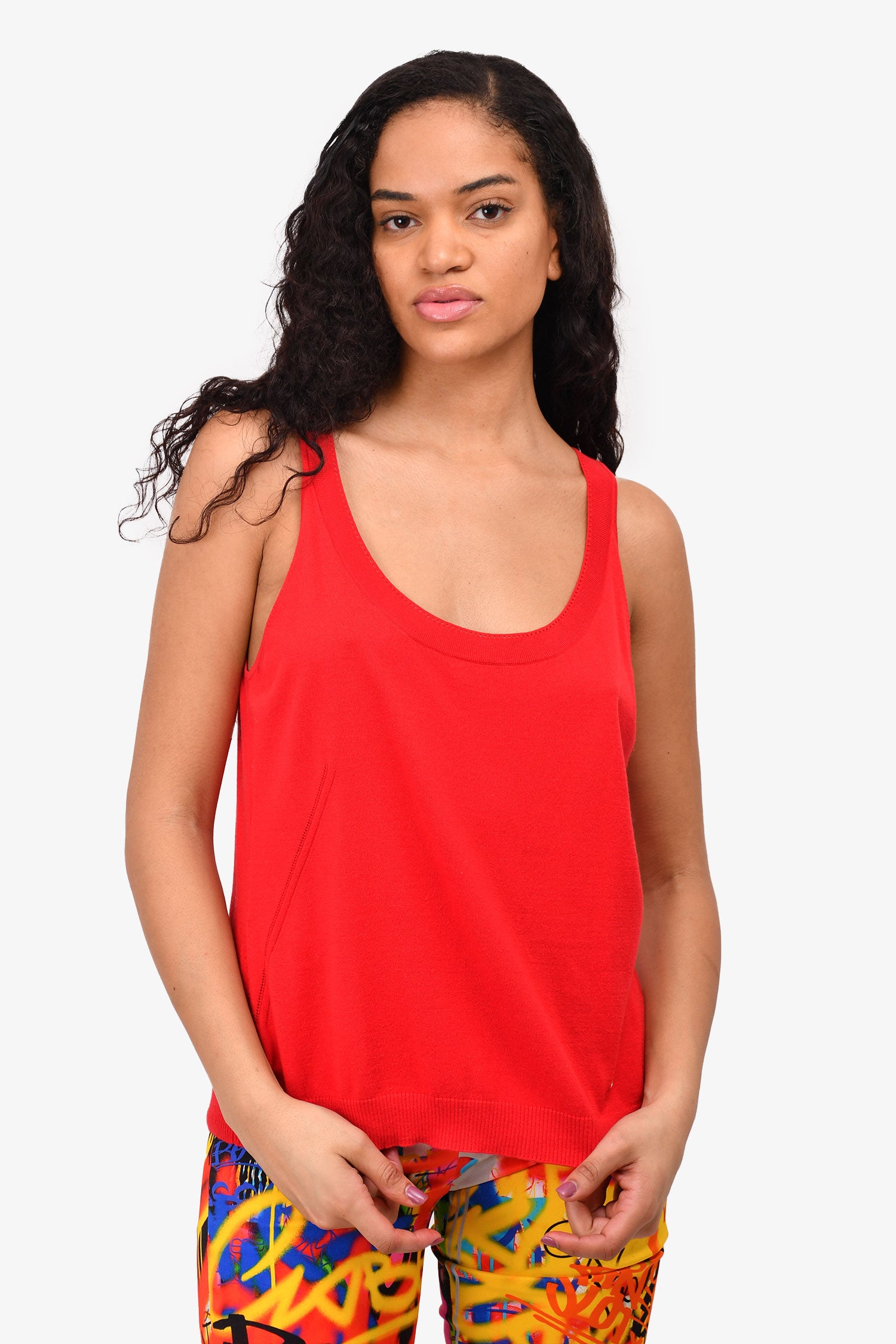 Escada Red Silk/Cashmere Round Neck Vest Top Size 42