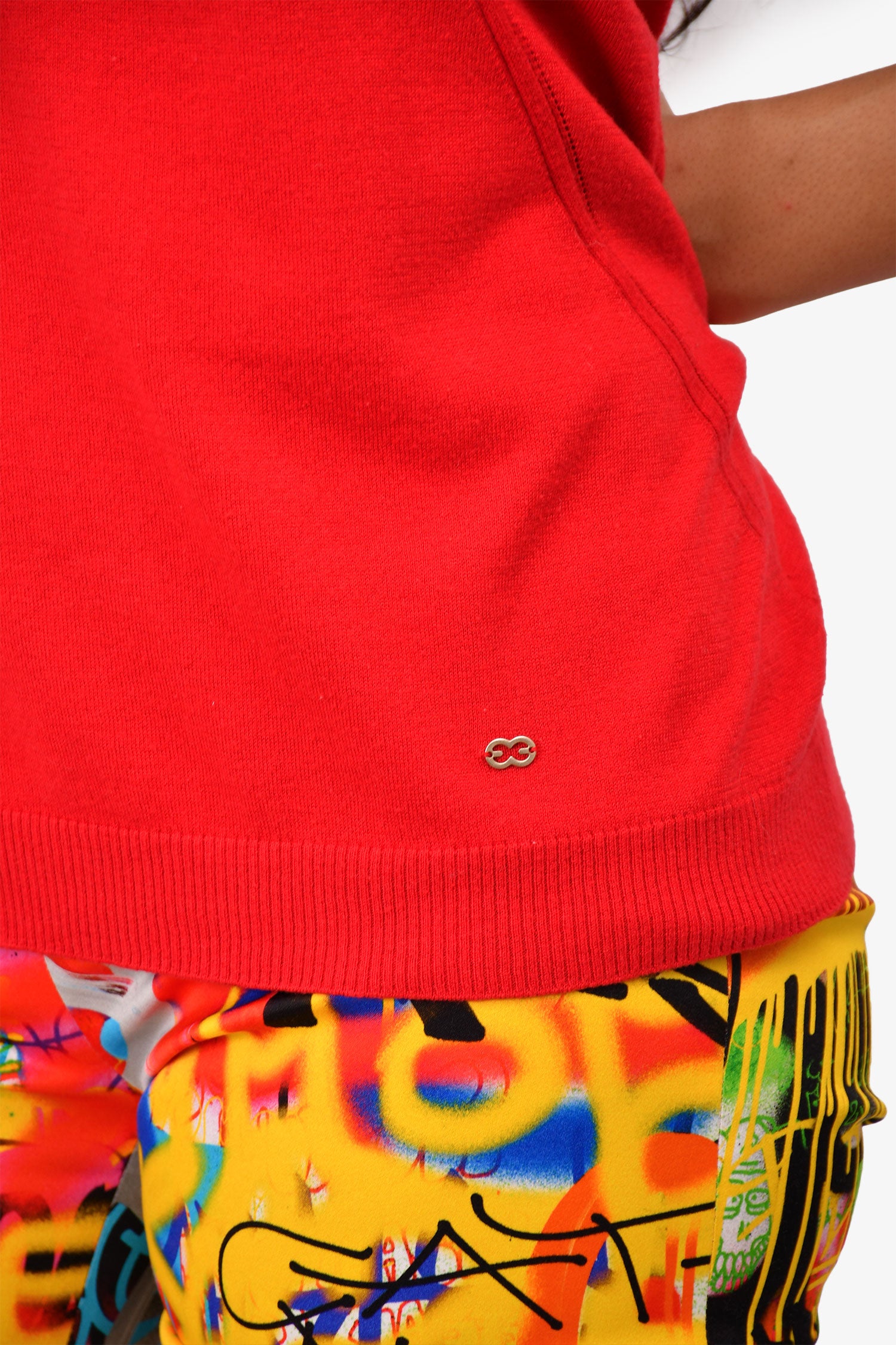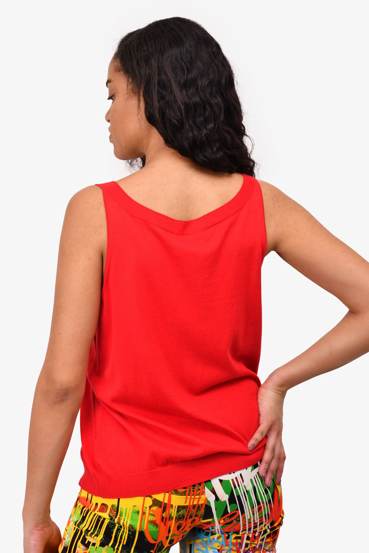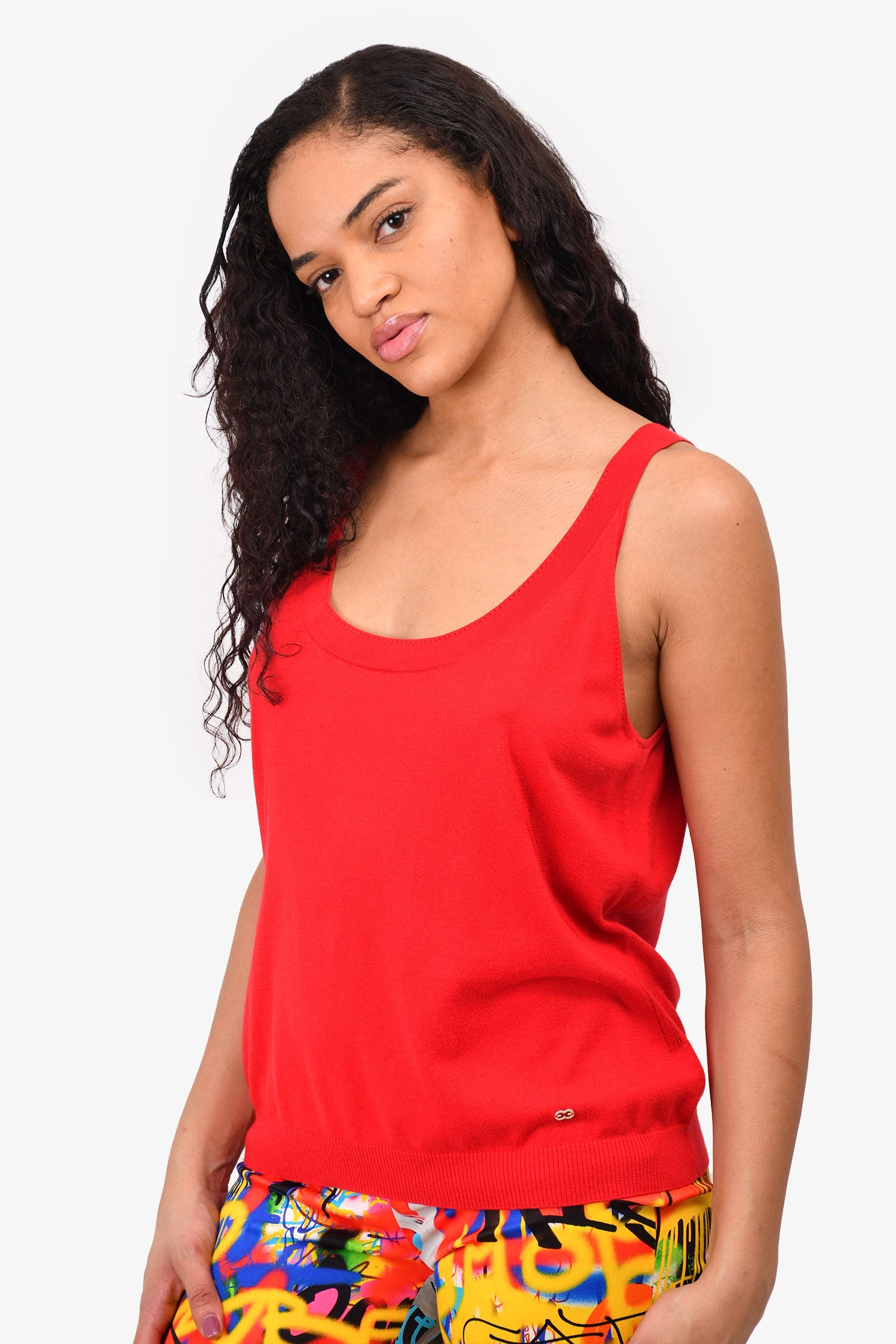 Refresh availabilityEscada Red Silk/Cashmere Round Neck Vest Top. Tonal stitching. Gold-tone hardware emblem on the lower left corner.