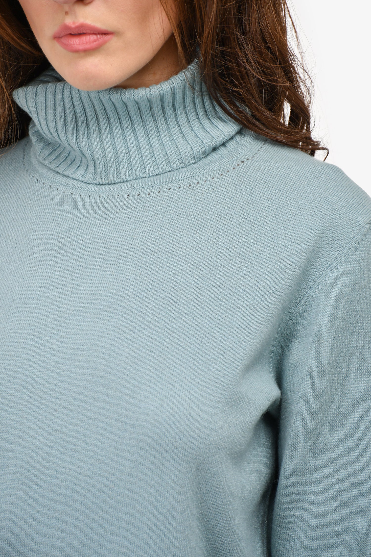 Escada Seafoam Green Cashmere Turtleneck Sweater Size L