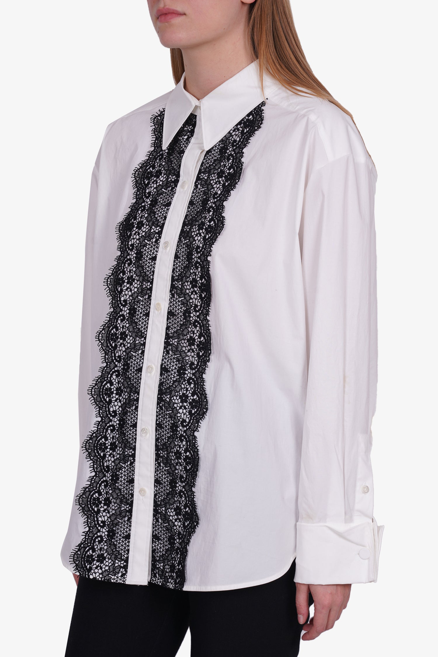 Escada White Cotton Button Down with Lace Panelling Size 42