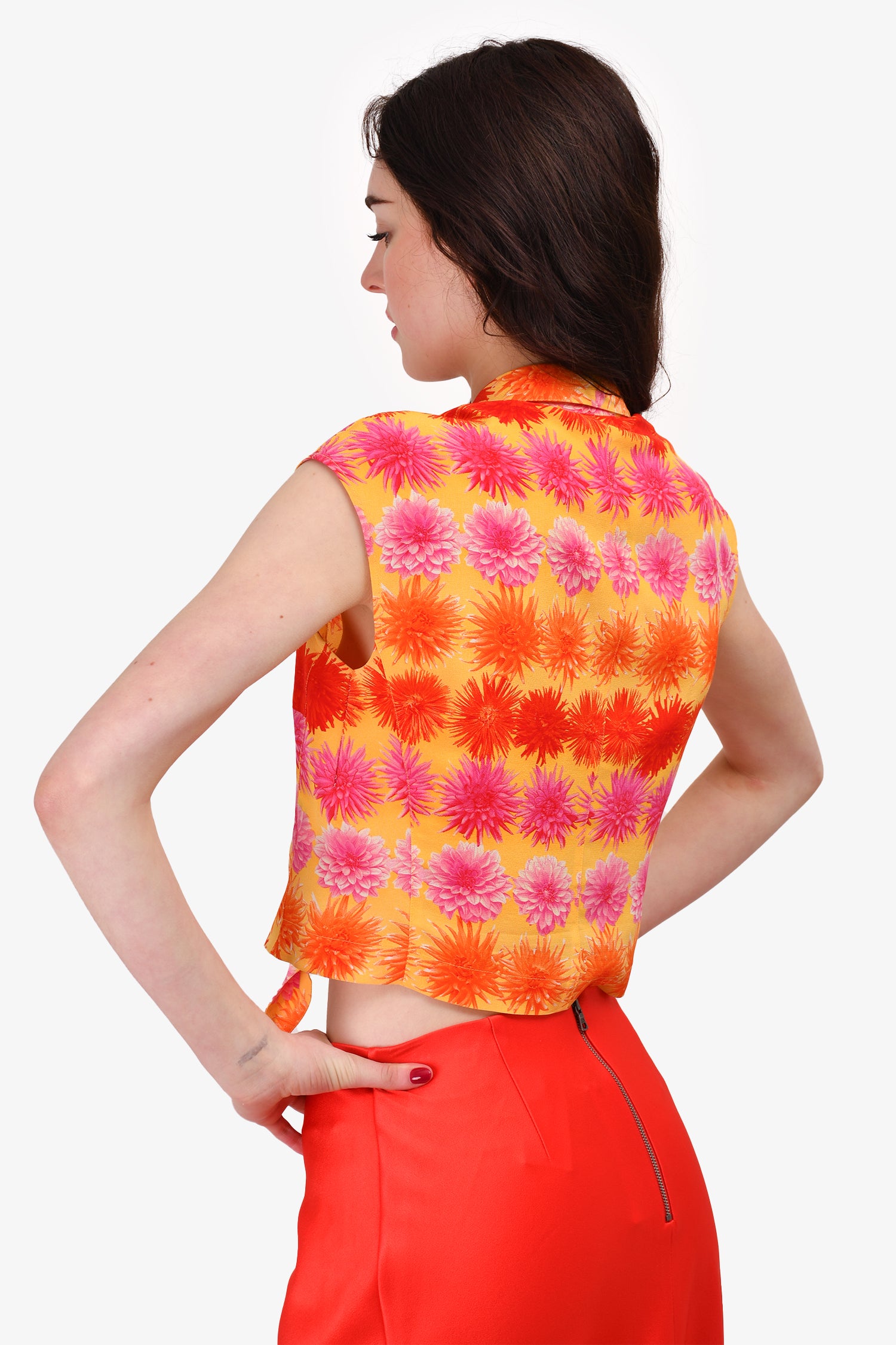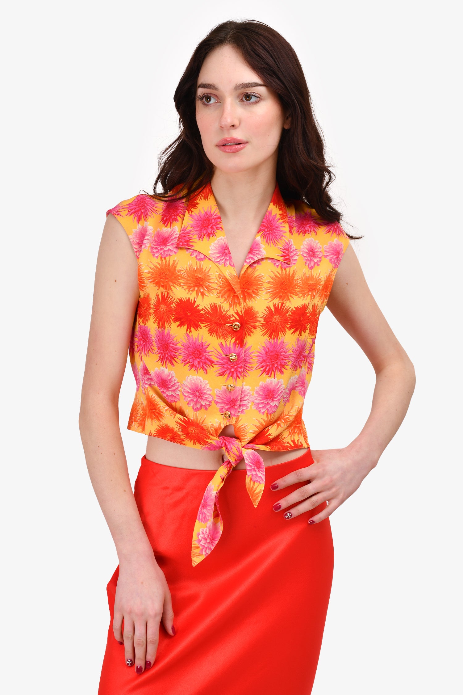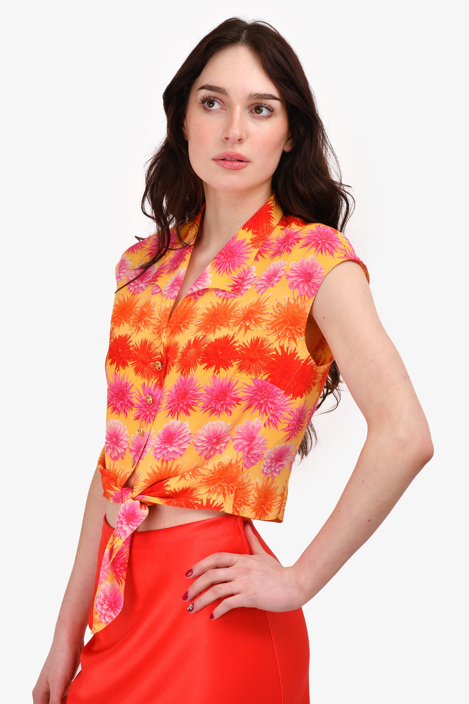 Refresh availabilityEscada Yellow Printed Silk Sleeveless Tie Front Top. Front button-up closure.