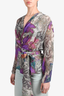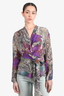 Etro Beige/Purple Silk Belted Blouse Size 46