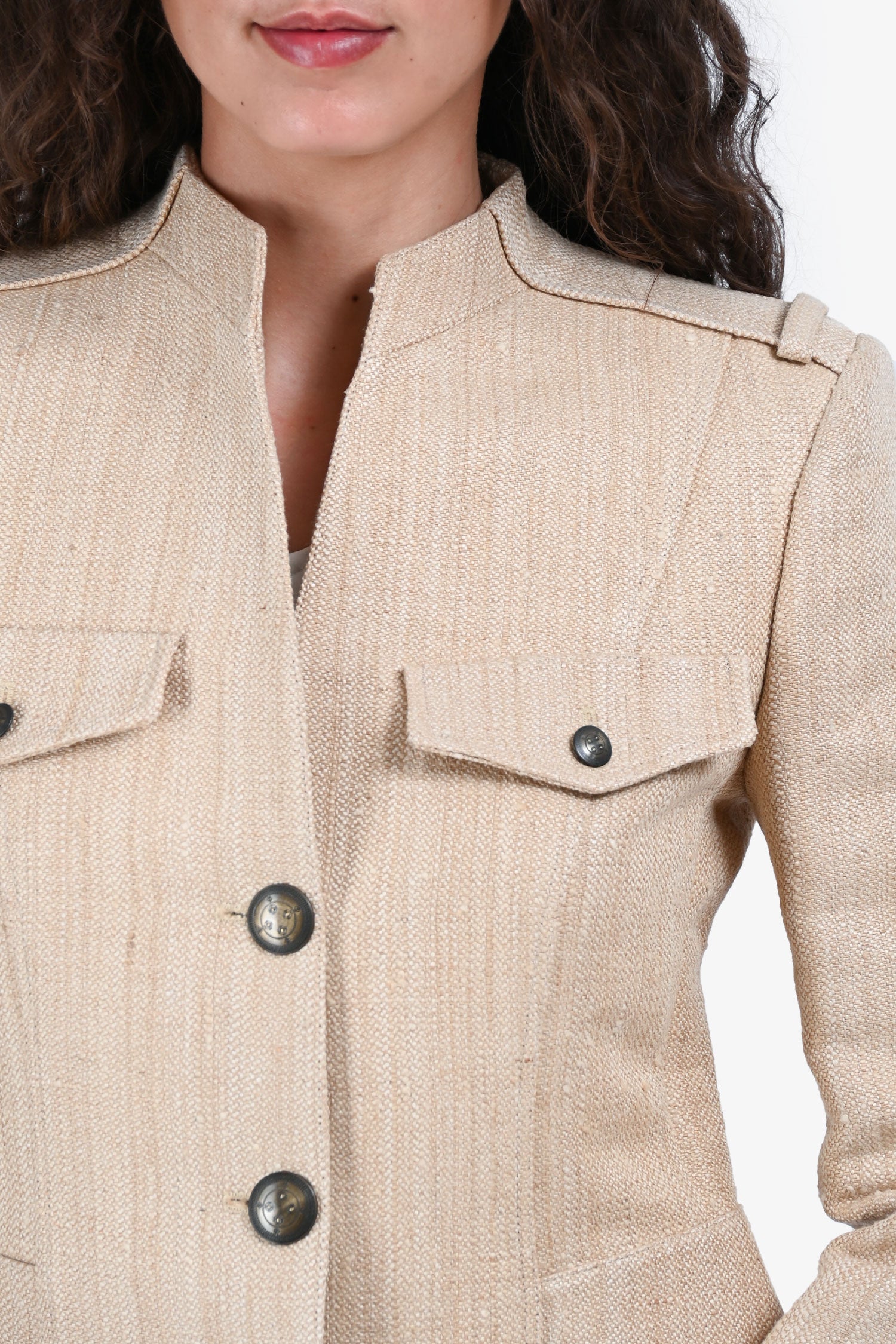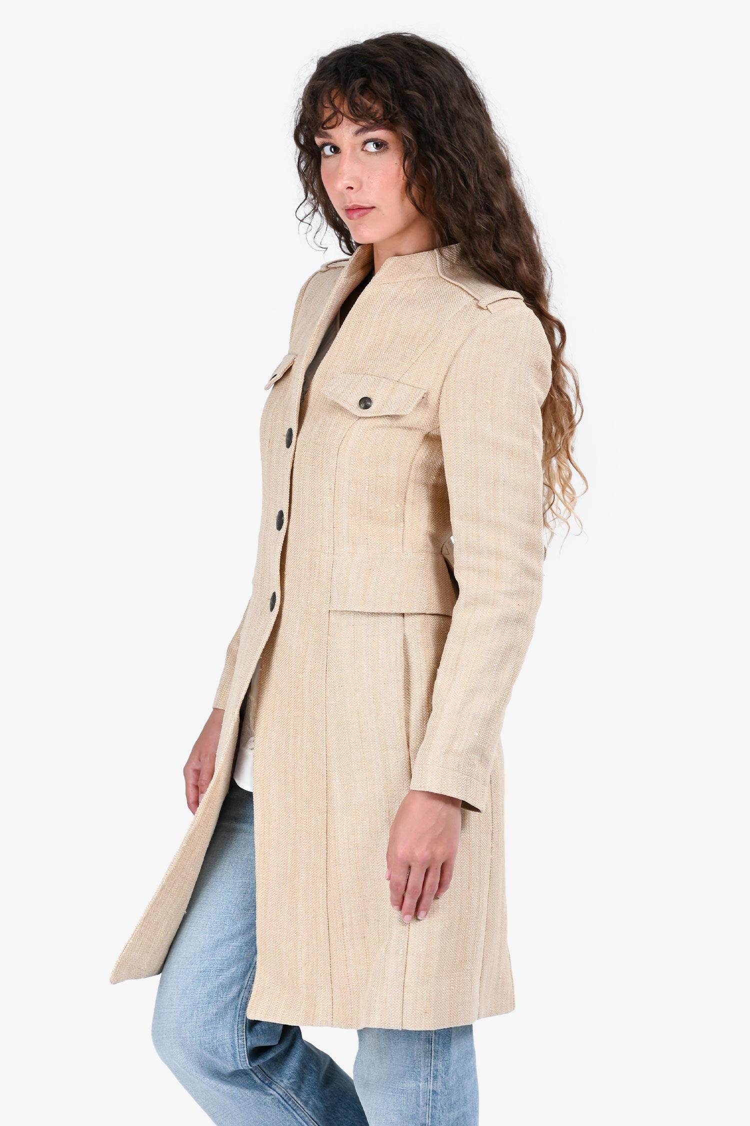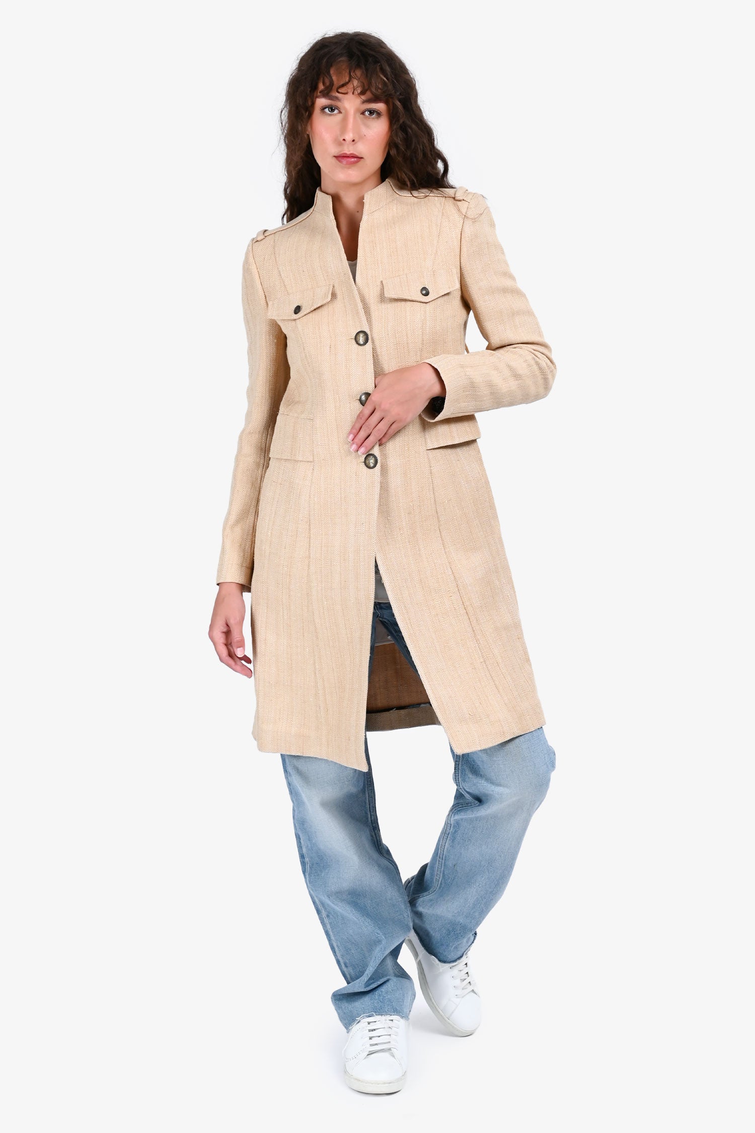 Refresh availabilityEtro Beige Woven Midi Jacket. Front button closure. Long sleeves. Side slit pockets. Unlined. Tonal stitching.