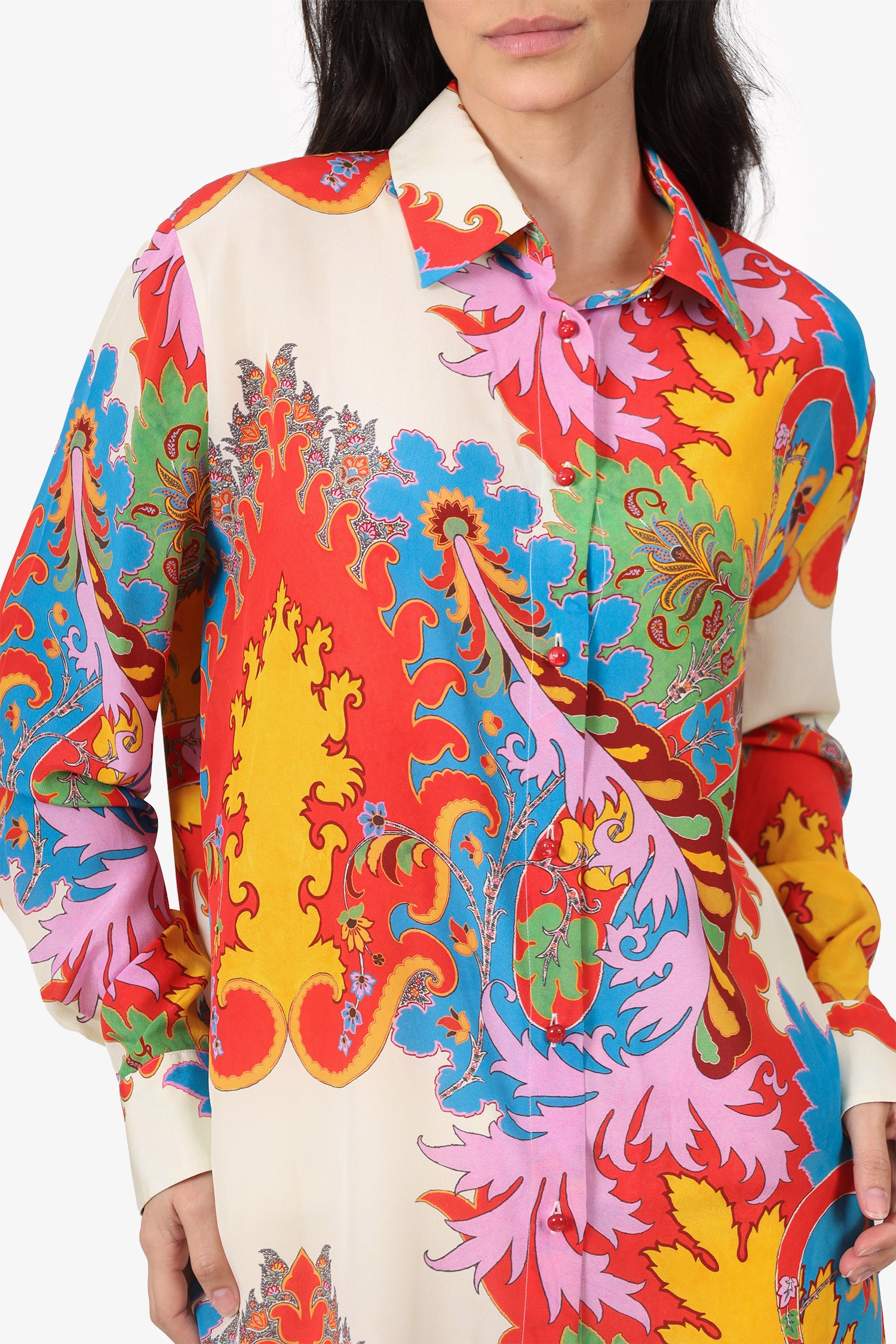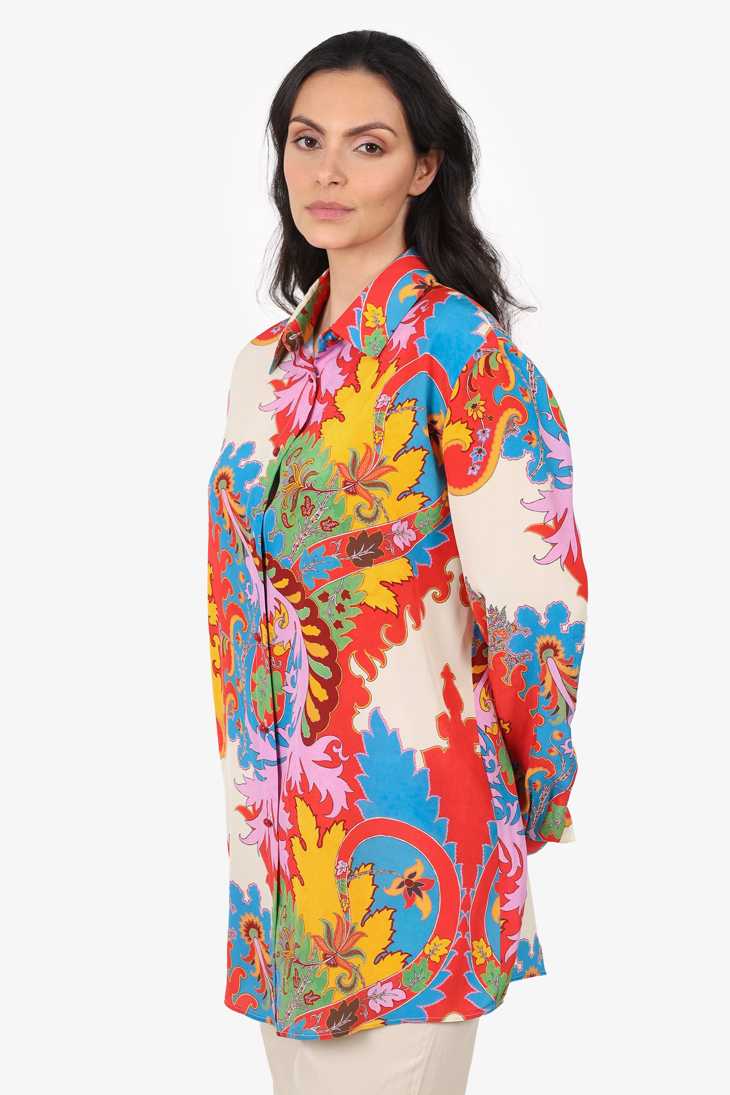 Refresh availabilityEtro Multicolour Silk Shirt. Pull-on. Collared neckline. Front button-up closure. Sleeve cuffs with button-up closure. Silver-tone hardware. Tonal stitching.