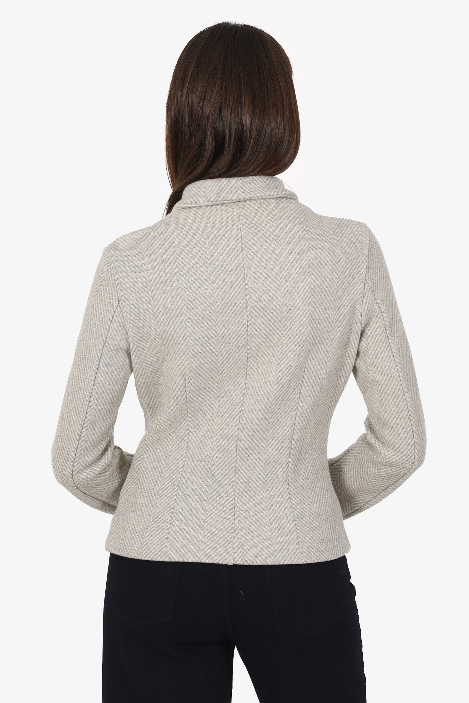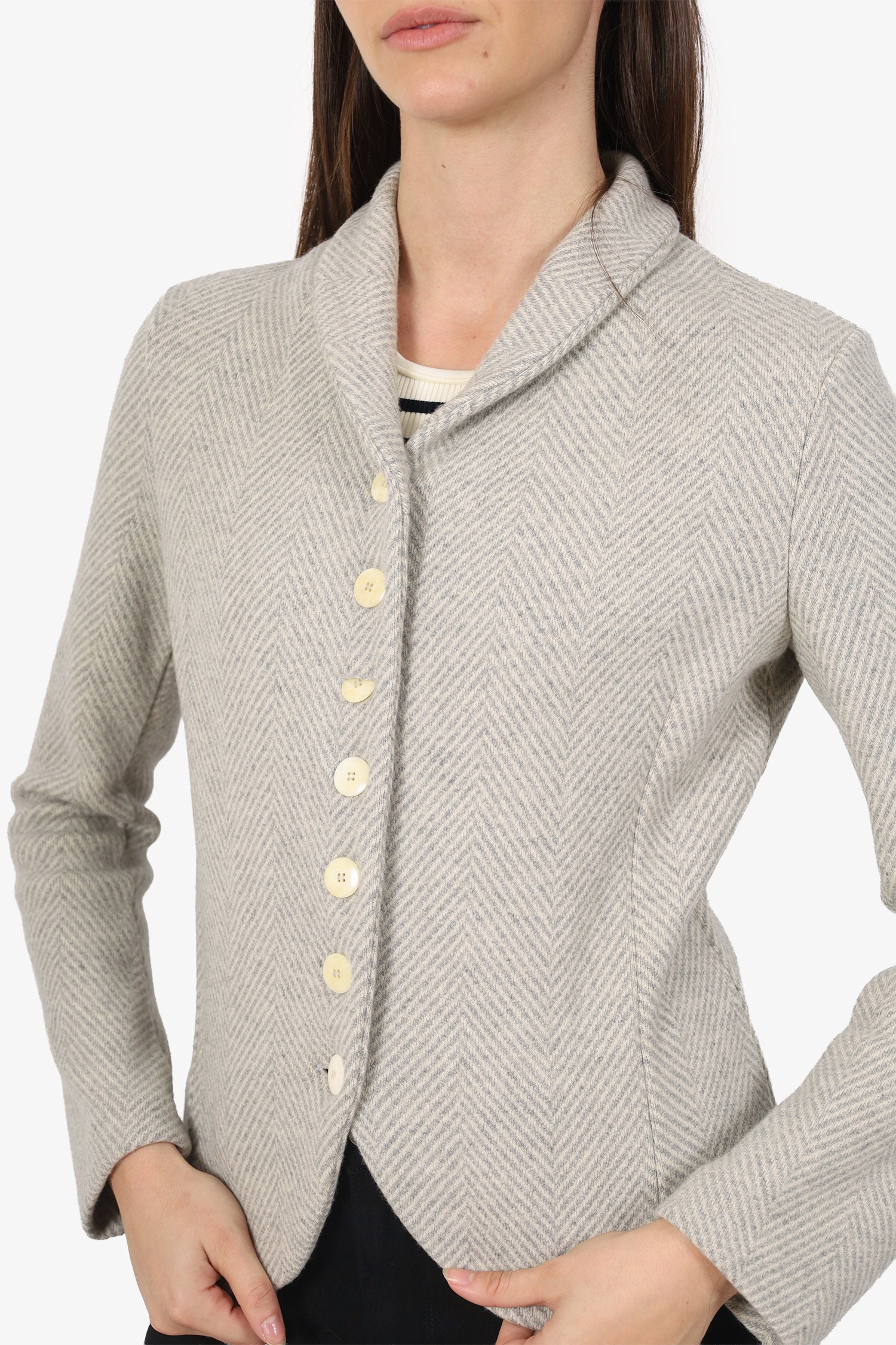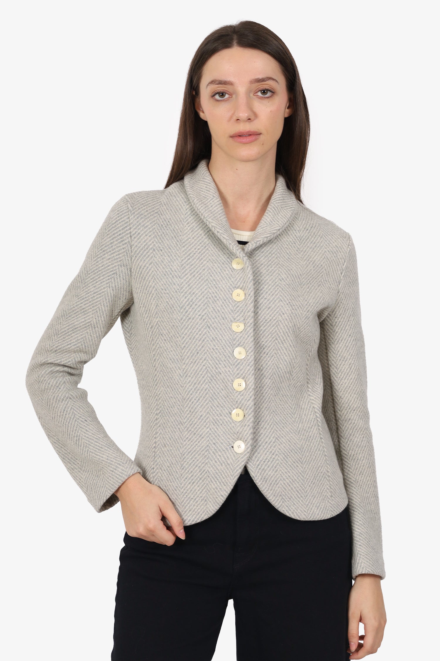Refresh availabilityFabiana Filippi Grey/Silk Chevron Jacket. Pull-on. Collared neckline. Front button-up closure. Tonal stitching.