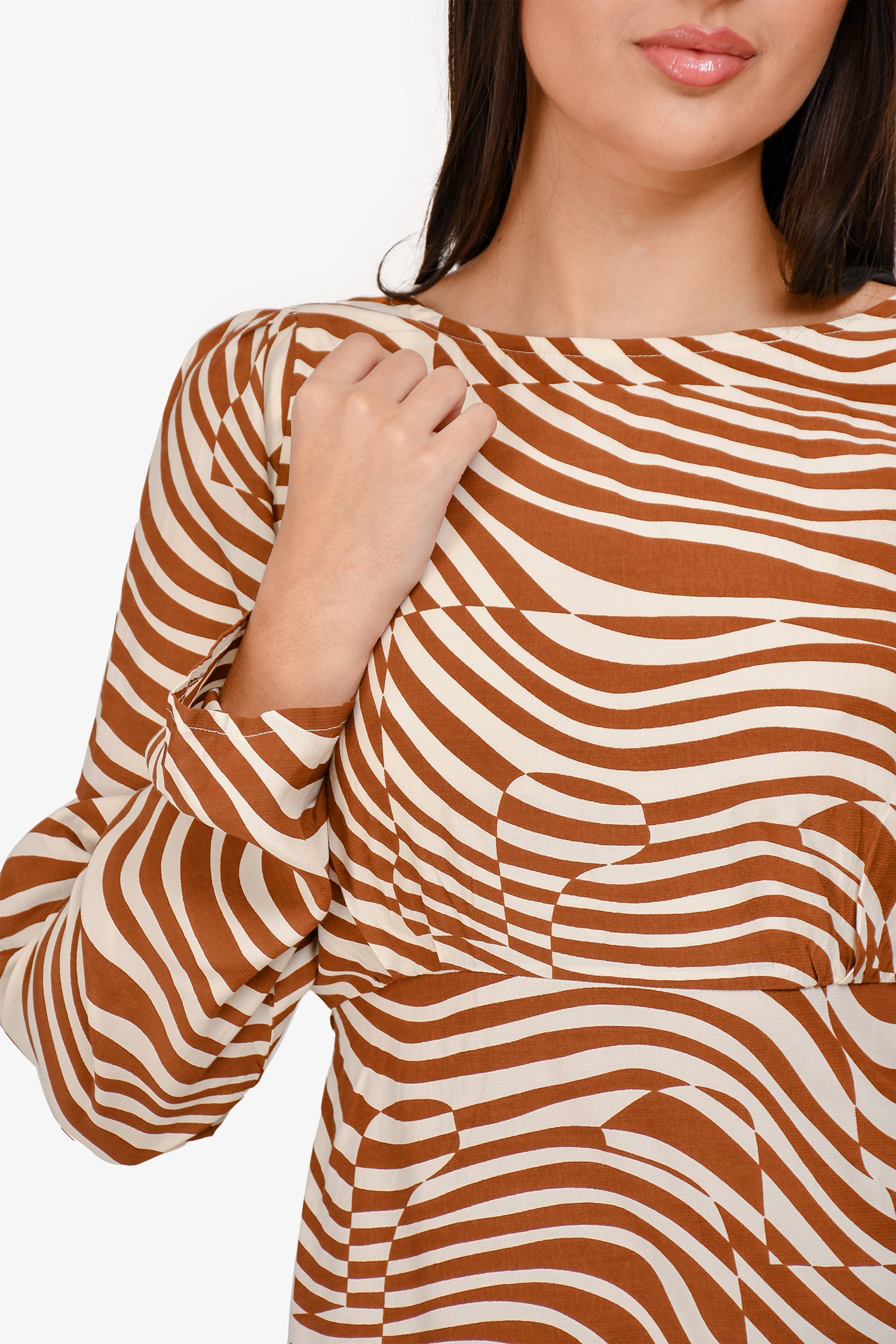 Refresh availabilityFaithfull The Brand Brown/White Mini Dress. Upper body lined interior. Ties at the back collar and waistband. Tonal stitching.