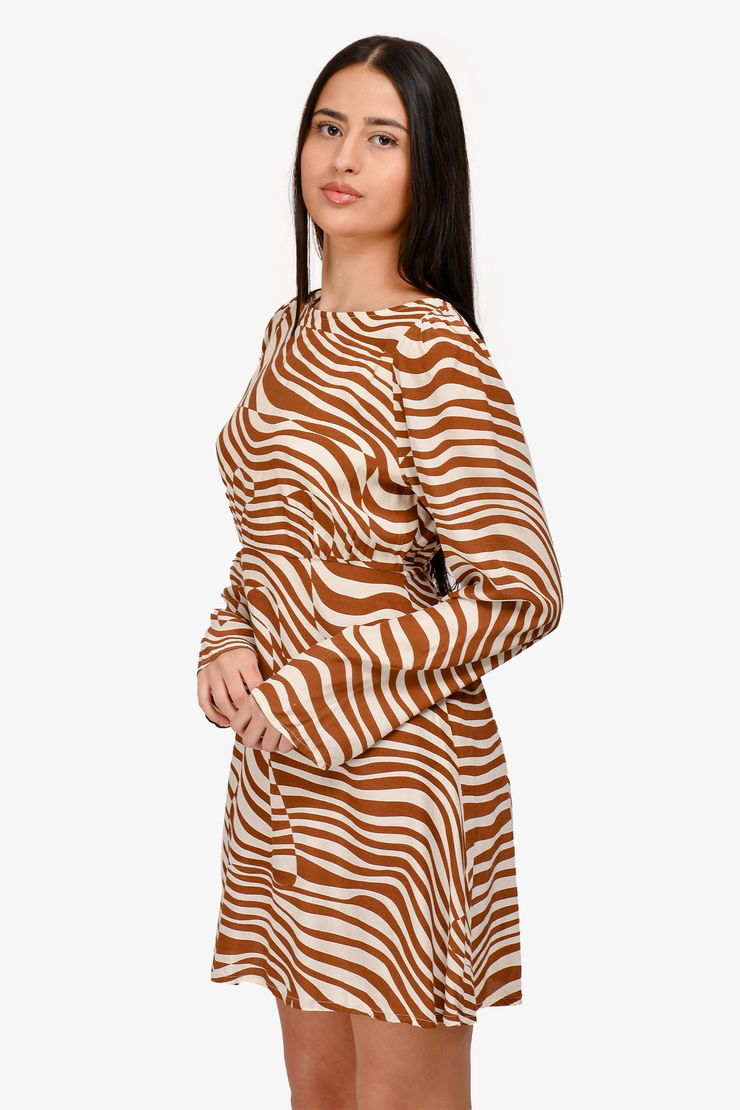 Faithfull The Brand Brown/White Mini Dress Size 6